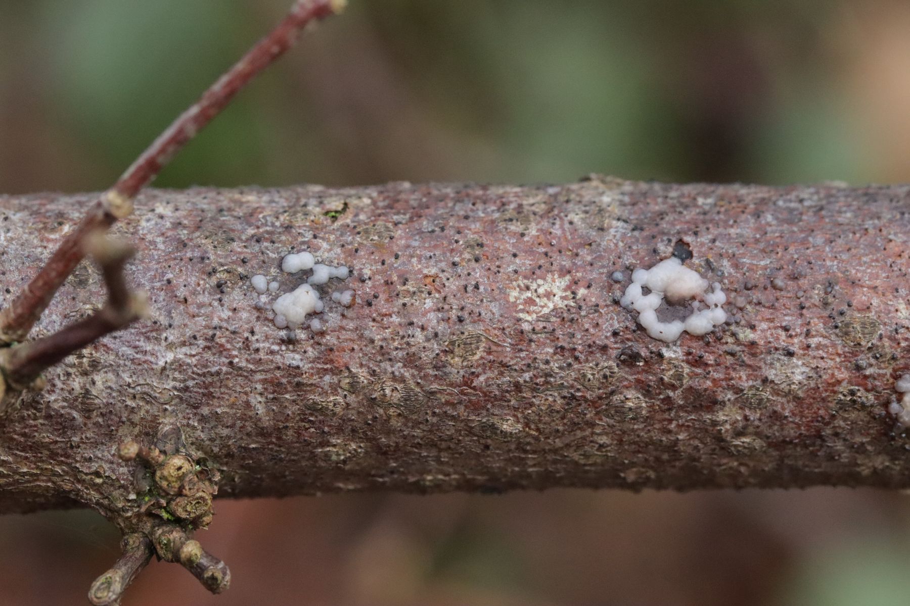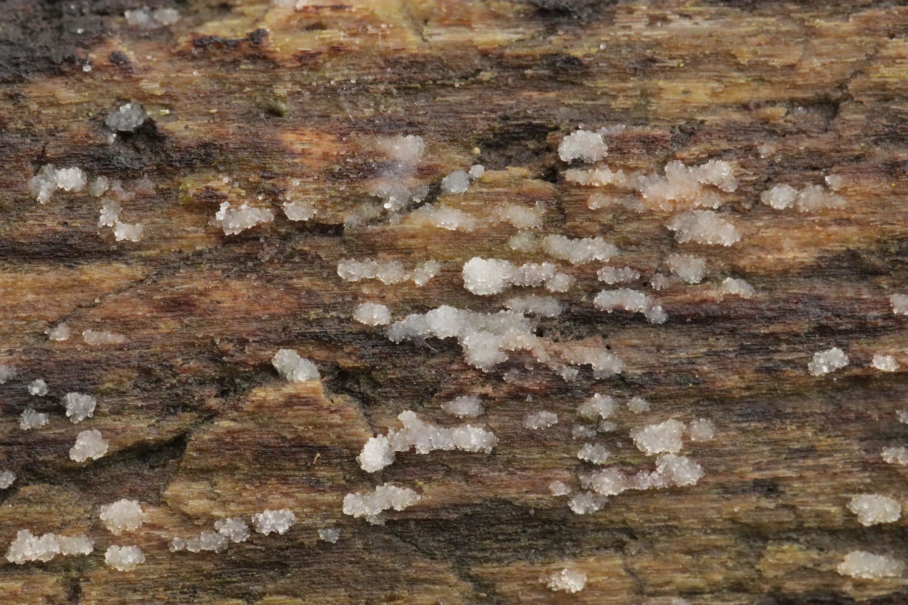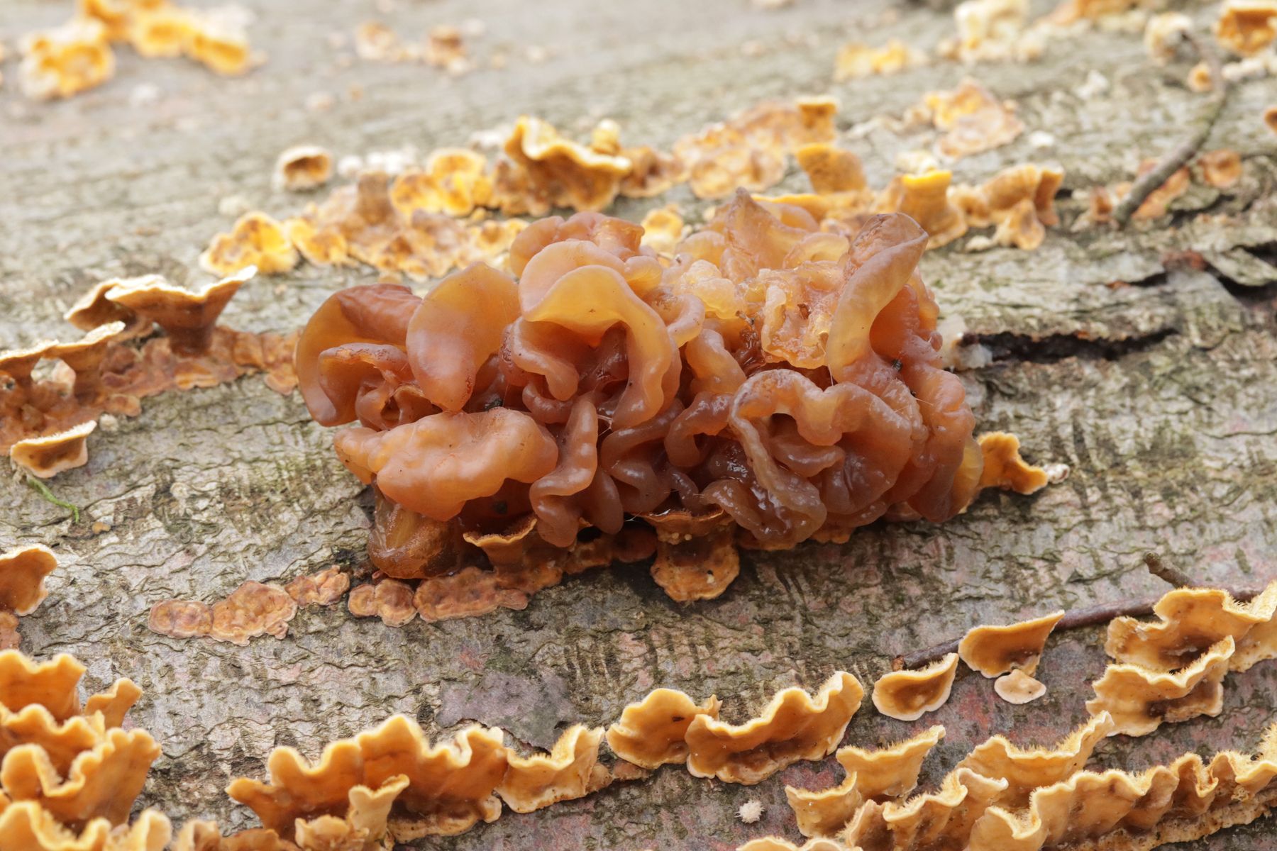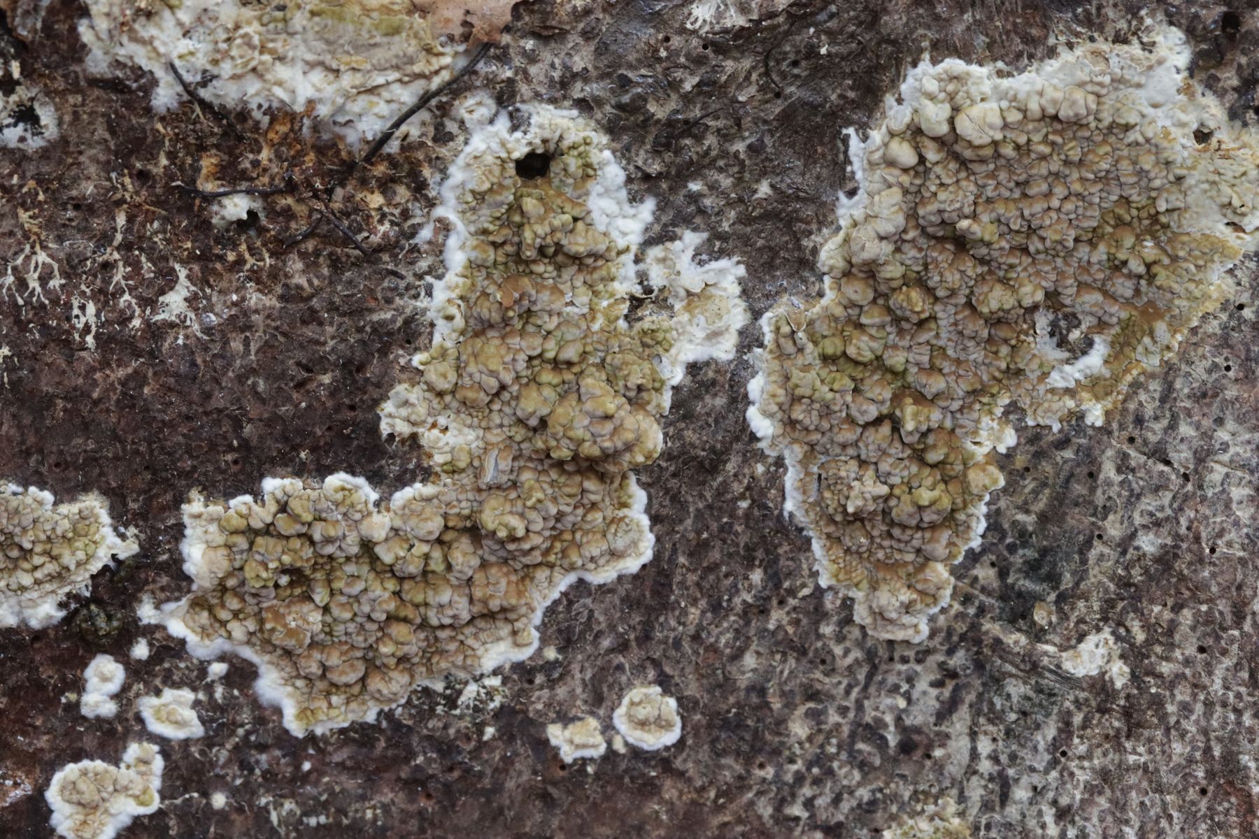4. Hier hatte ich im Feld auf ein Helicobasidium gehofft. Leider war dann zu Hause unter dem Mikroskop nur ein Hyphengeflecht sichtbar, keine Basidien, keine Konidienträger. Also für mich unbestimmbar.