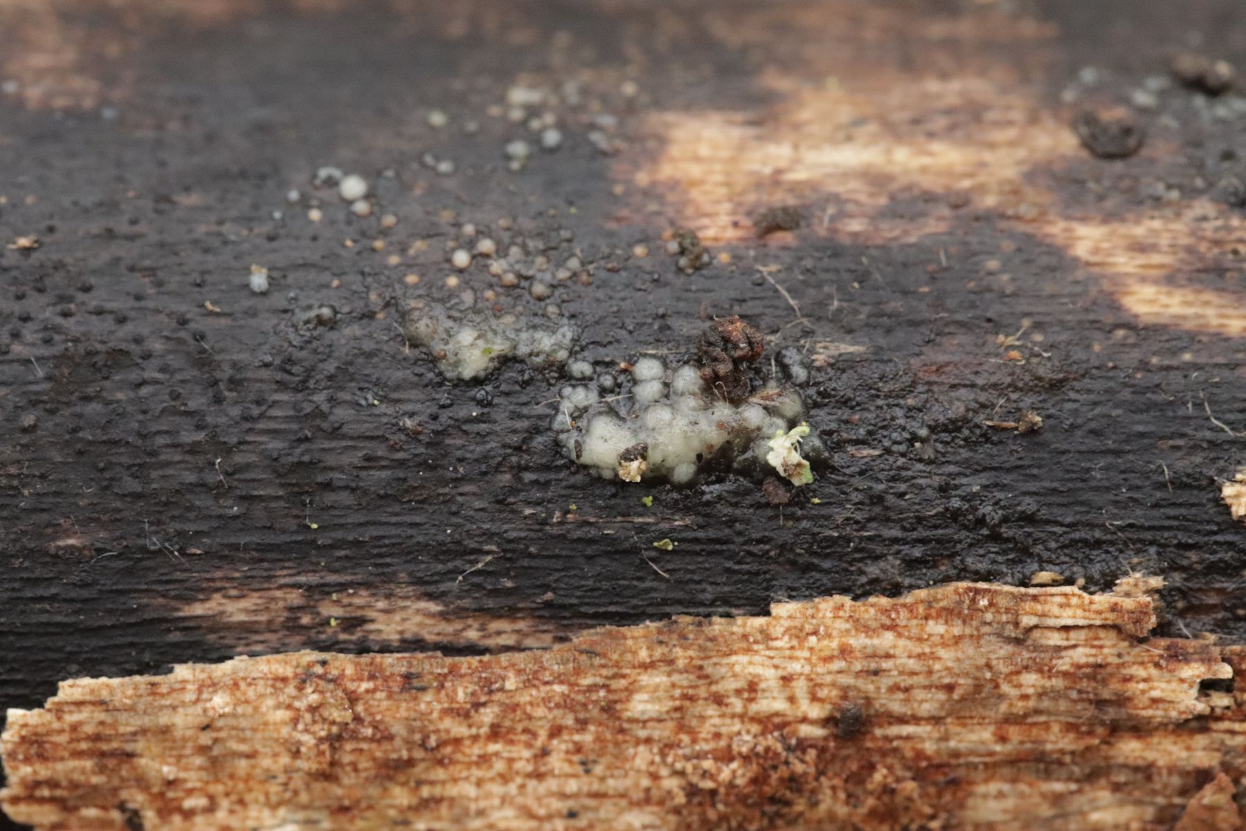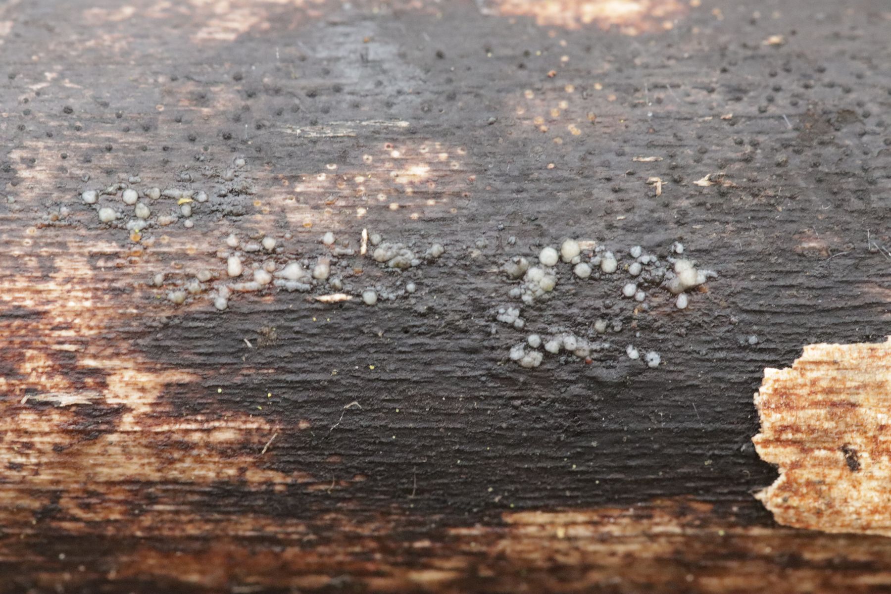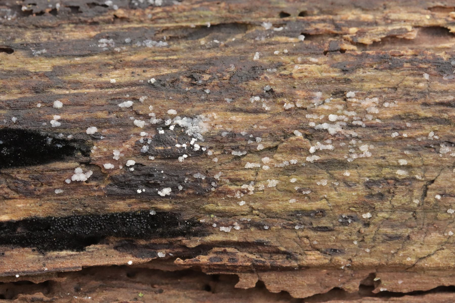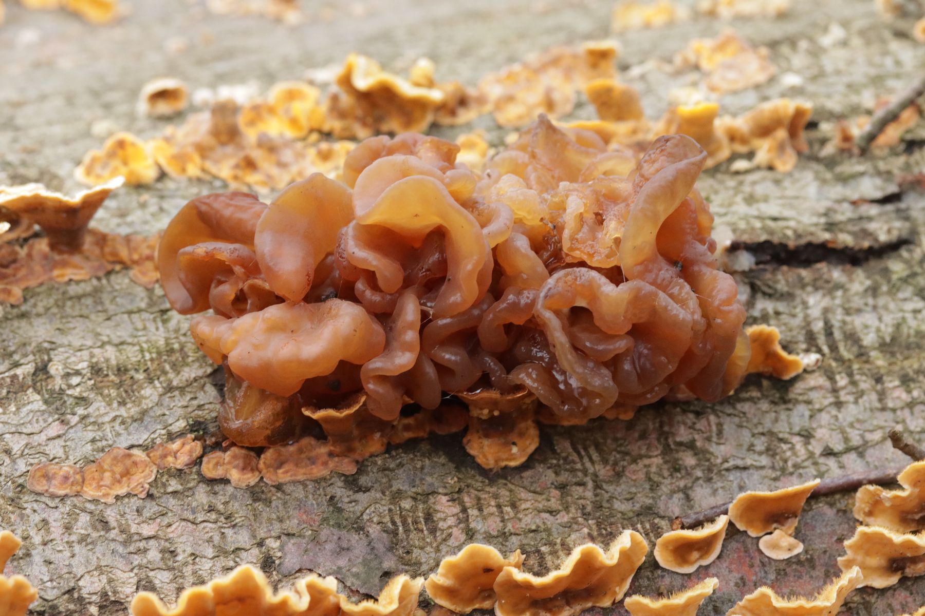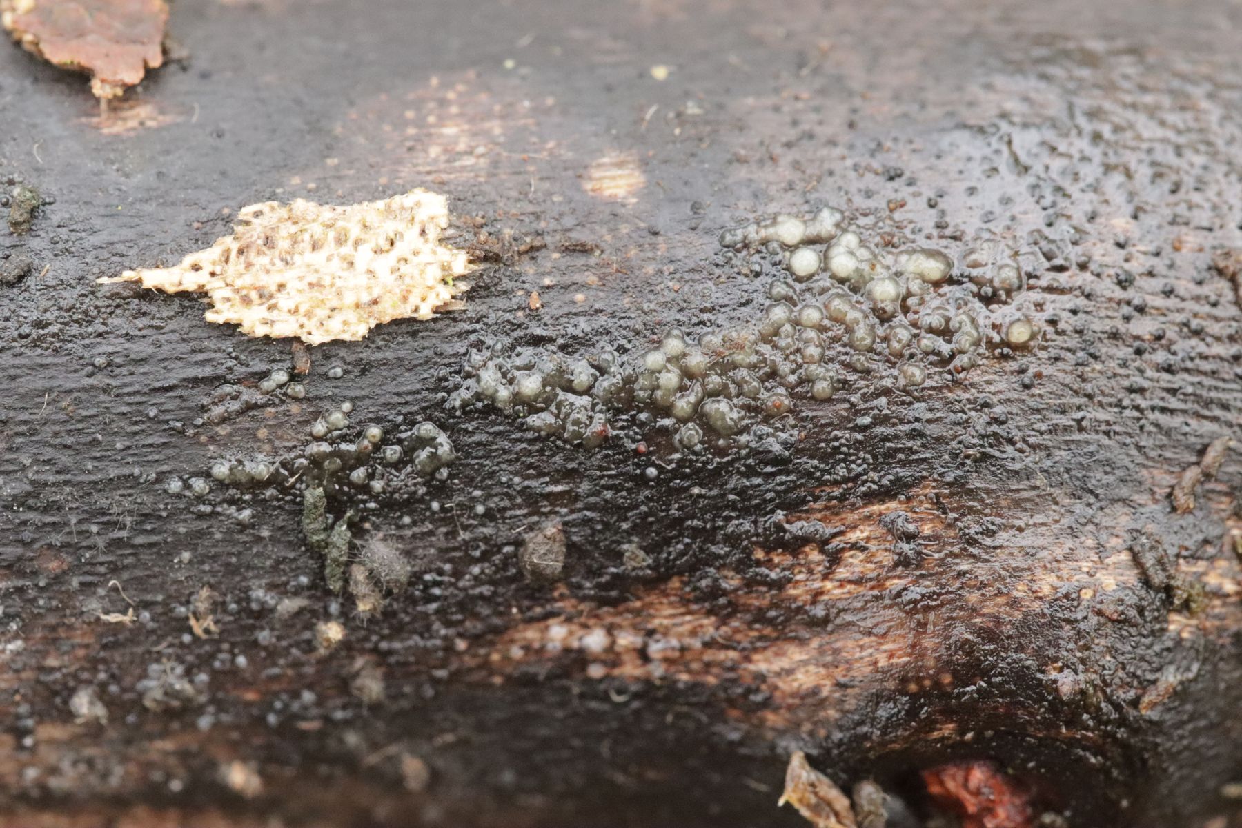 4. Hier hatte ich im Feld auf ein Helicobasidium gehofft. Leider war dann zu Hause unter dem Mikroskop nur ein Hyphengeflecht sichtbar, keine Basidien, keine Konidienträger. Also für mich unbestimmbar.