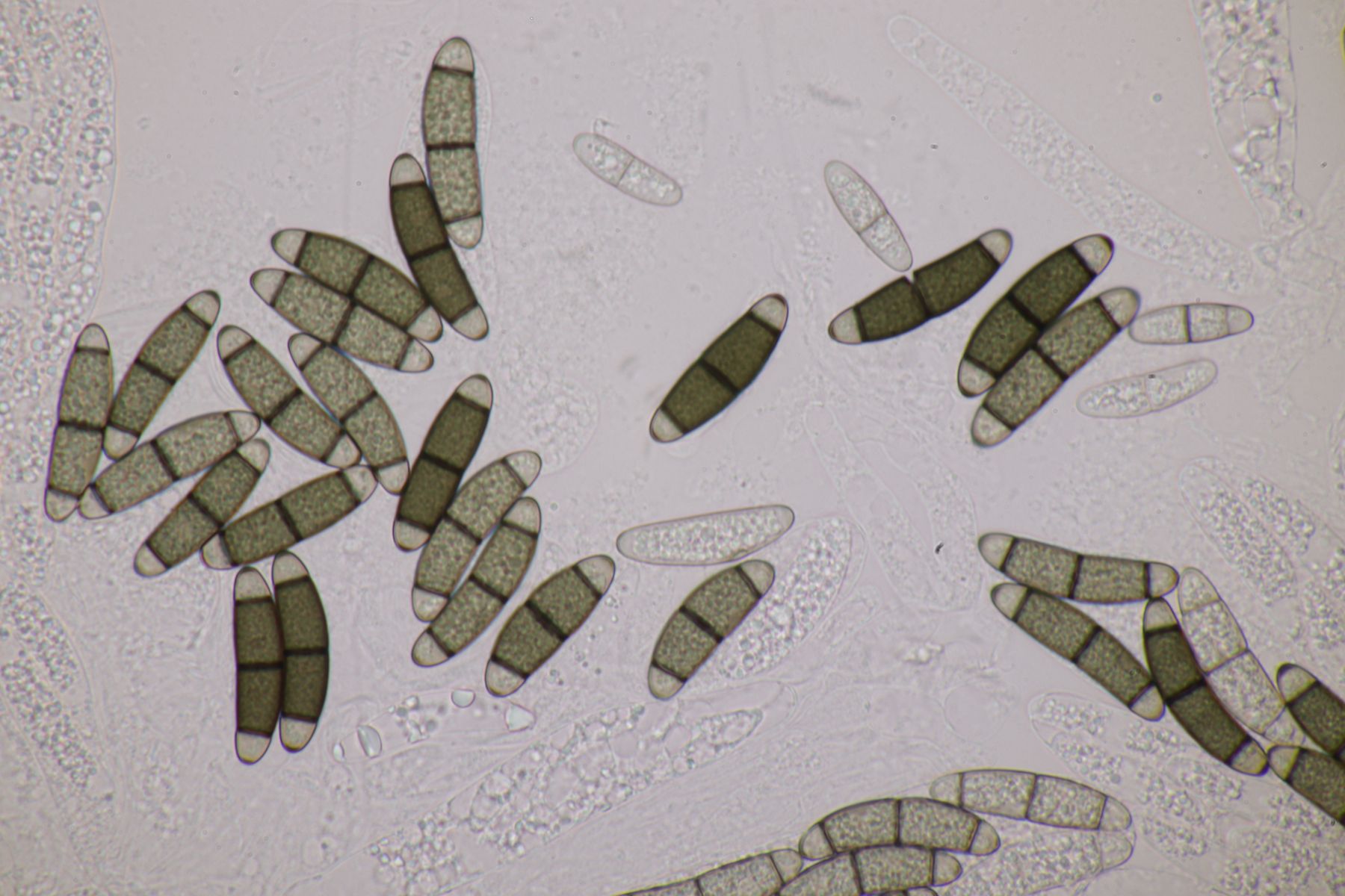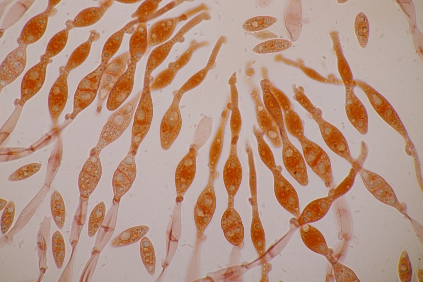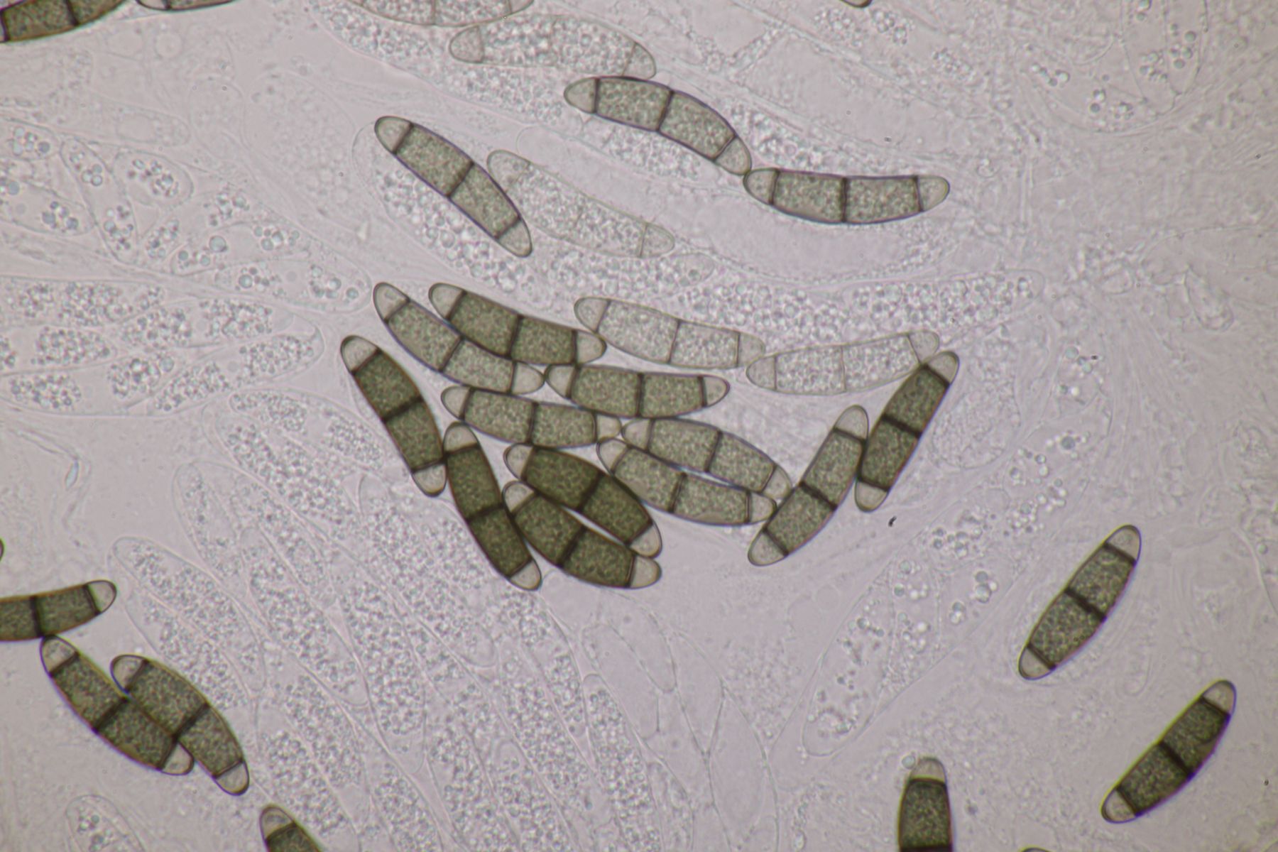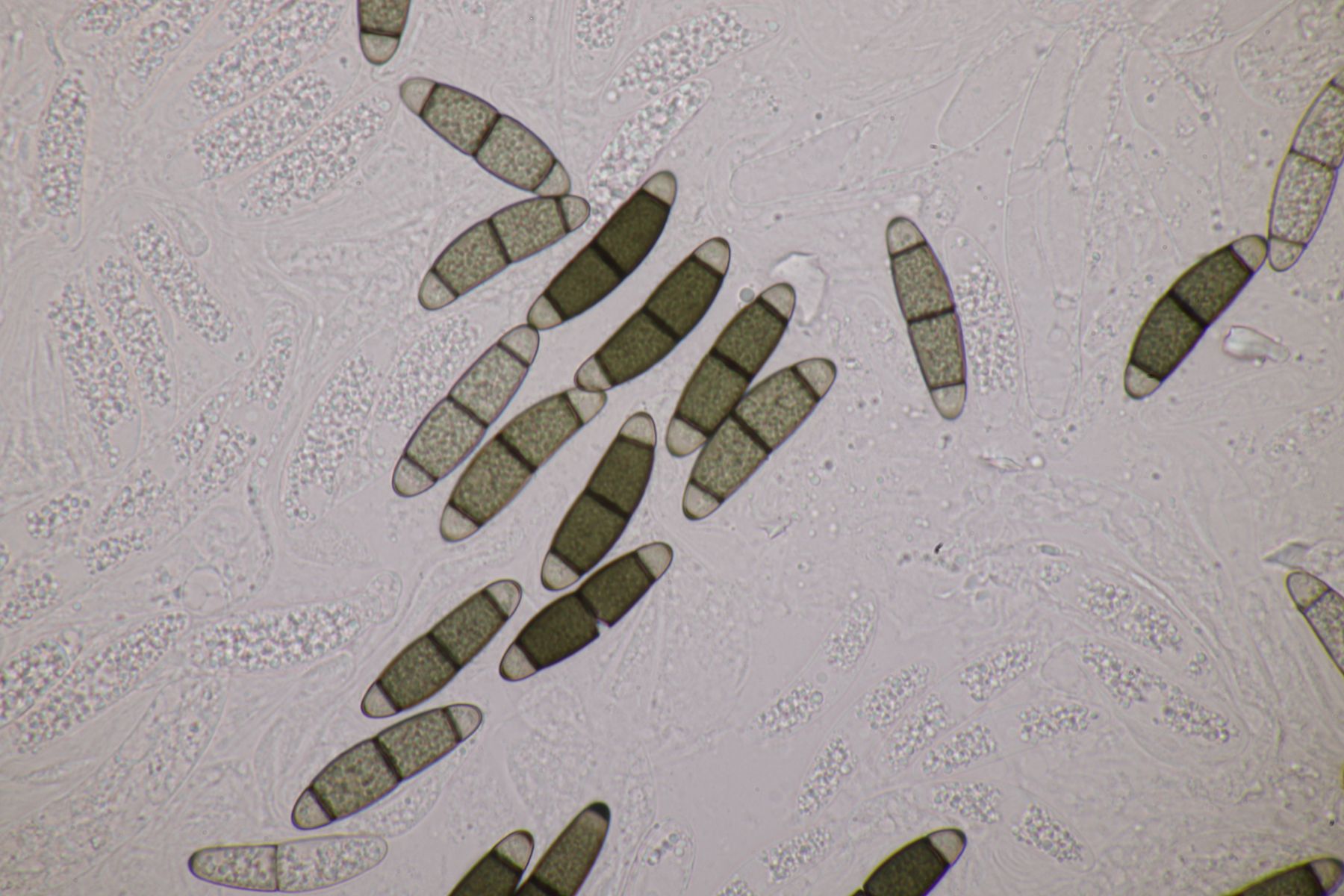 5. Hier hatte ich im Feld auch erstmal an einen Phragmobasidiomyceten gedacht. Mikroskopisch dann die Überraschung: Nur Bündel aus verdickten Hyphen, die entfernt an dicke Maden erinnern. Auch hier fehlt mir jegliche Idee, was es sein könnte.