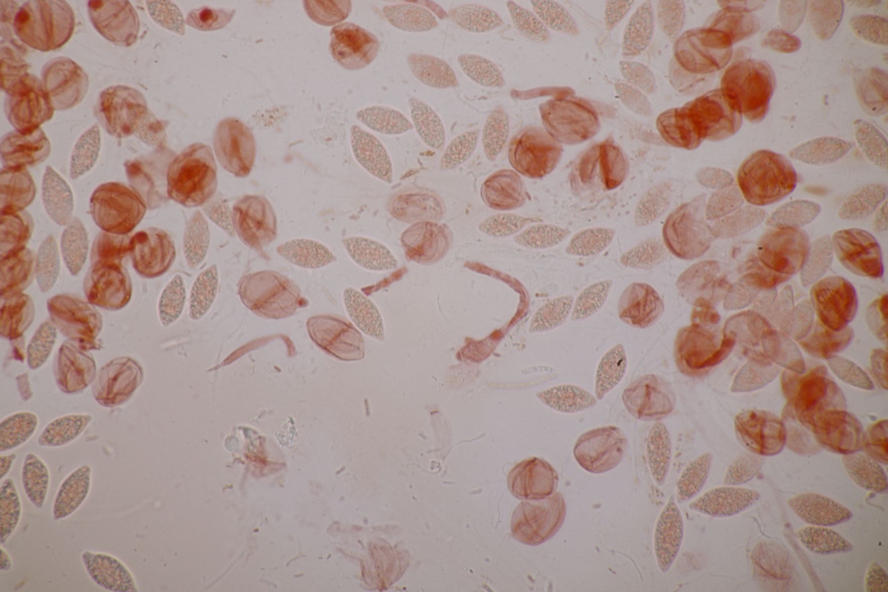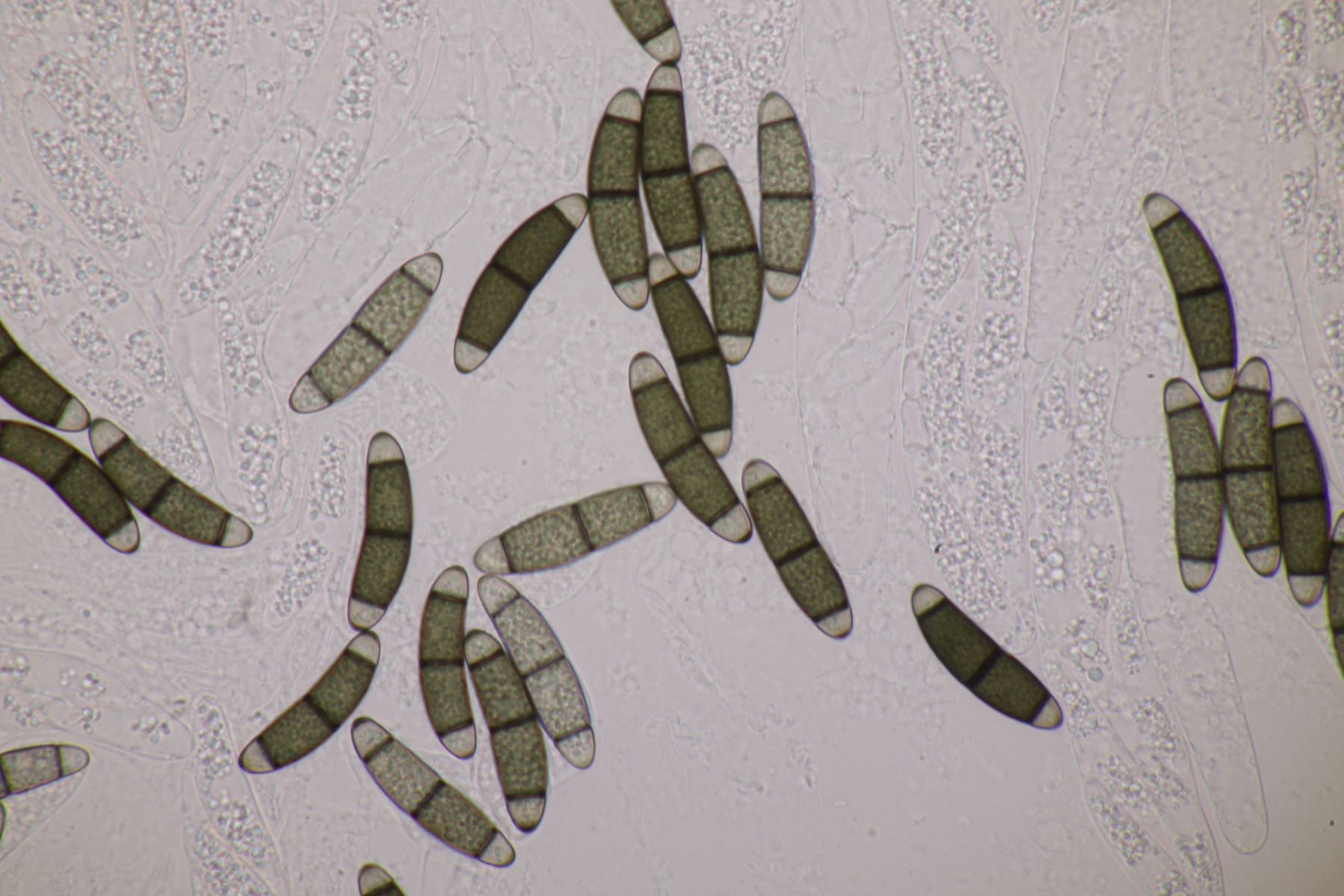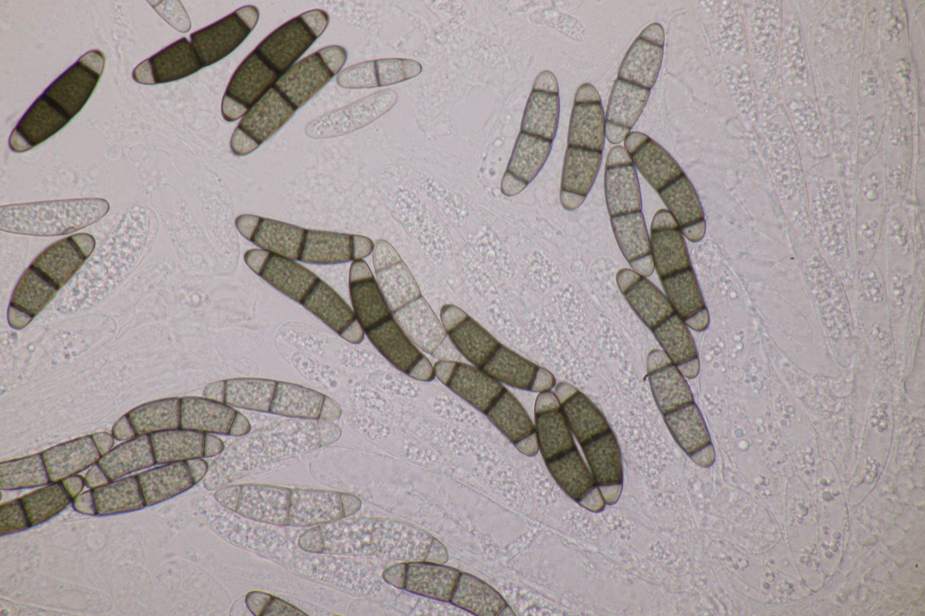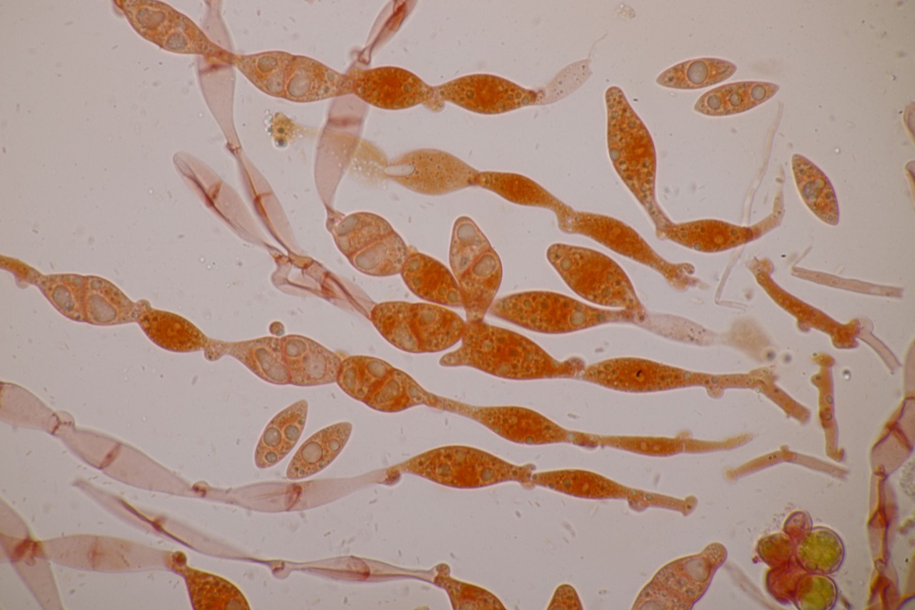 5. Hier hatte ich im Feld auch erstmal an einen Phragmobasidiomyceten gedacht. Mikroskopisch dann die Überraschung: Nur Bündel aus verdickten Hyphen, die entfernt an dicke Maden erinnern. Auch hier fehlt mir jegliche Idee, was es sein könnte.