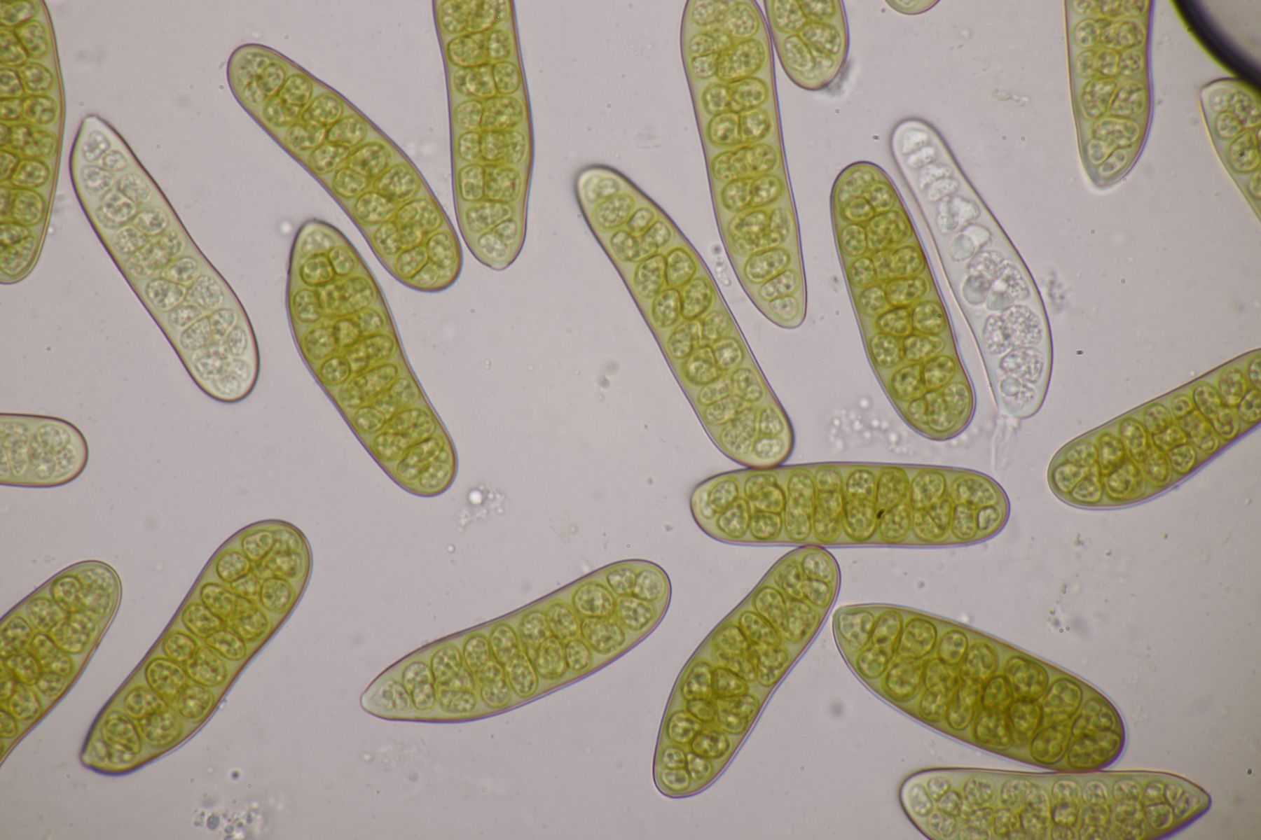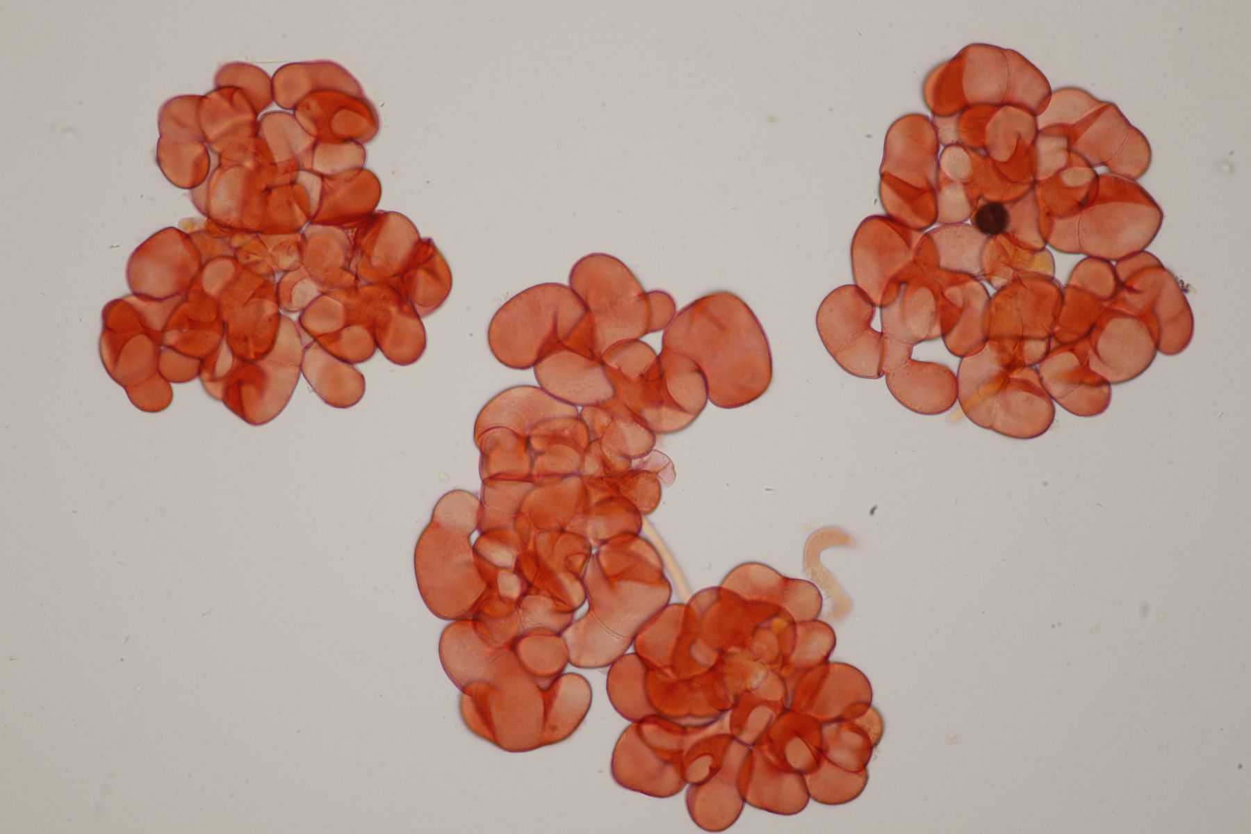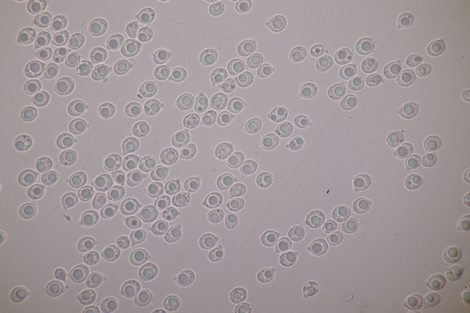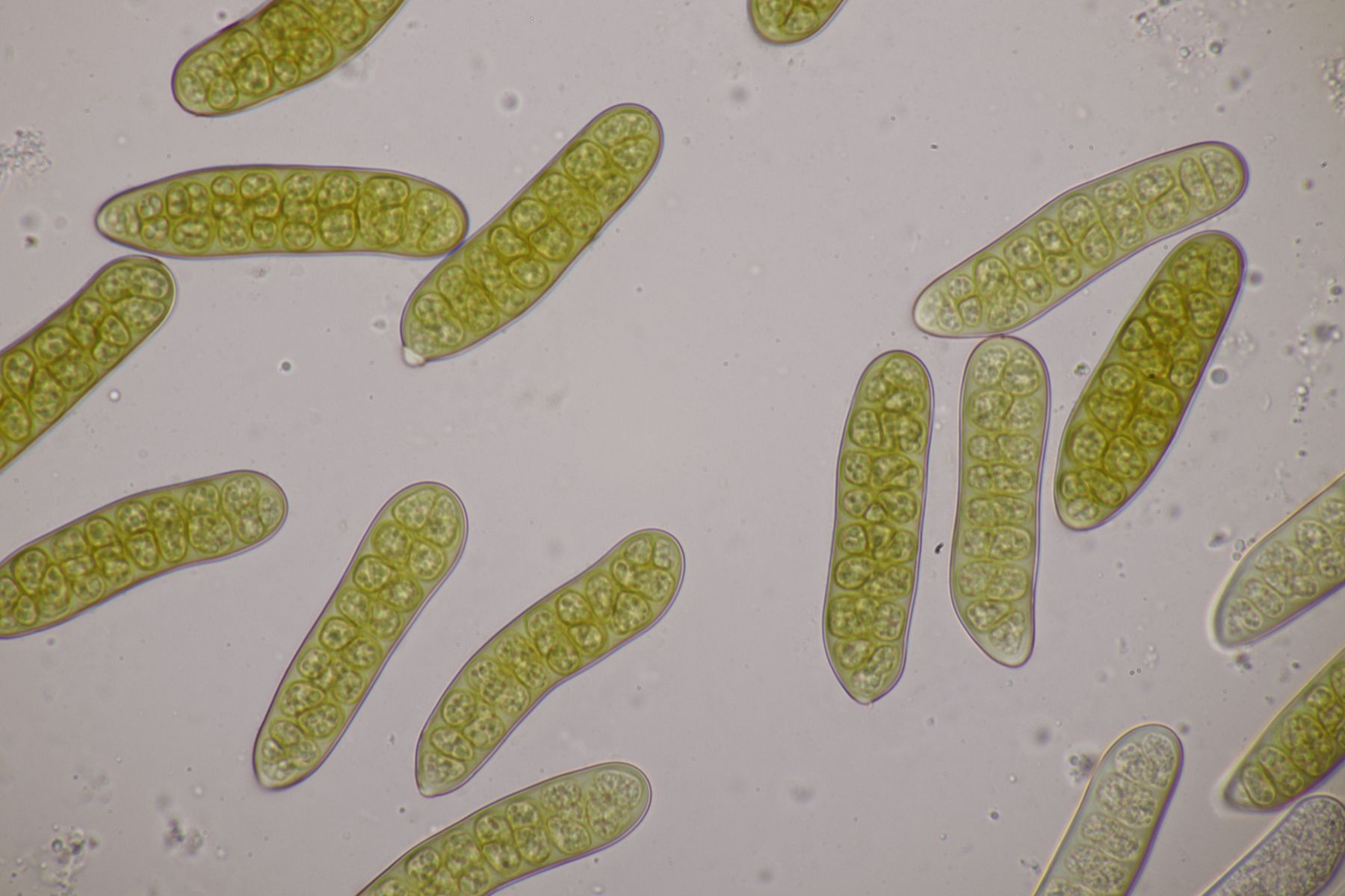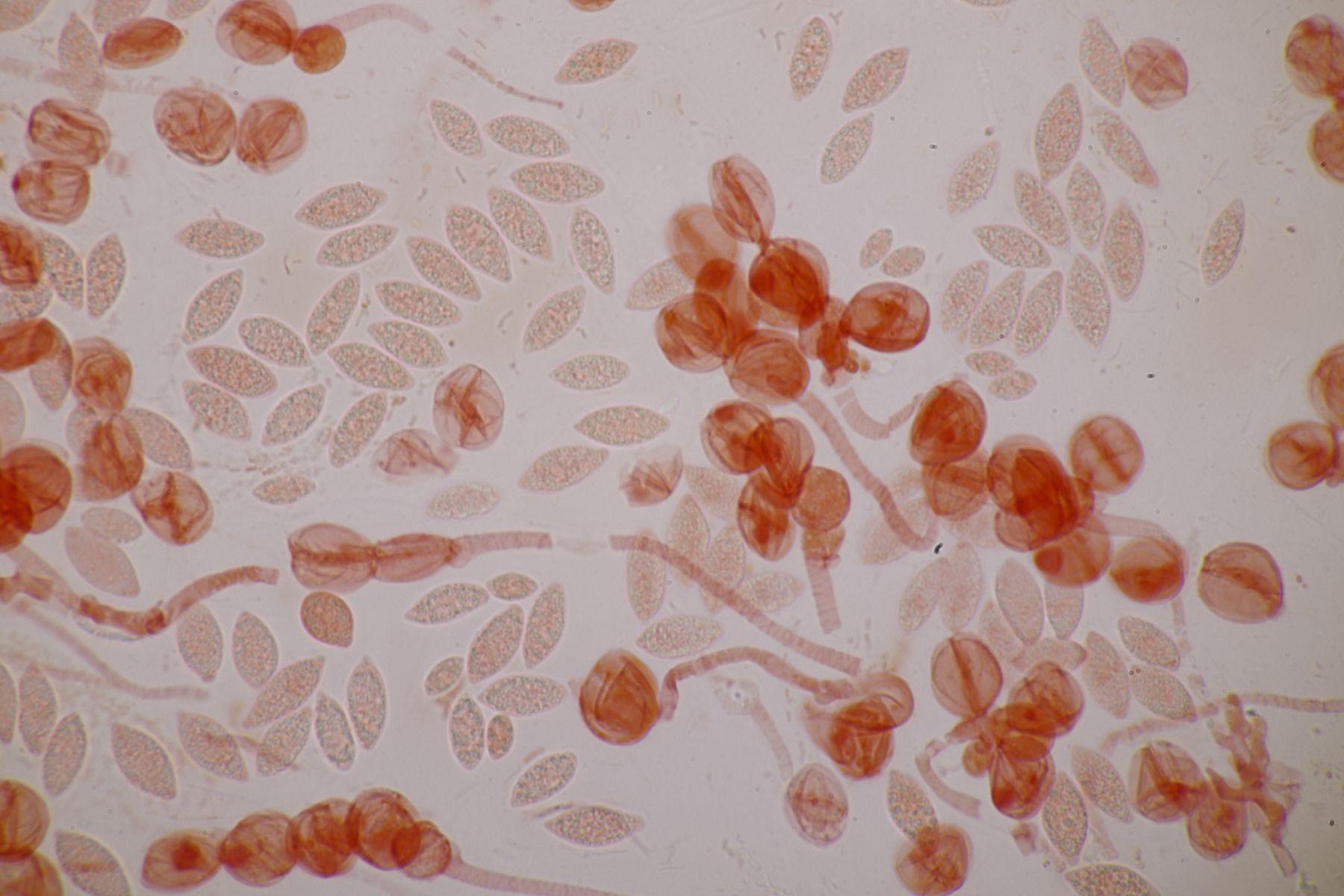 6. Noch ein Sirobasidium, ebenfalls neu für den Volksgarten: Die runden, vierfach septierten Basidien bringen uns hier zu Sirobasidium albidum.