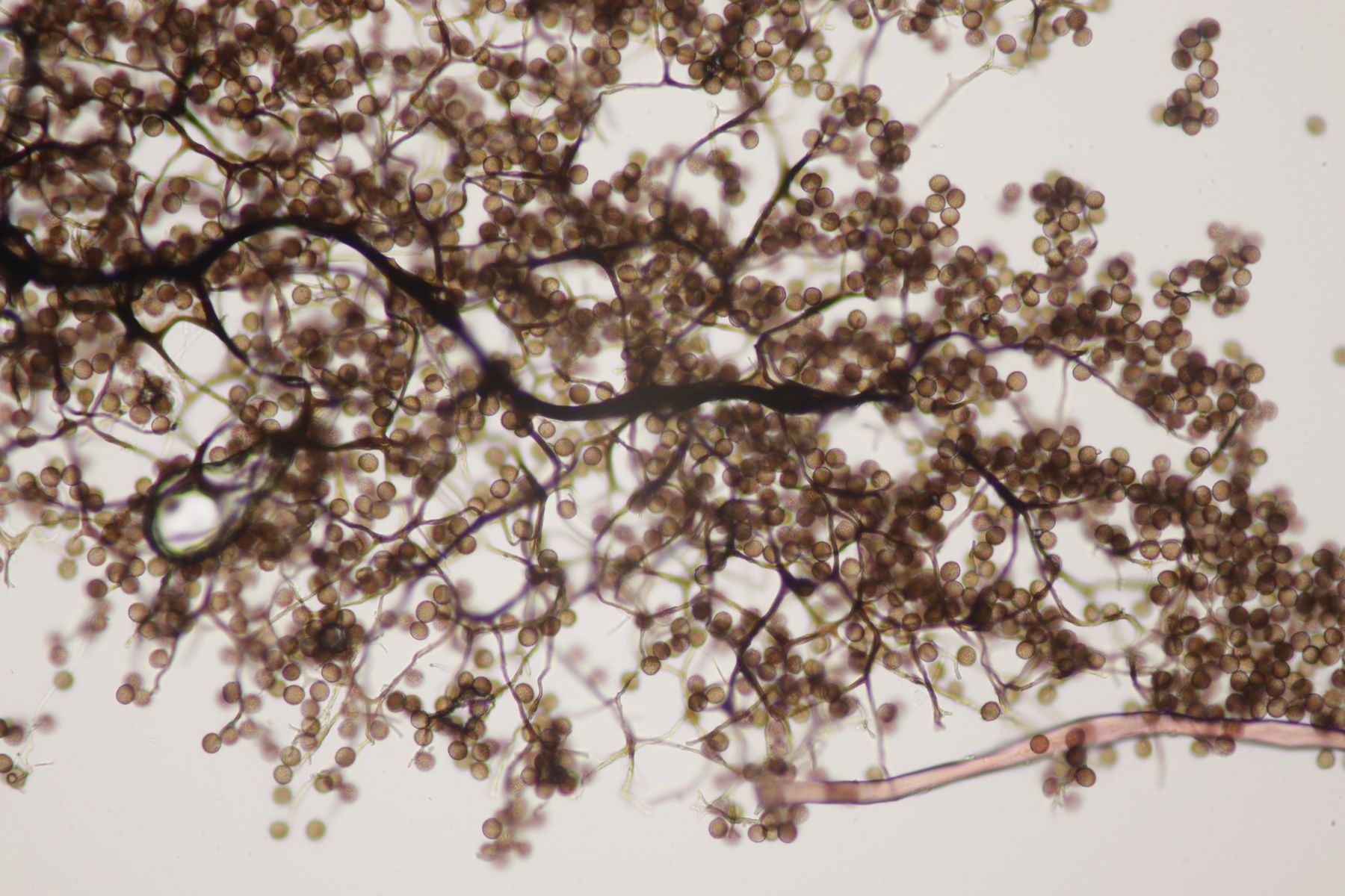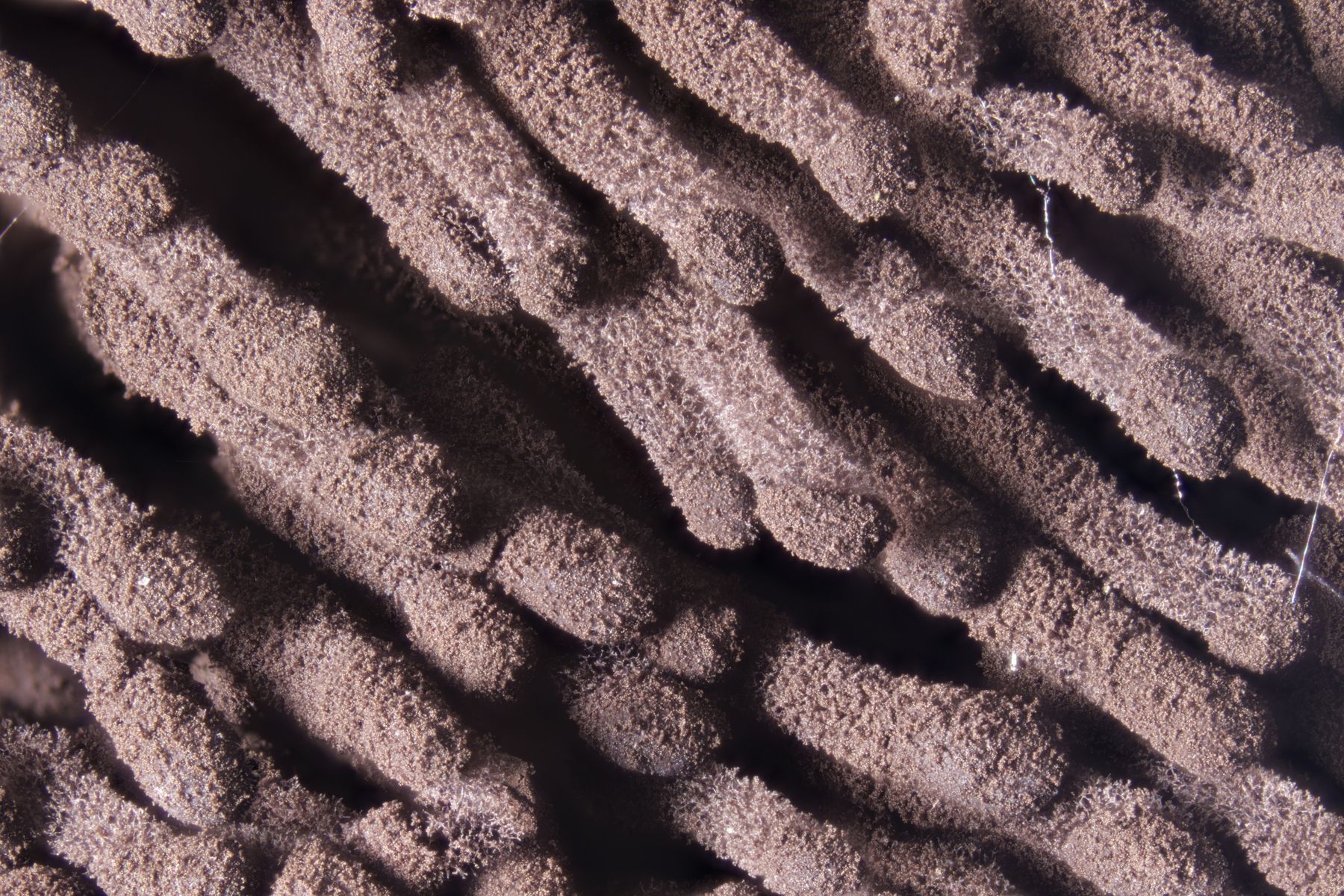 Was die Mikrofotografie angeht: Da kommt einfach der Pilz mit Substrat auf einen Objektträger, wird dann seitlich mit der Schreibtischlamp (10 W LED) angeleuchtet und anschließend mache ich so ca. 50 Fotos, bei denen ich den Fokus durchfahre und lasse die Bilder anschließend von ZereneStacker zusammenrechnen. Wenn man da erstmal weiß, wie viel man den Fokus zwischen zwei Aufnahmen beim 4er und 10er Objektiv weiterdrehen muß, geht das mit dem Stacken auch meistens komplett problemlos.