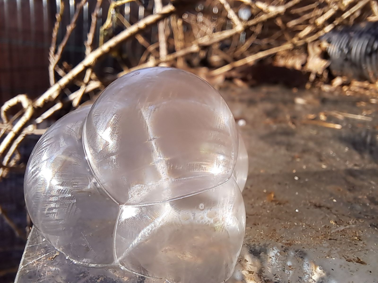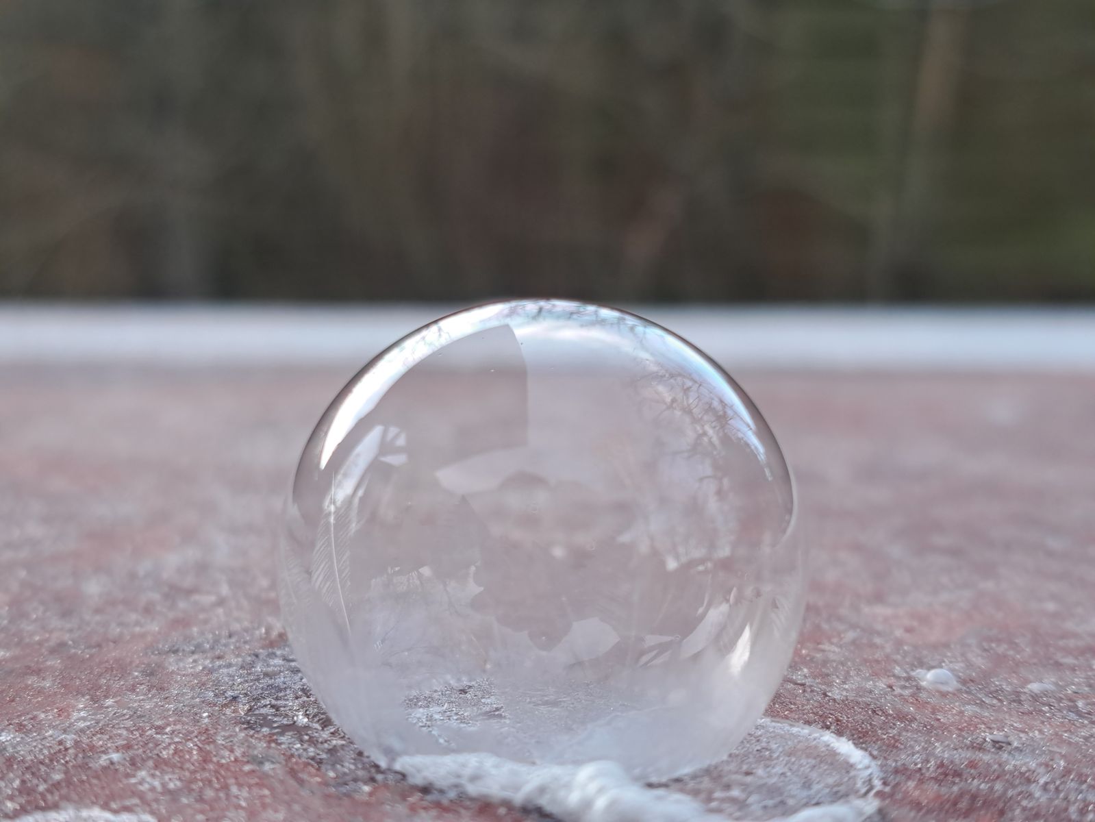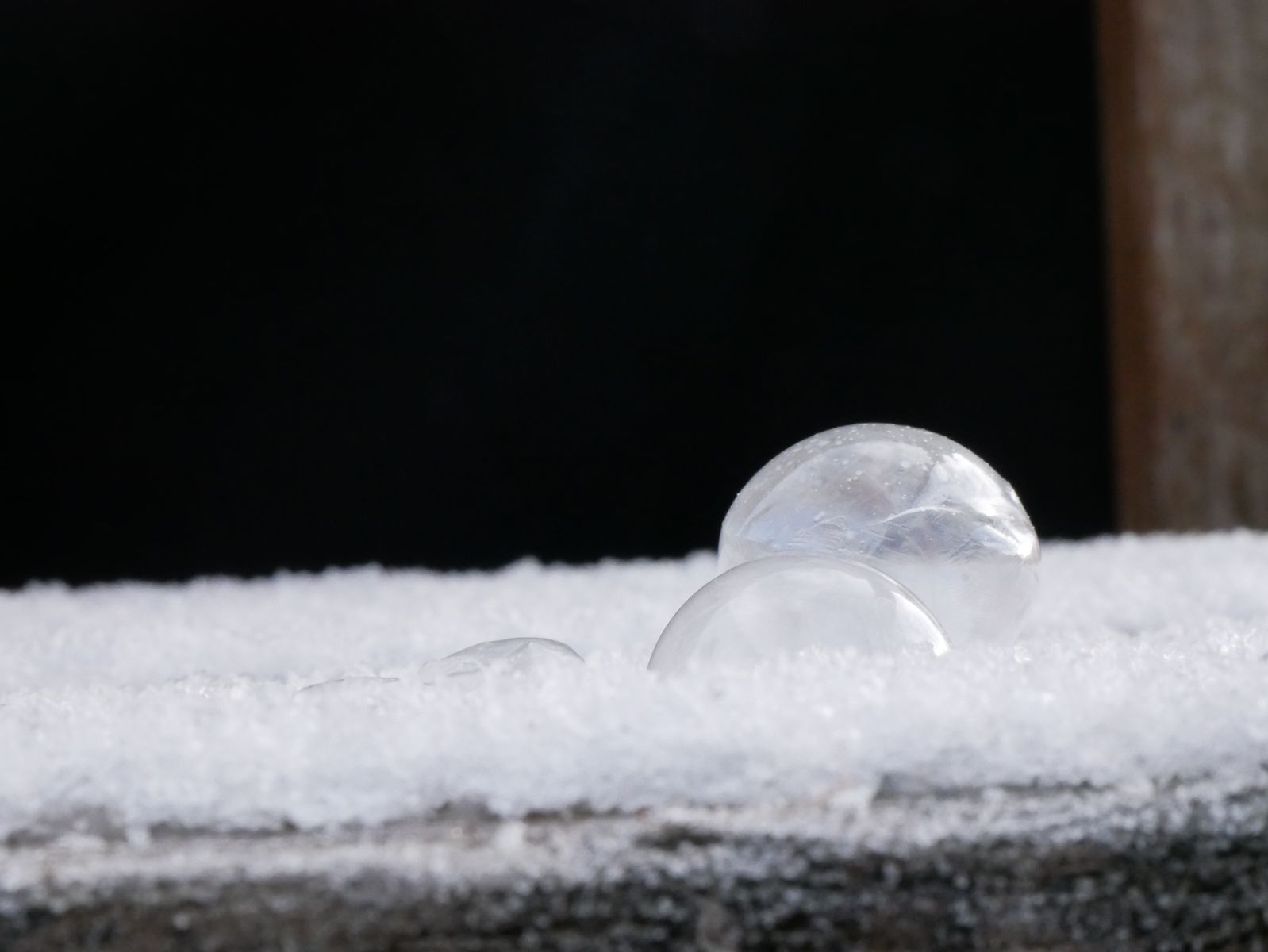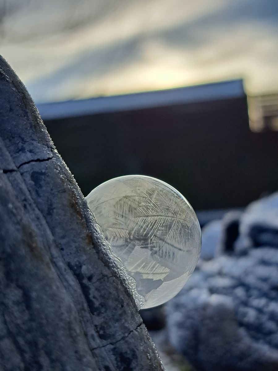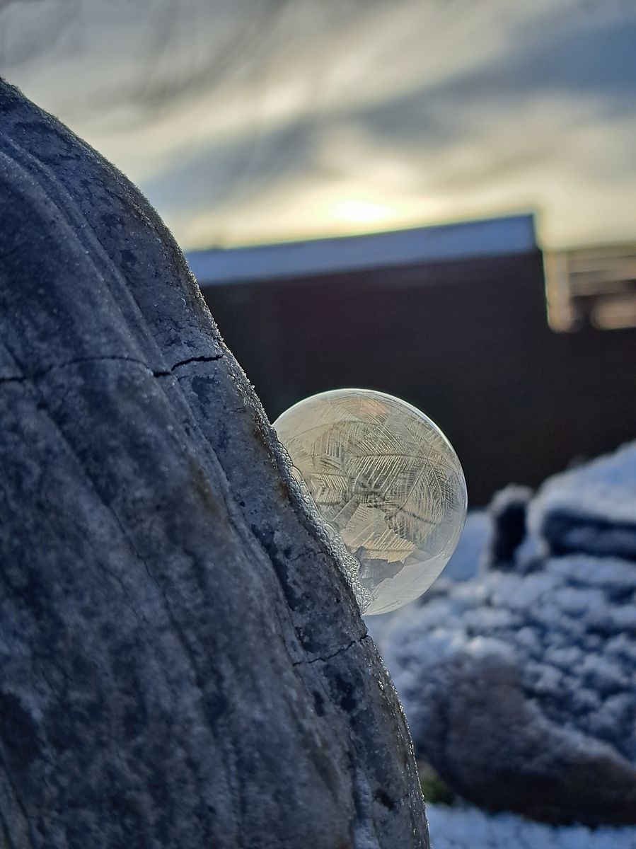 Aber jetzt: erste Tests ergaben, dass eine gefrohrene Steinplatte sich sehr gut eignet um Seifenblasen schnell gefrieren zu lassen - doch ach Schreck,