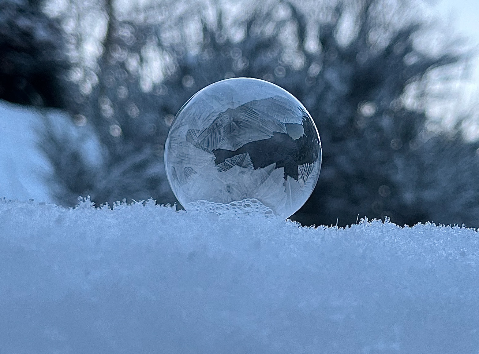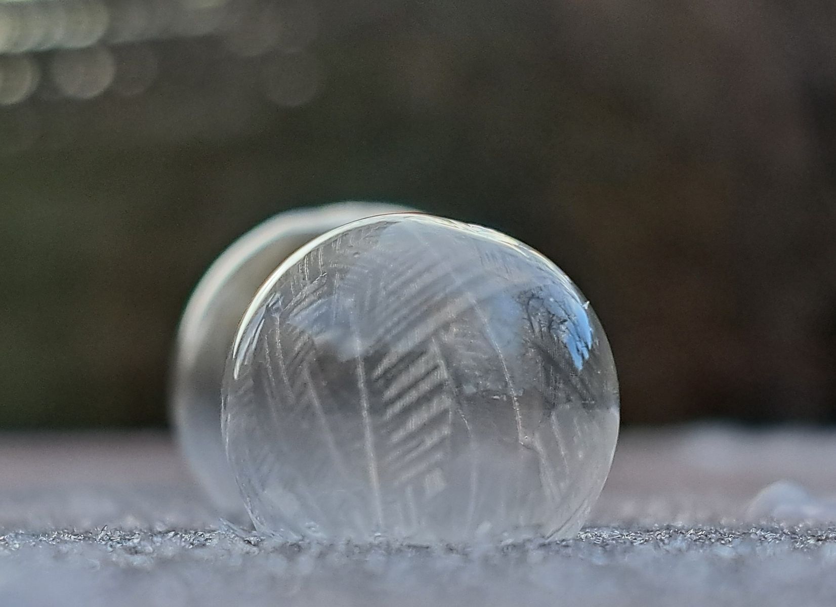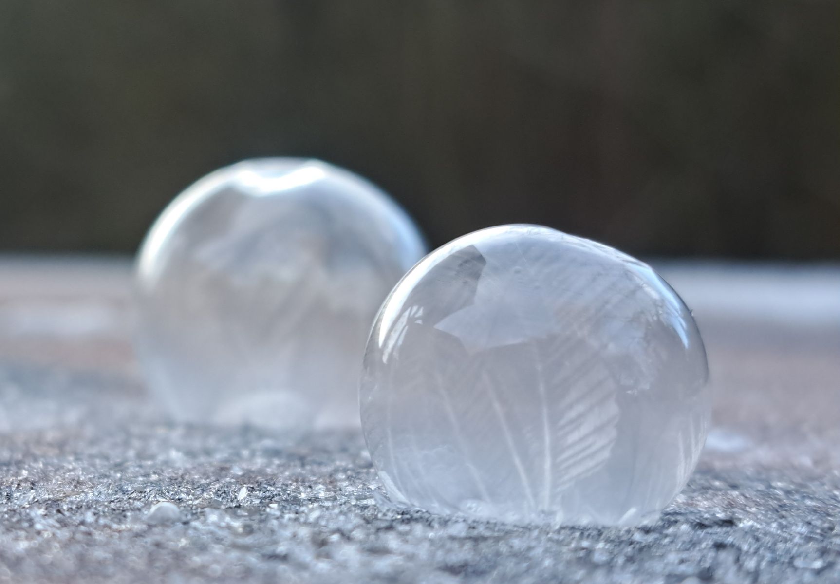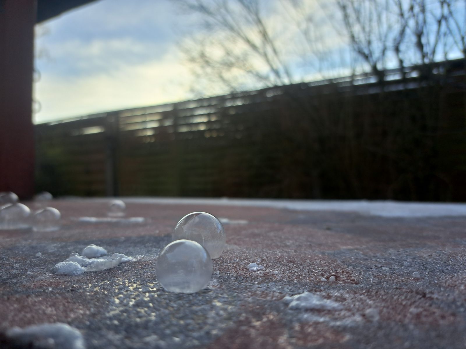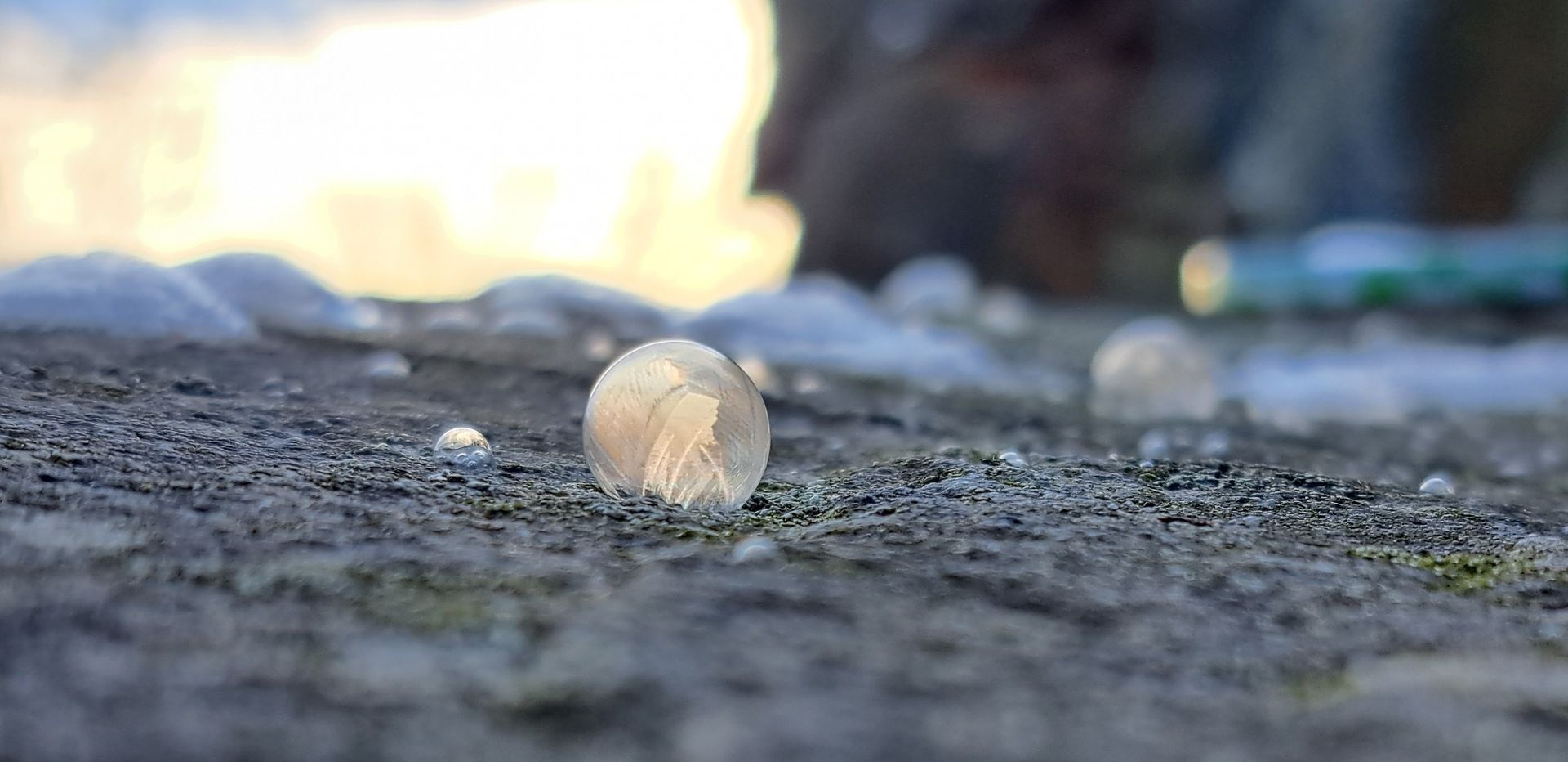 Aber jetzt: erste Tests ergaben, dass eine gefrohrene Steinplatte sich sehr gut eignet um Seifenblasen schnell gefrieren zu lassen - doch ach Schreck,