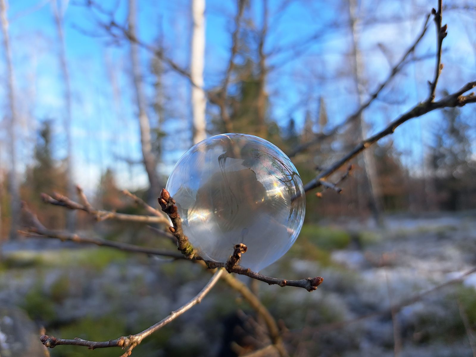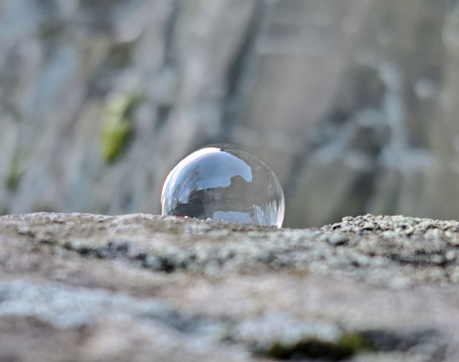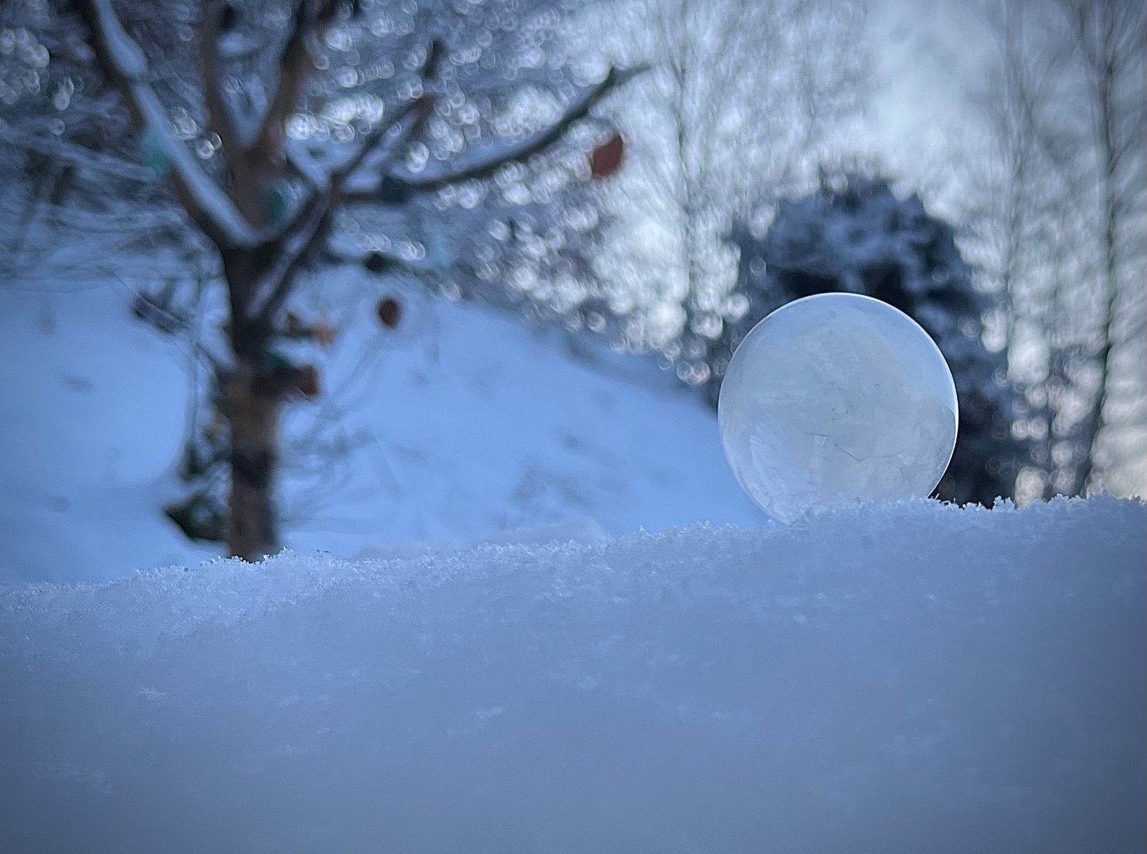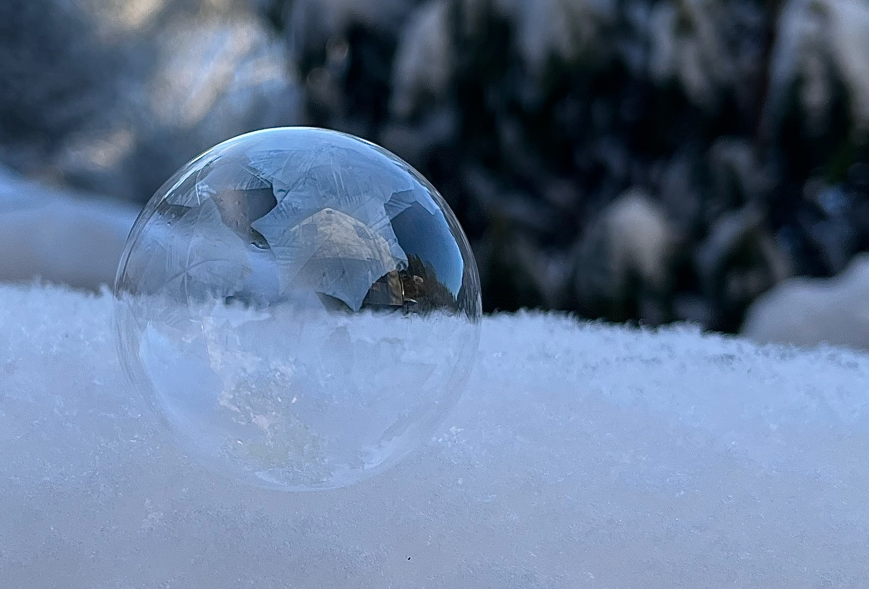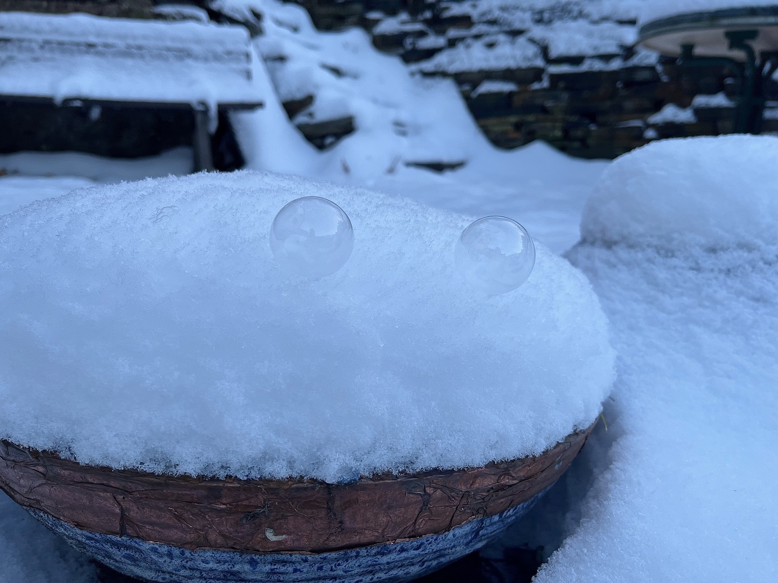 Aber jetzt: erste Tests ergaben, dass eine gefrohrene Steinplatte sich sehr gut eignet um Seifenblasen schnell gefrieren zu lassen - doch ach Schreck,
