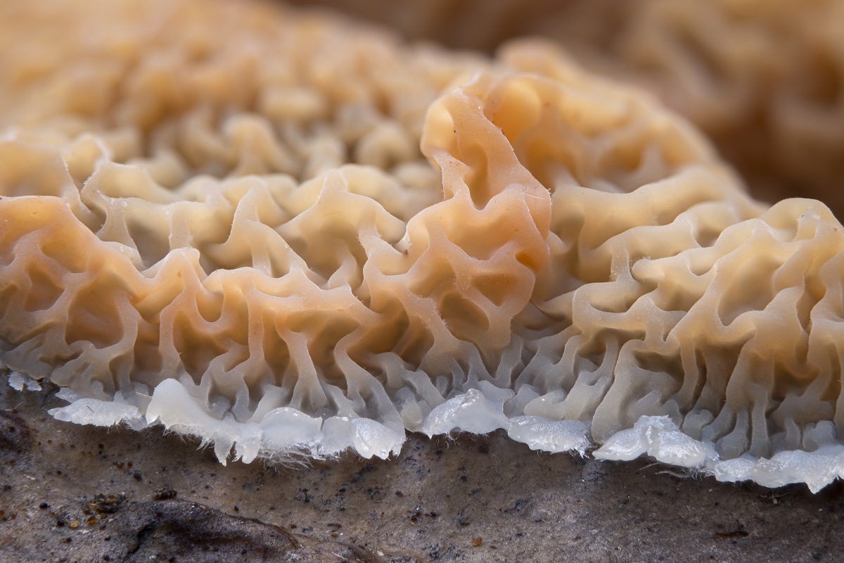 Beim Wilden Hausschwamm sieht die Fläche eher aus als wenn da viele Stofflappen übereinander liegen würden. Beim Gallertfleischigen Fältling ähnelt es mehr Windungen, was ich hier zu erkennen meine. Zu wenig Gelb fällt mir ebenfalls auf.