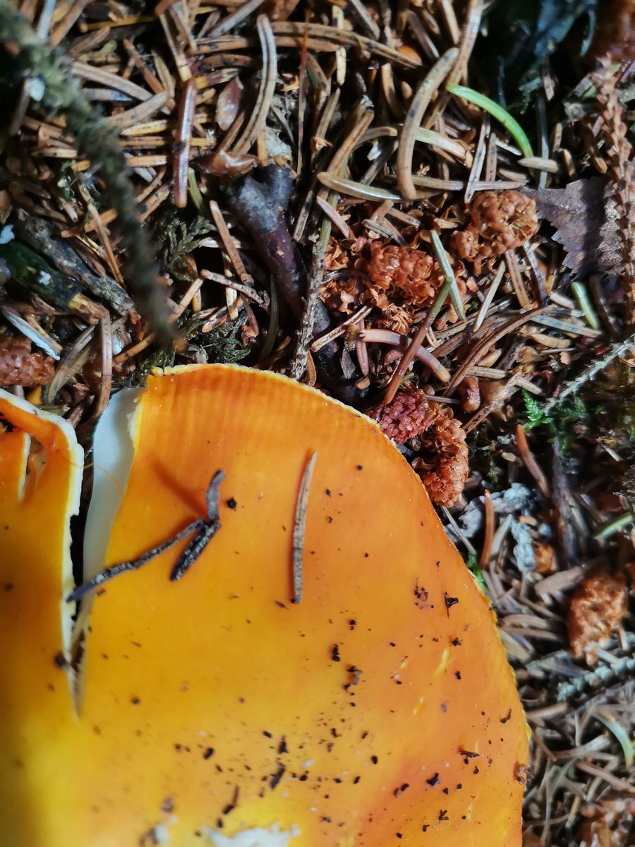 Orange gelber fliegenpilz