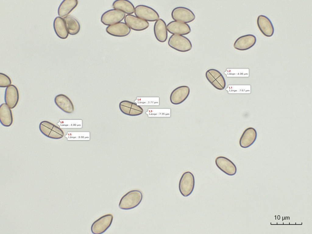 Sporen: 6,5-7,2-8,2 x 3,7-4,0-4,2µ