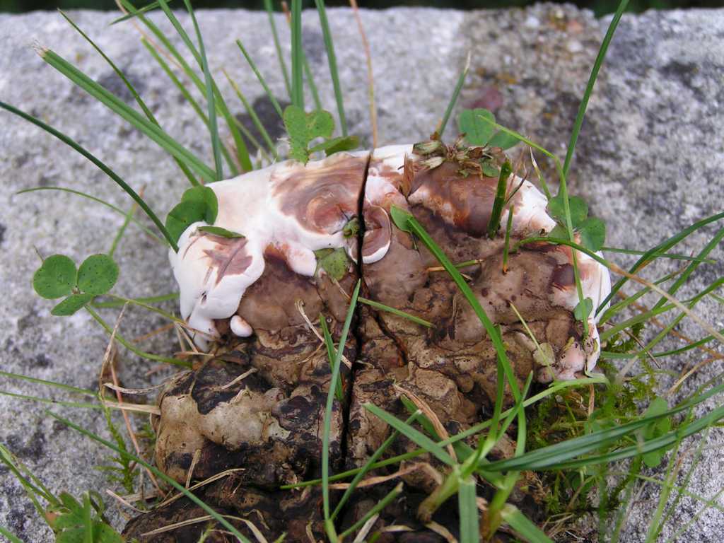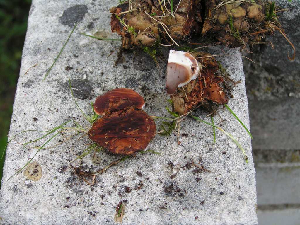 Dann habe ich noch einen bislang unentdeckten und daher in Würde gealterten Perlpilz hinterm Holzstapel gefunden: