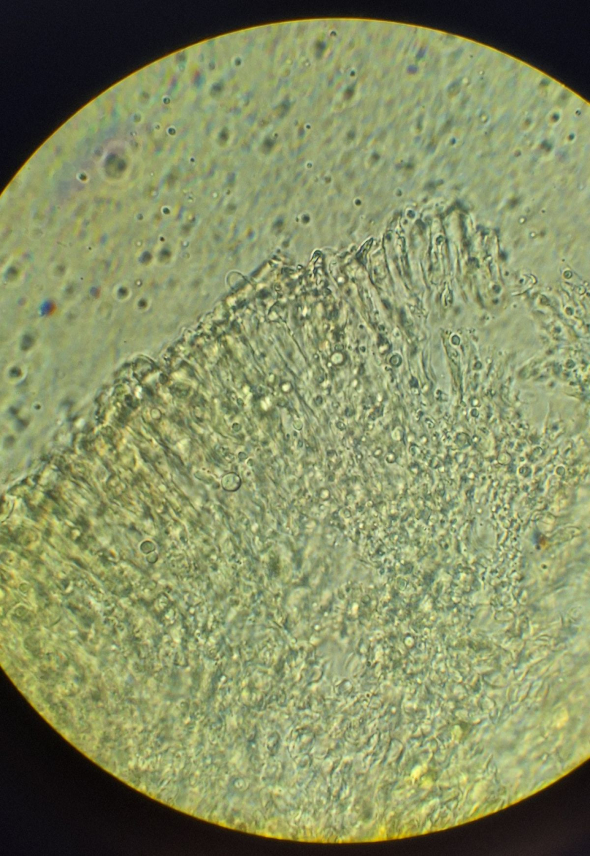 zwei freie Sporen habe ich gefunden, die eigentlich nichts neues zeigen gegenüber den vorherigen Bildern, ~ 6*8 µm groß und glatte Oberfläche. Damit dürfte doch nun C. laeticolor klar sein, oder?
