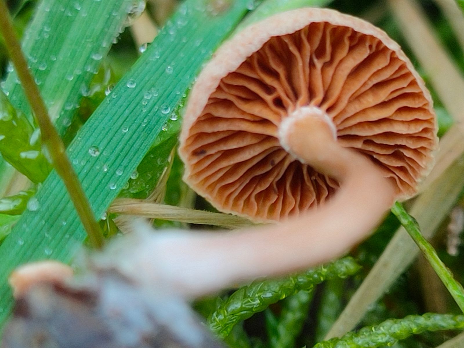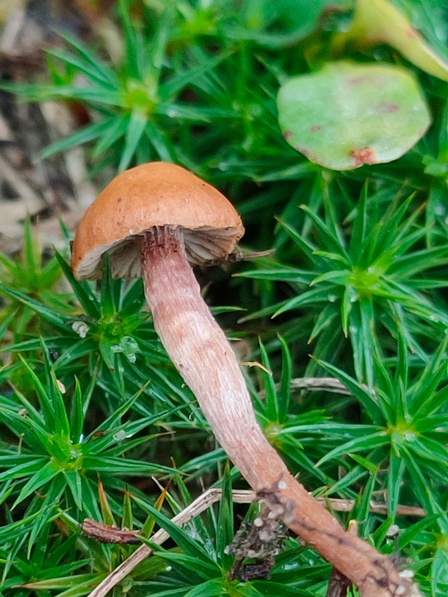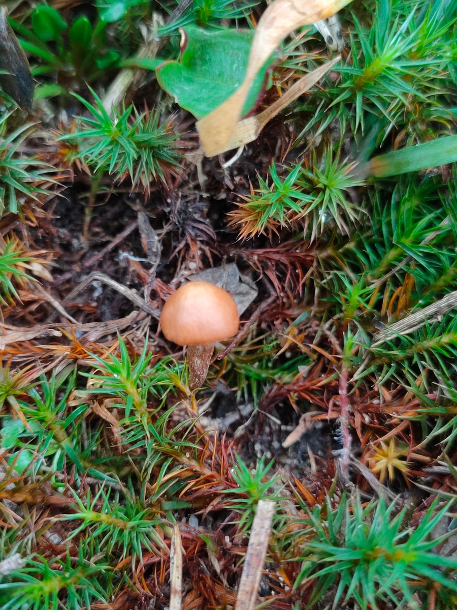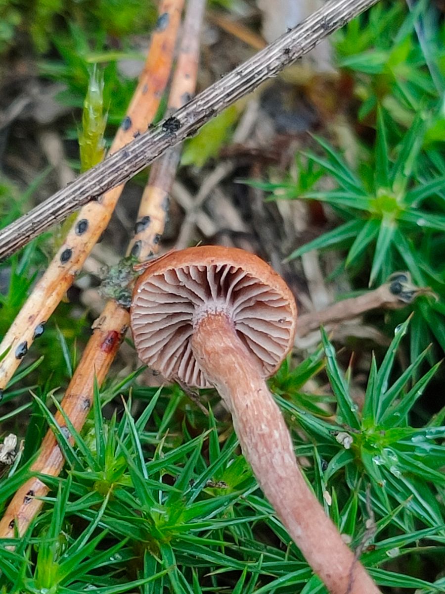 3. Unbekannte Inocybe im Moos?: Ein recht kleiner brauner Pilz, 5mm Hutdurchmesser, kein auffälliger Geruch. Die Lamellen ebenfalls Braun,