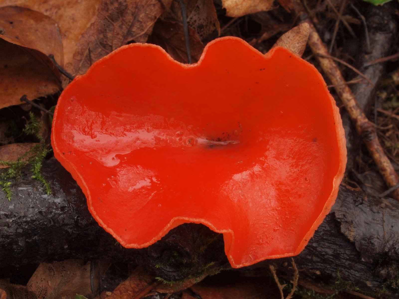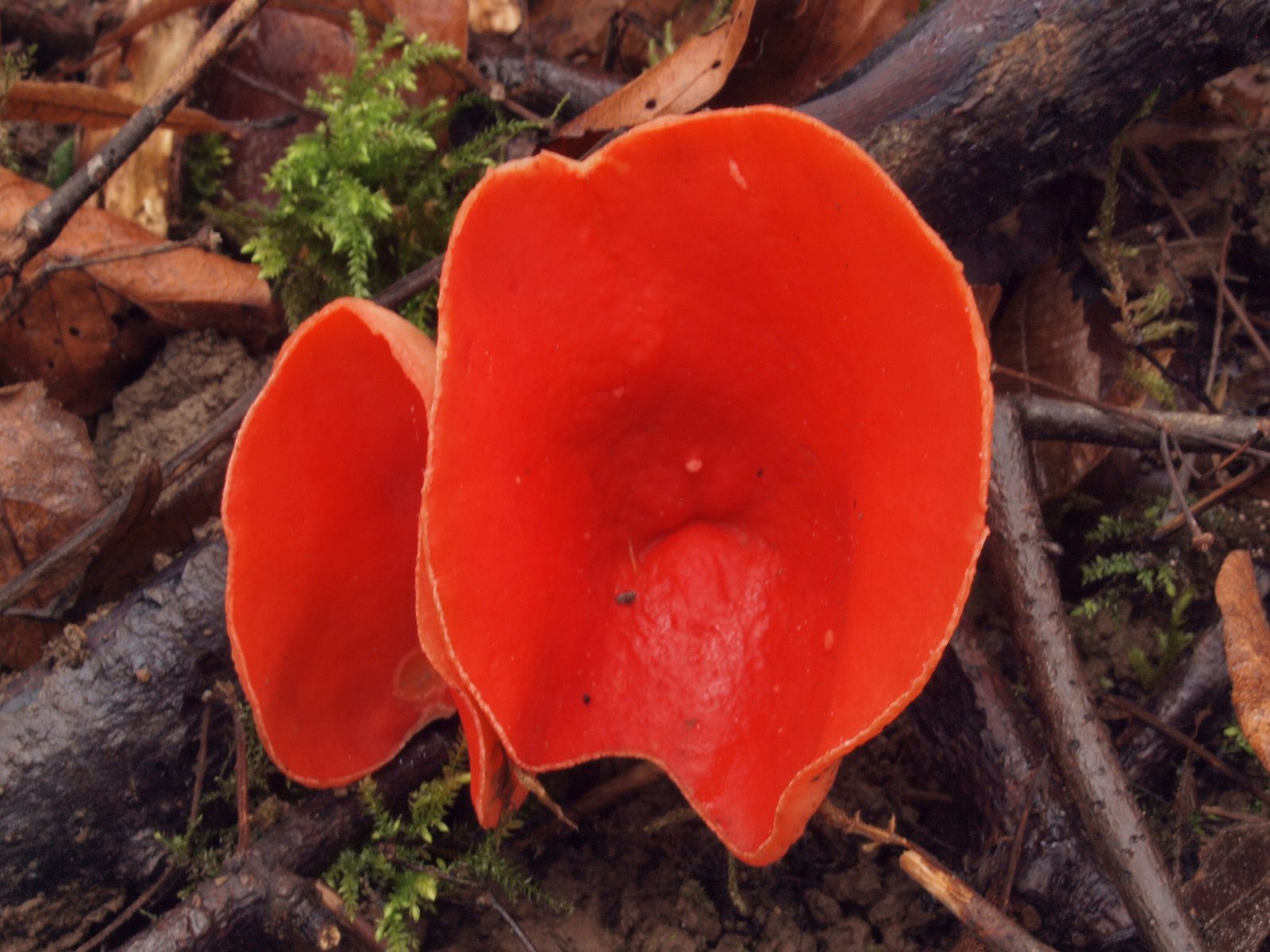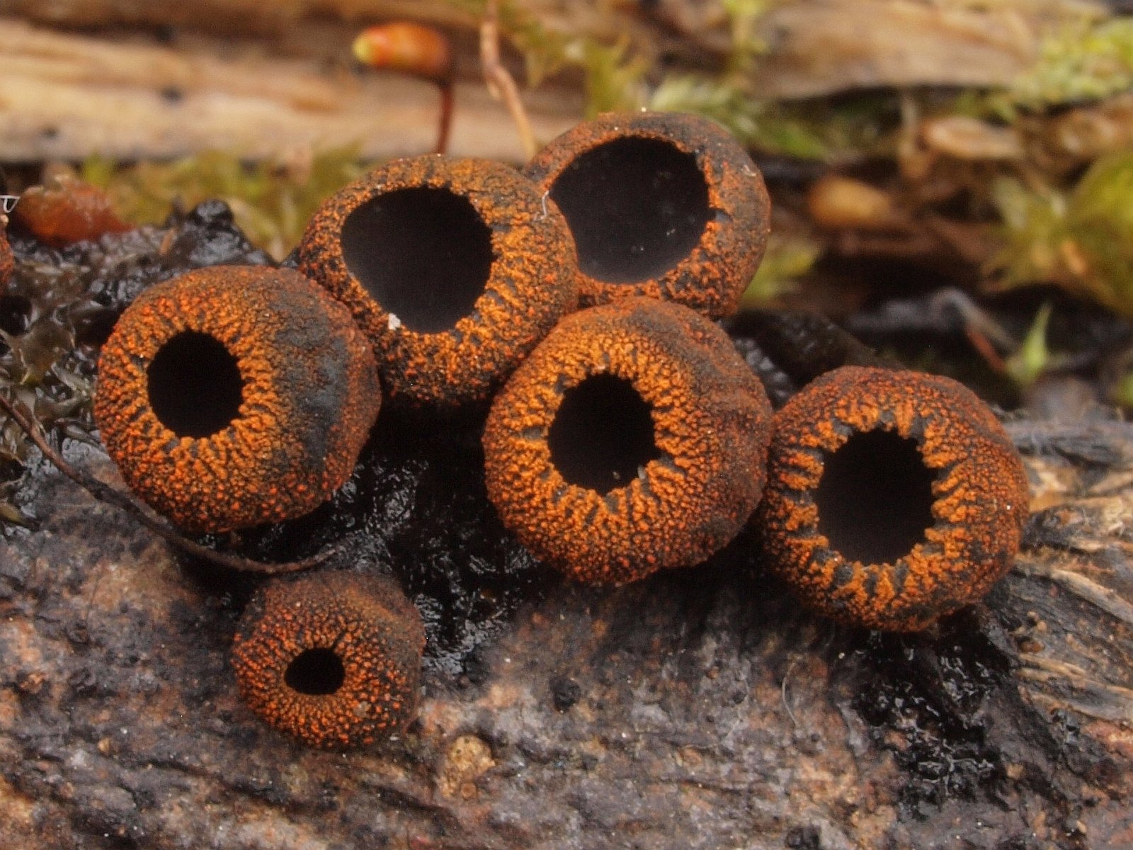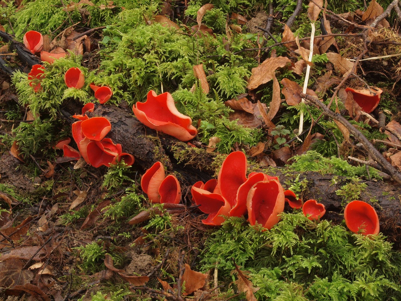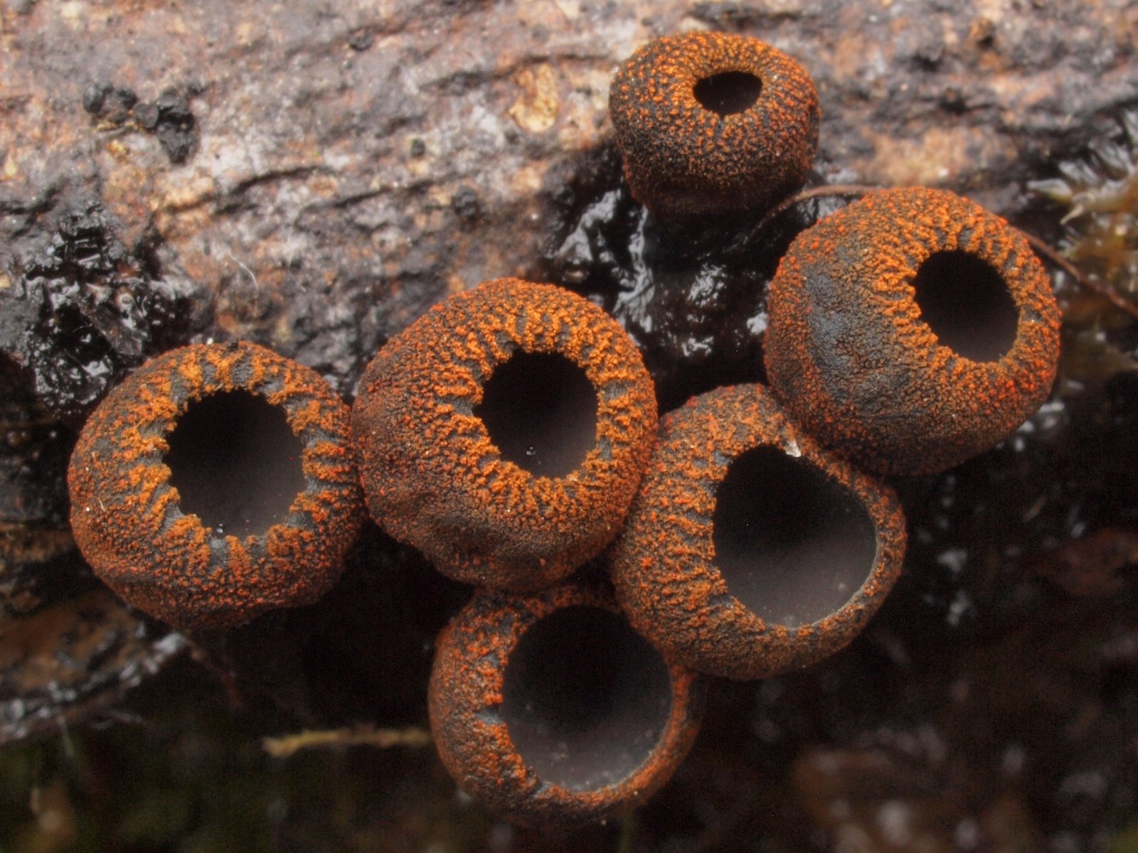 Der Knaller war aber ein dünner Zweig mit Schwarzmündigen Kelchbecherlingen (Plectania melastoma) in nie gesehener Zahl