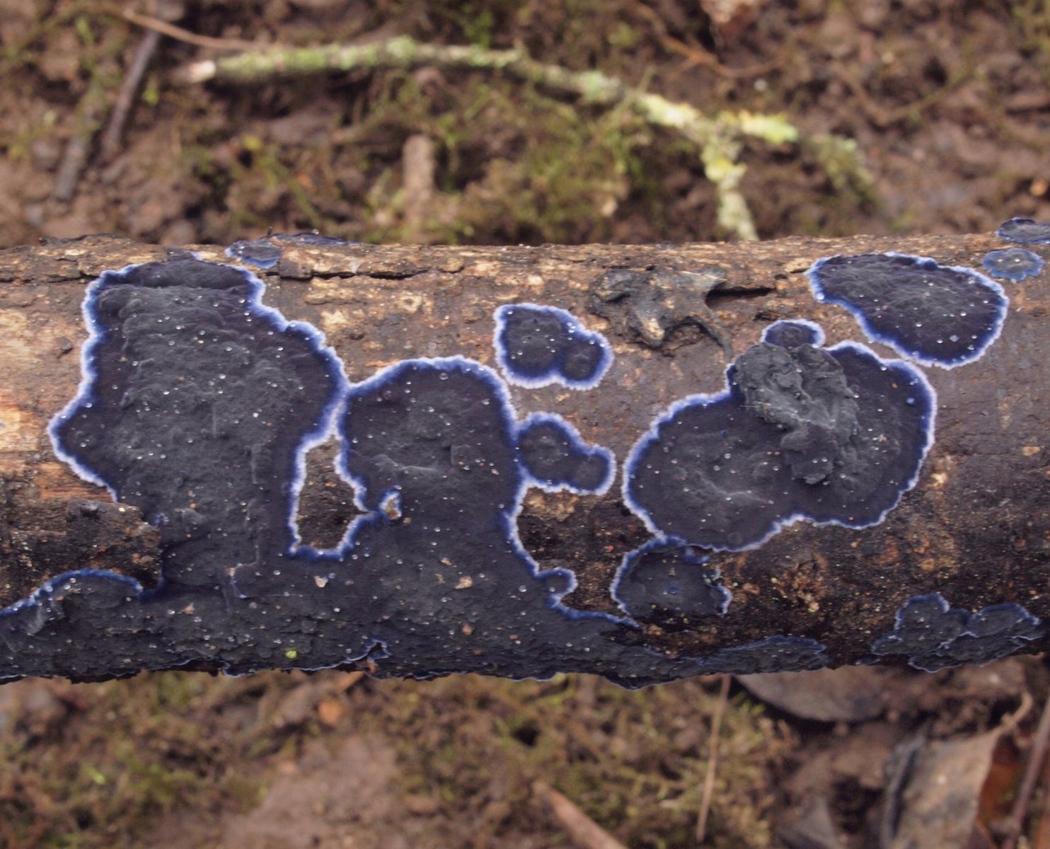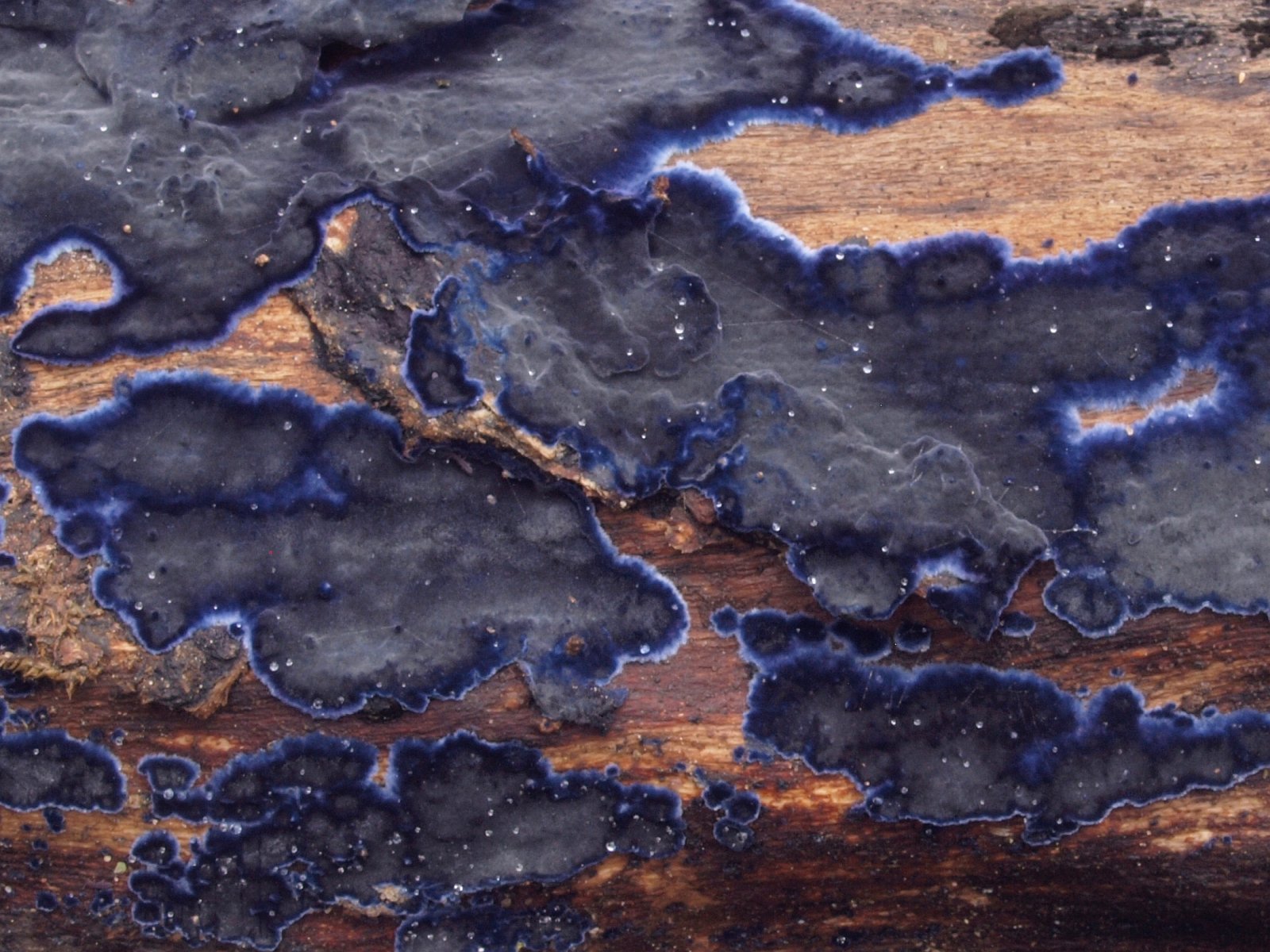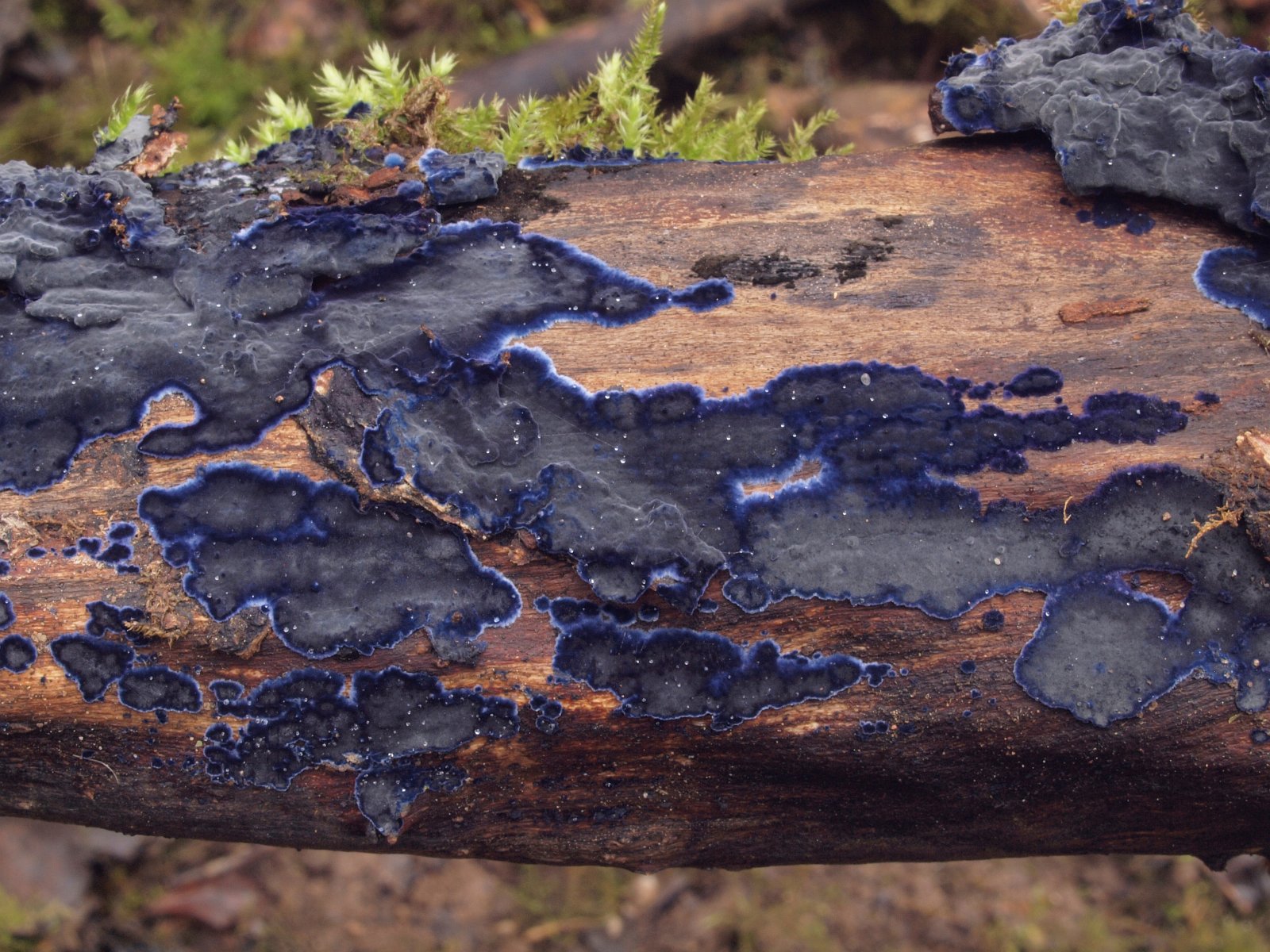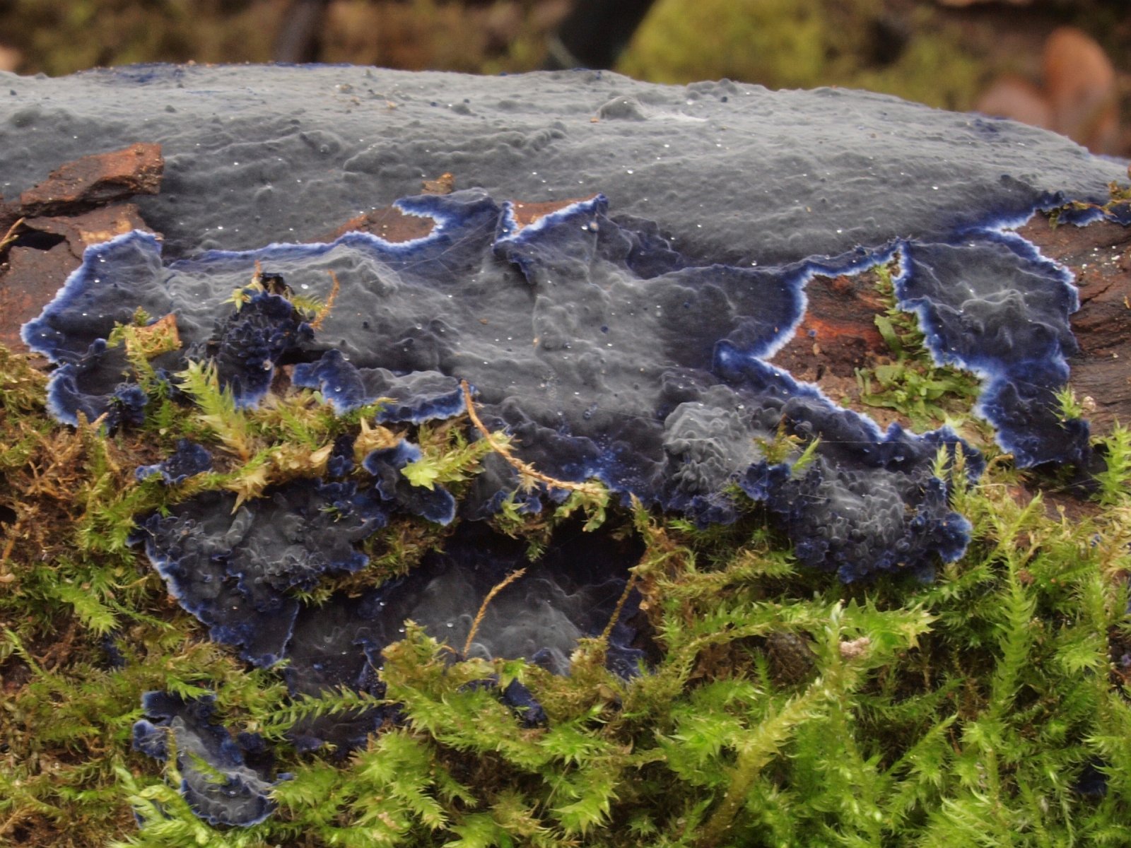 Dann führte uns Günter in seinen persönlichen Zauberwald mit Blauen Rindenpilzen ( Terana coerulea) zur nächsten Foto-Session