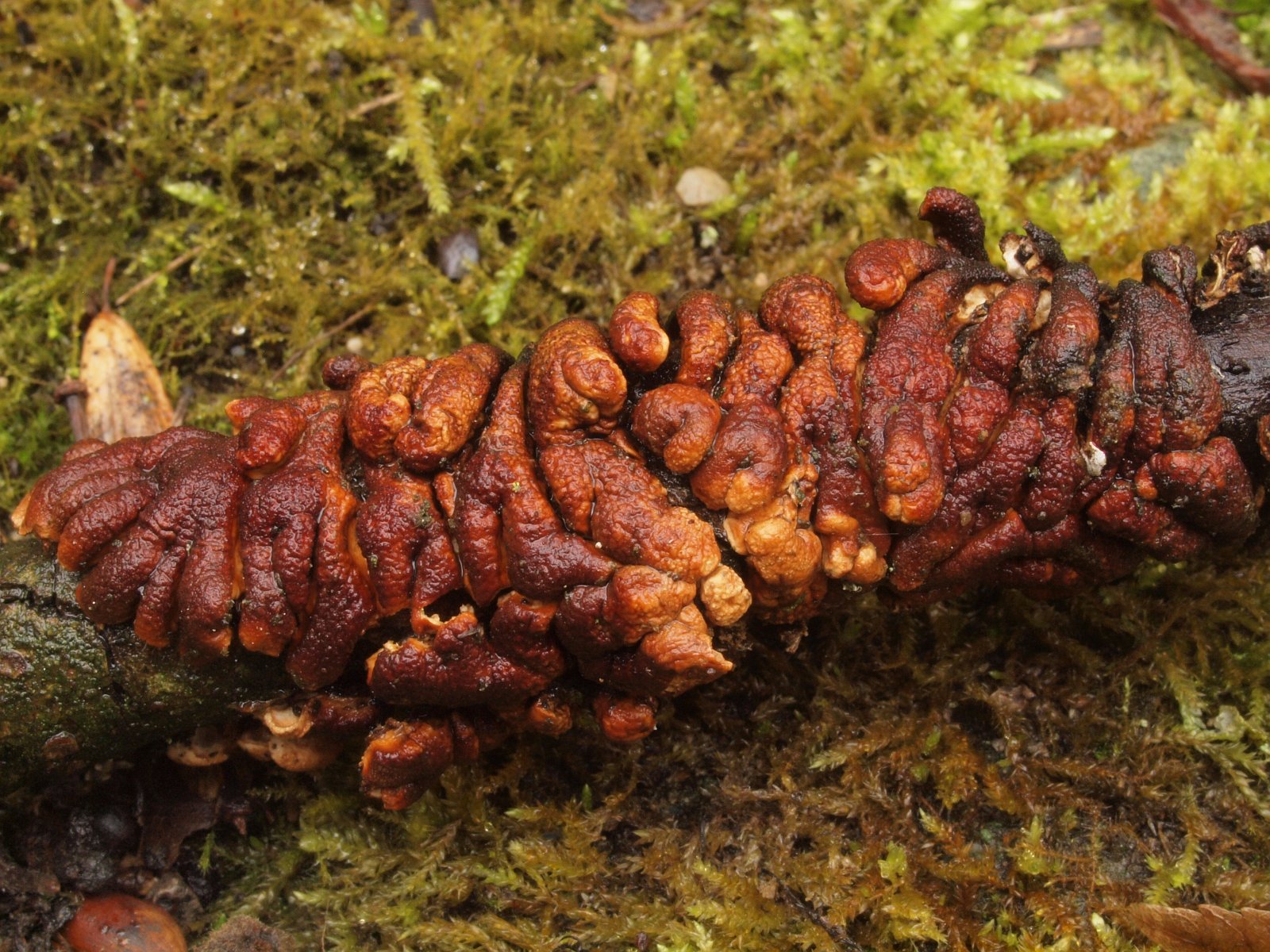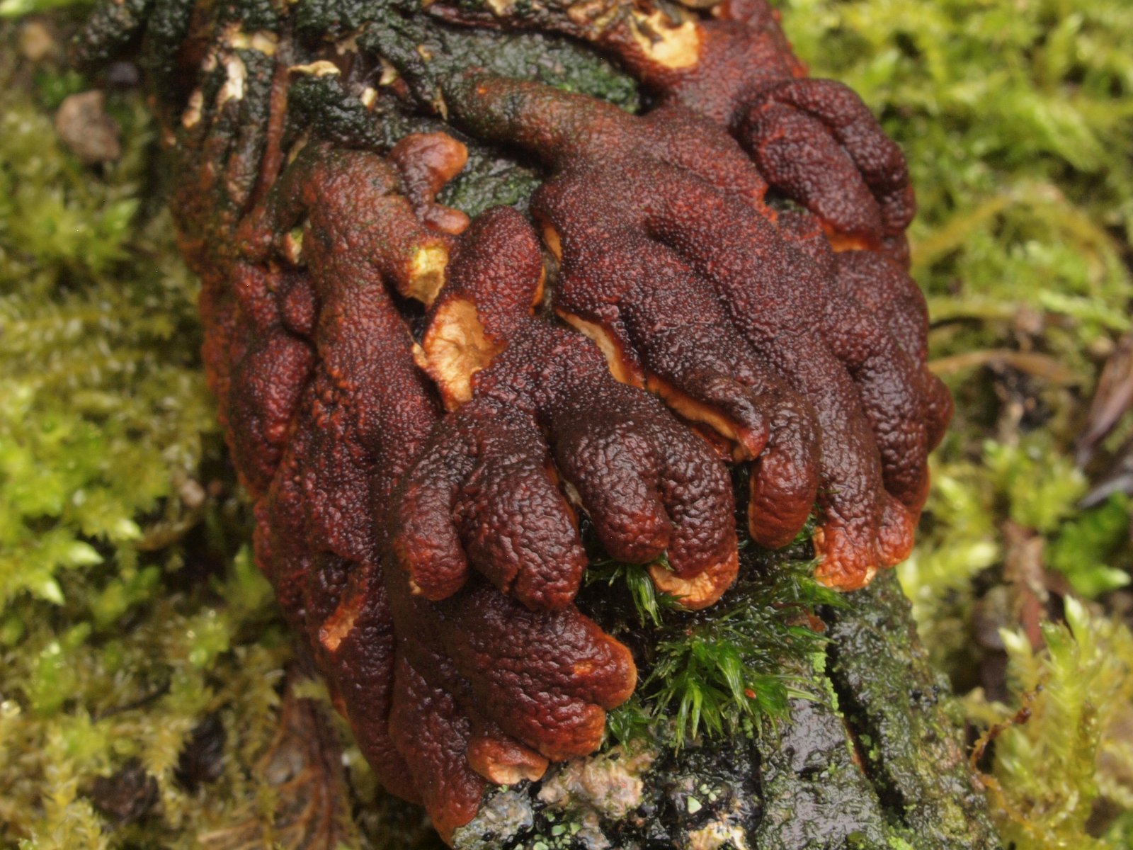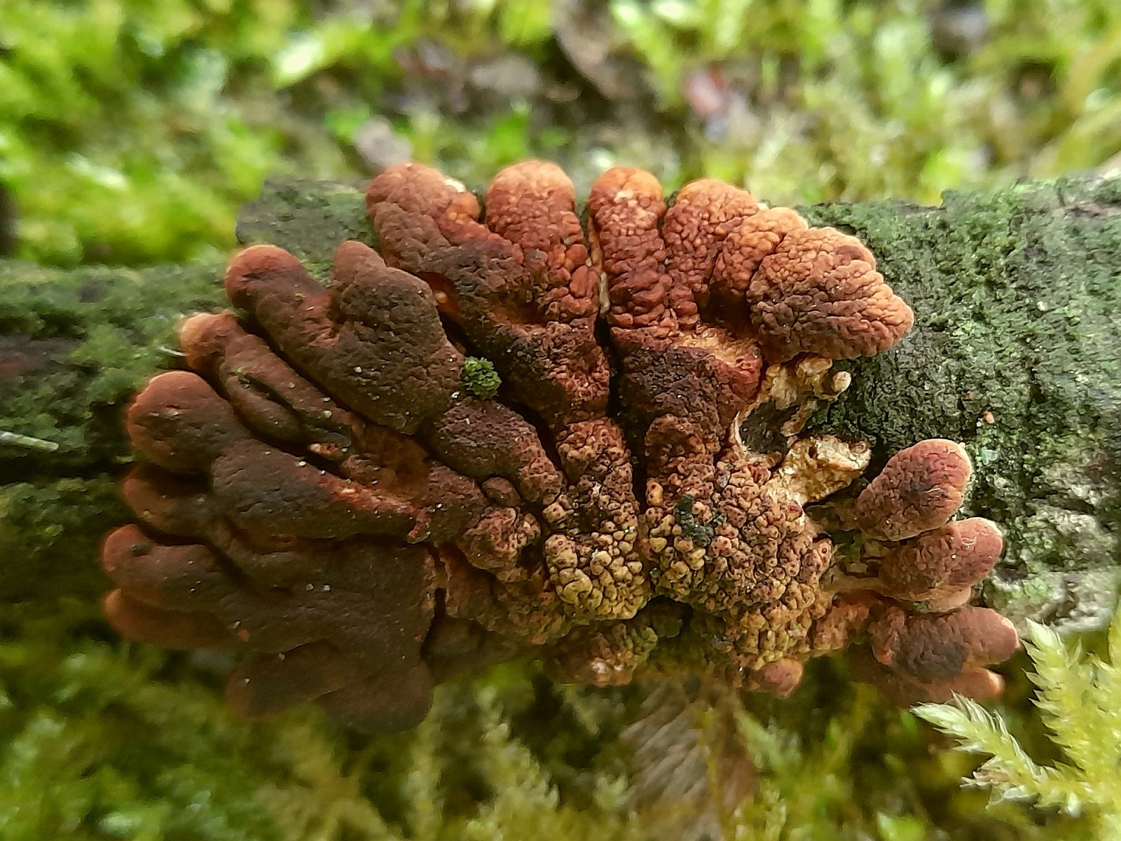 Ausgiebig wurden auch zwei seltene Pilze an Holz fotografiert. Trollhand oder auch Weiden-Scheinflechtenpilz (Hypocreopsis lichenoides)