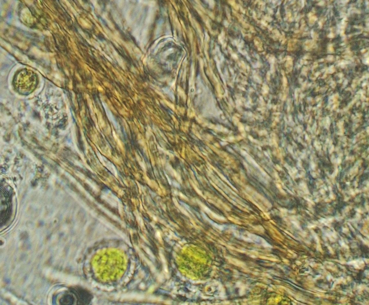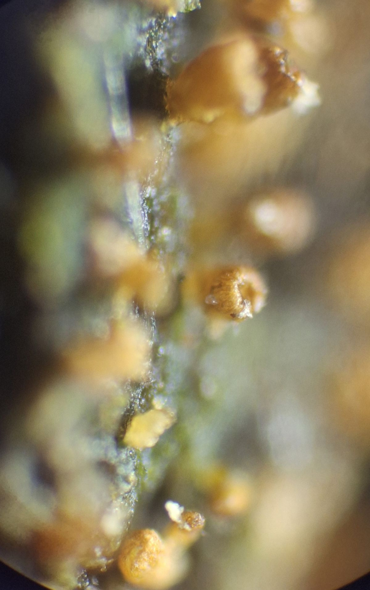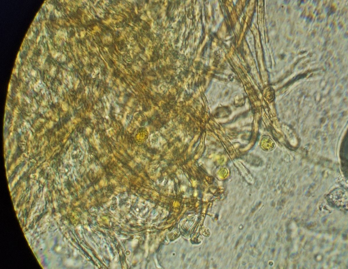 Und außer den grünlichen Kullerdingern sehe ich nichts, was Sporen sein könnten.