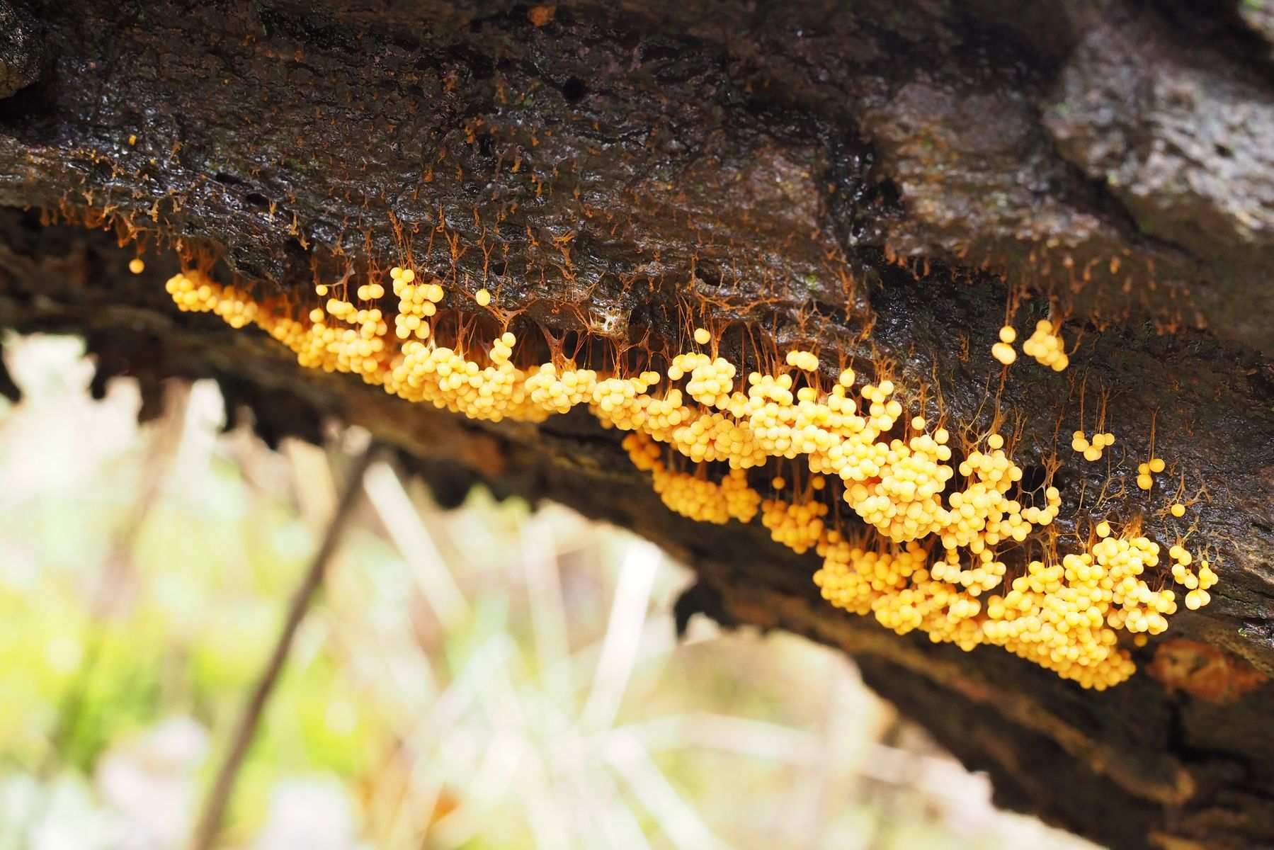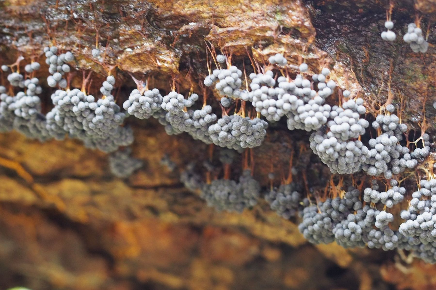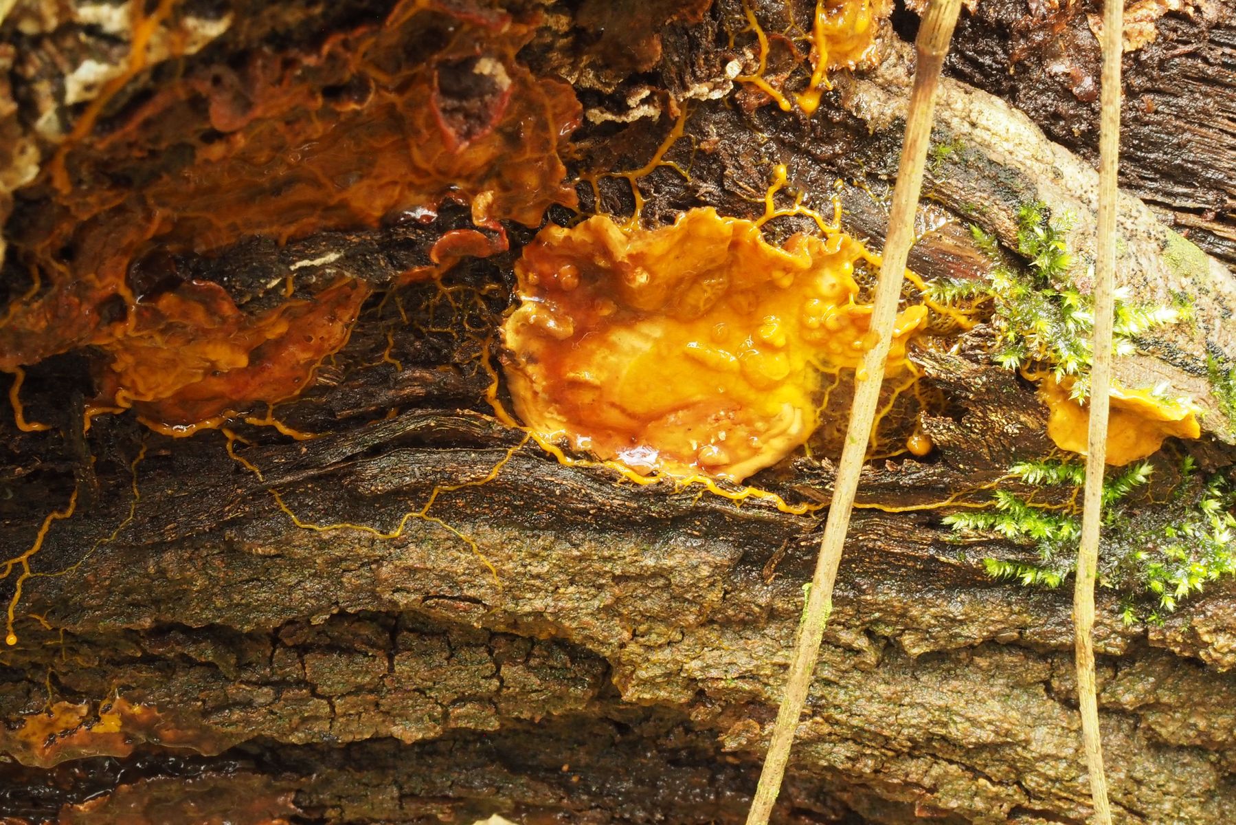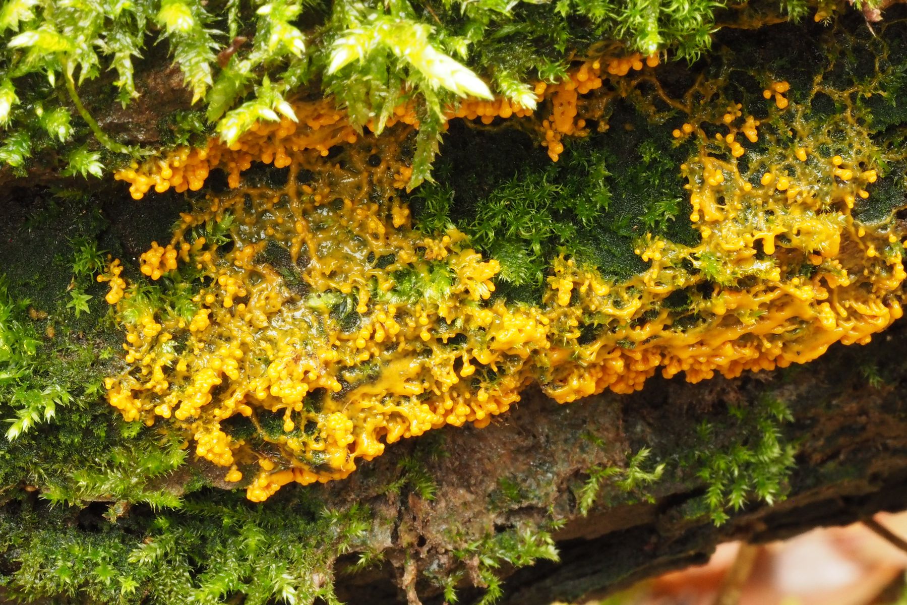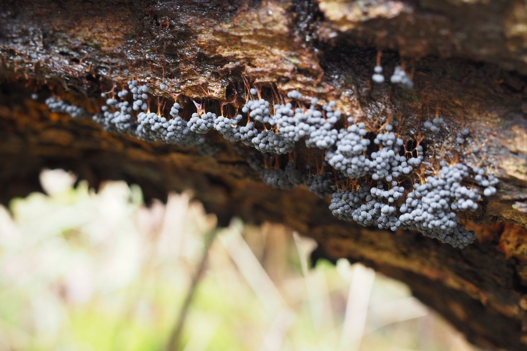 in den letzten Tagen, also Anfang Februar, habe ich an einem abgesägten alten dicken Eichenstamm seitlich bzw. etwas unterhalb sitzend den nachfolgend abgebildeten Schleimpilz gefunden. Nach meiner Meinung sollte es sich um den Fadenfrucht-Schleimpilz Physarum utriculare (Syn. Badhamia utricularis, Sphaerocarpus u.) handeln.