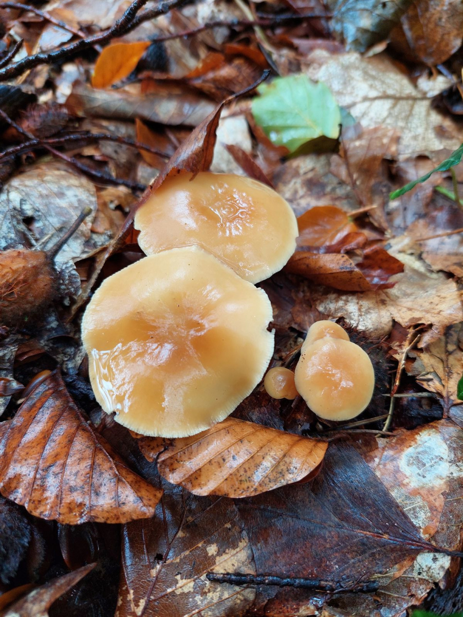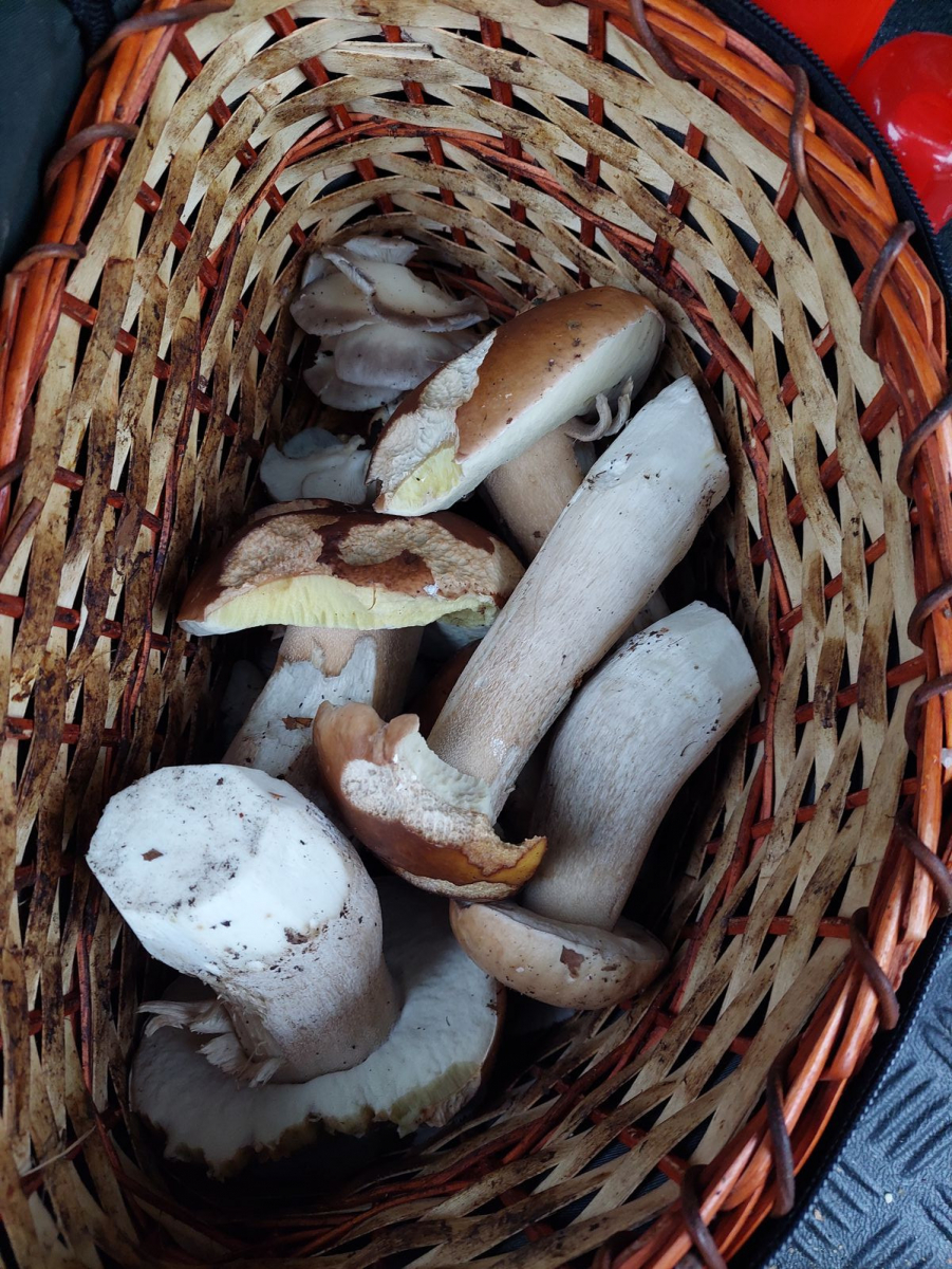 Zuerst entdeckte ich Lungenseitlinge, dann einen großen, total madig Fichtensteinpilz. Ziemlich viel Glimmertintlinge, ein Rotfußröhrling, dann 2 kleine Steinpilze. Einige kleine Stockschwämmchen waren auch zu finden
