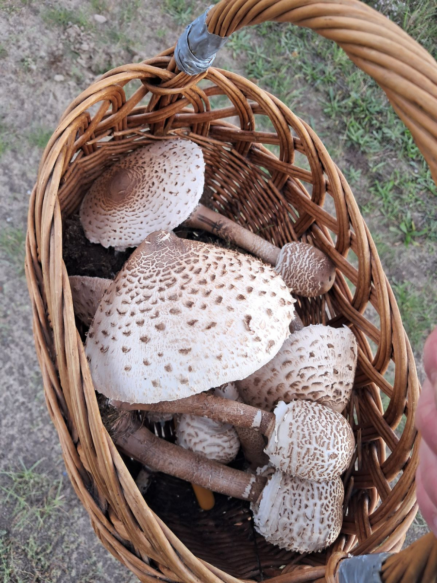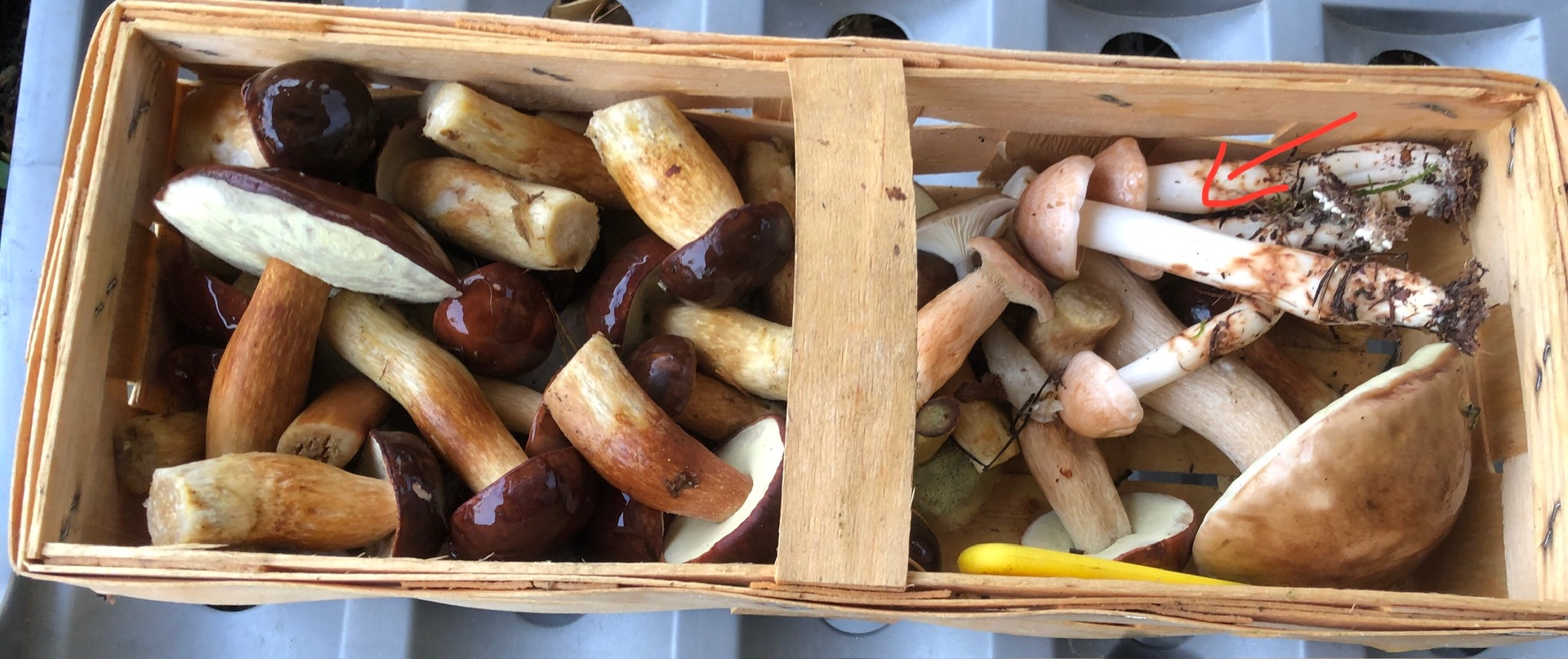 bitte unbekannte, potentiell hochgiftige Pilze, nicht mit den Funden zusammentun, die man essen möchte. Da kann dann unter Umständen unerwünschtes mit im Essen landen, da können auch kleinere Bruchstücke sehr unangenehme gesundheitliche Probleme nach sich ziehen. Sowas am besten in einem sepraten Behälter sammeln, so daß nix bei den anderen dazwischen kommt.