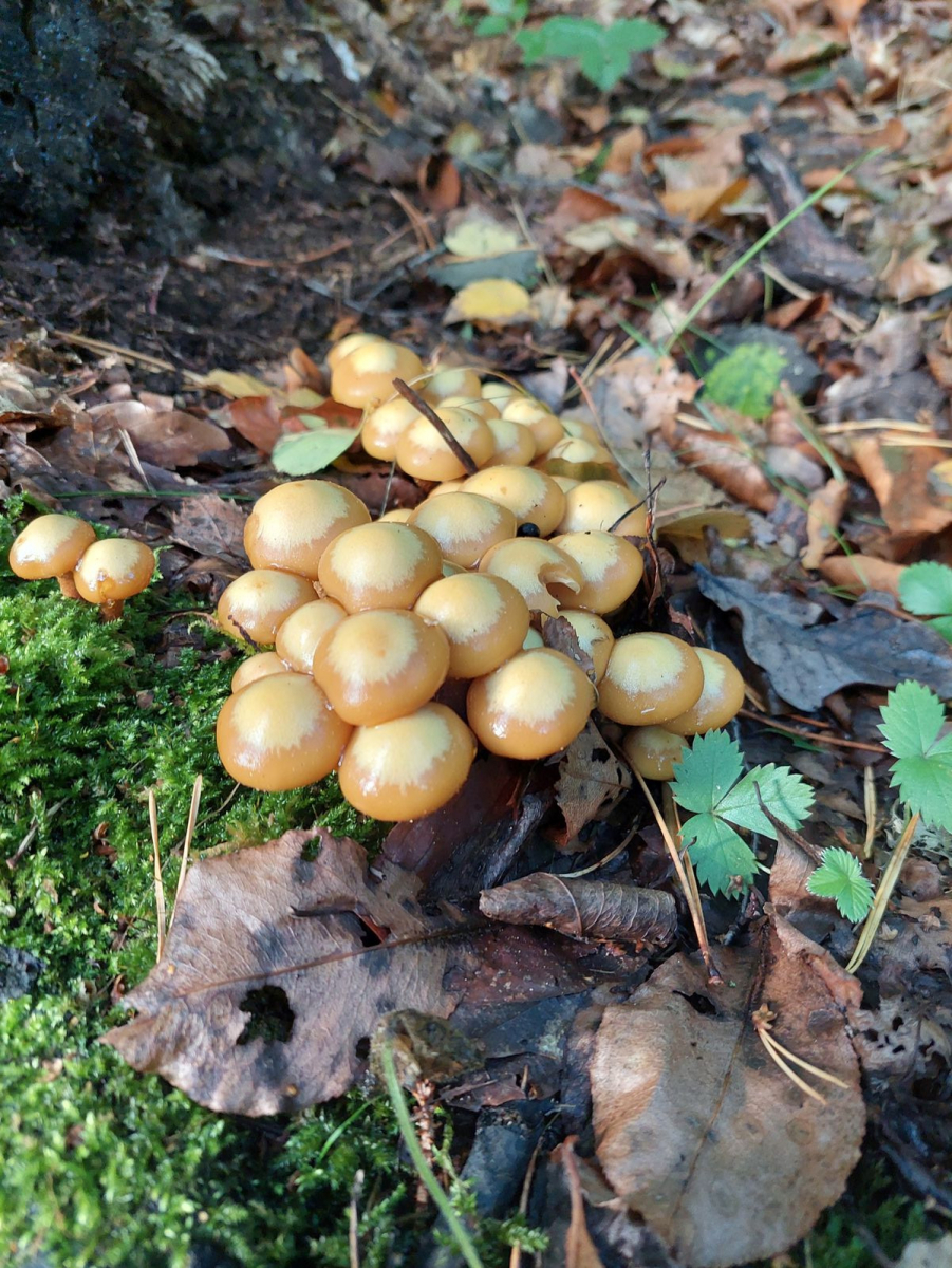 Das einzige an Pilz waren neben den üblichen Birkenporlingen nur stellenweise einige Rüblinge, vermutlich der gemeine Waldfreund-Rübling. (Hat hier irgendjemand schon mal Rüblinge gesammelt und verzehrt?)