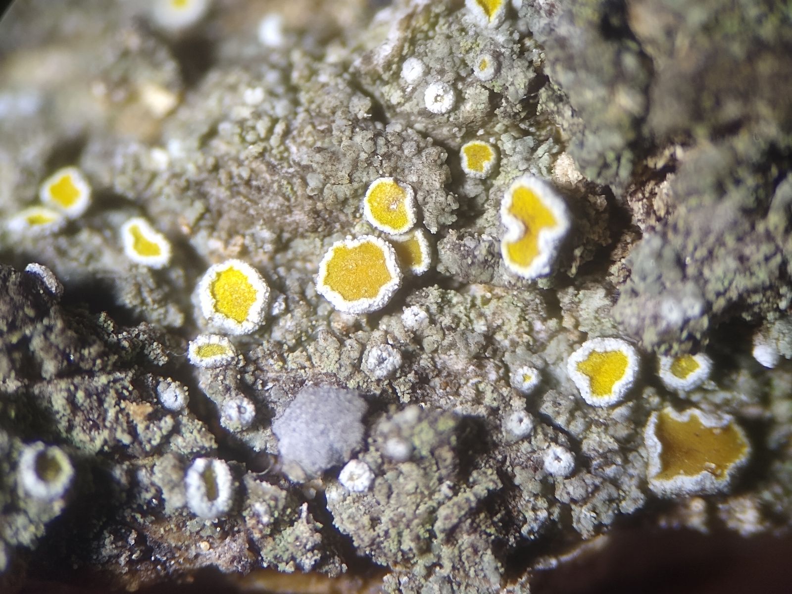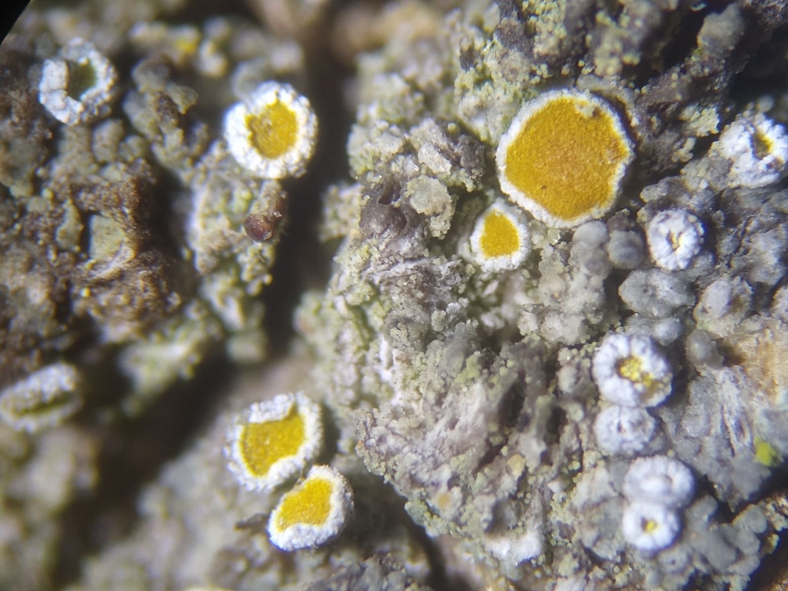 Bild 4 Makro von körnig/kleinschuppigem Thallus und den gänseblümchenförmigen Apothecien