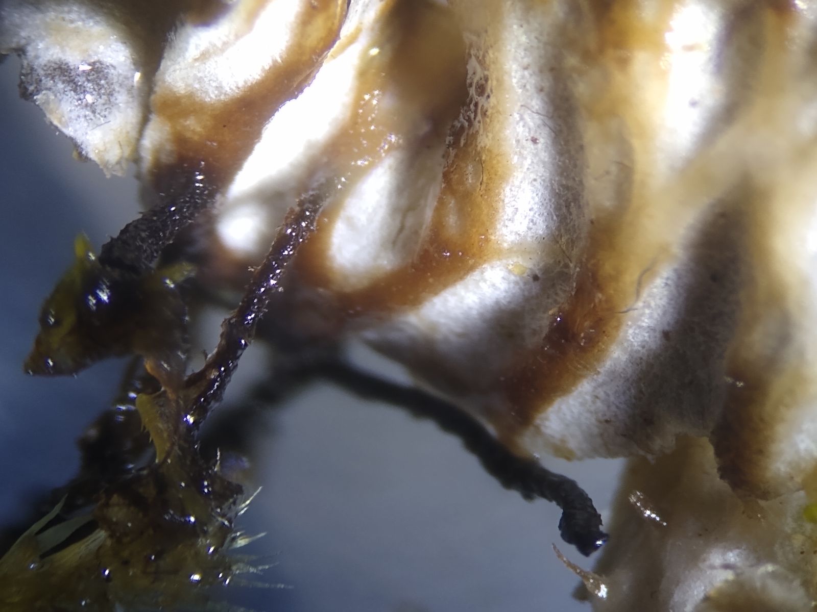 Thallusunterseite randlich weiß mit weißen Adern, weiter innen Adern braun.