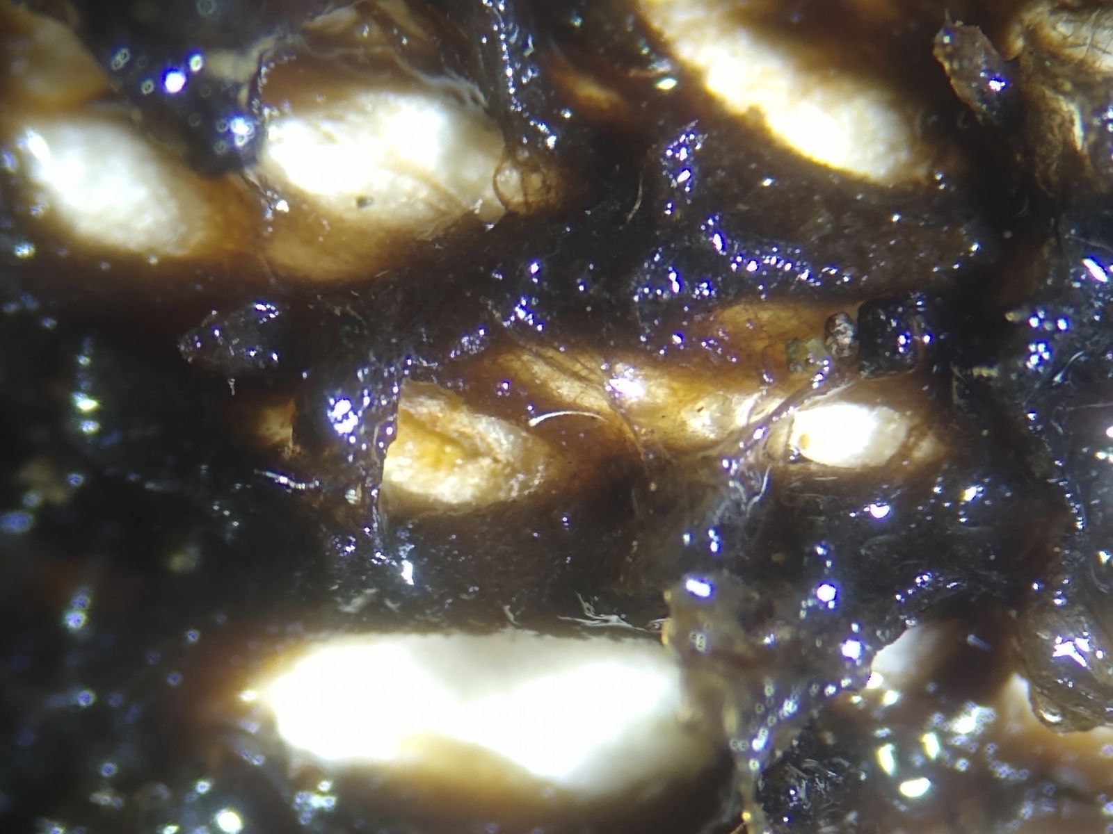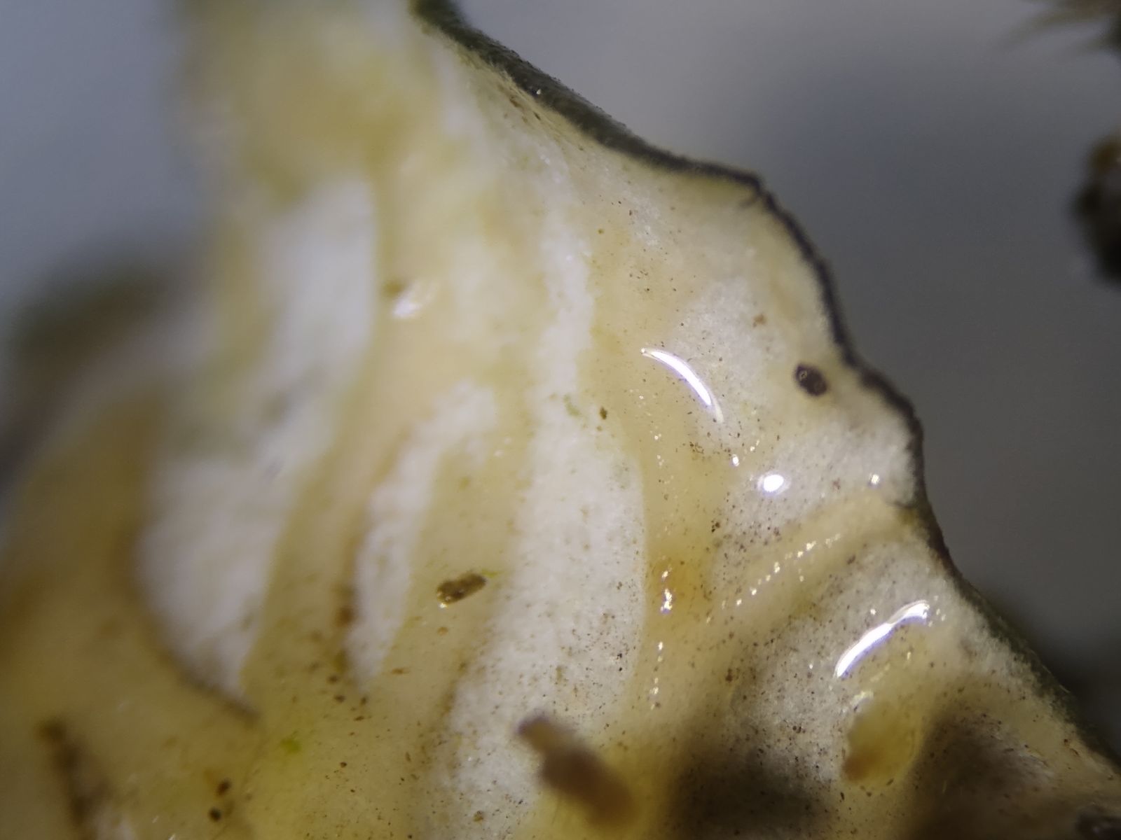 Bild B6 Adern in Thallusmitte, nass (um Moos zu lösen) - ovale weiße Fenster zwischen dunklen Adern