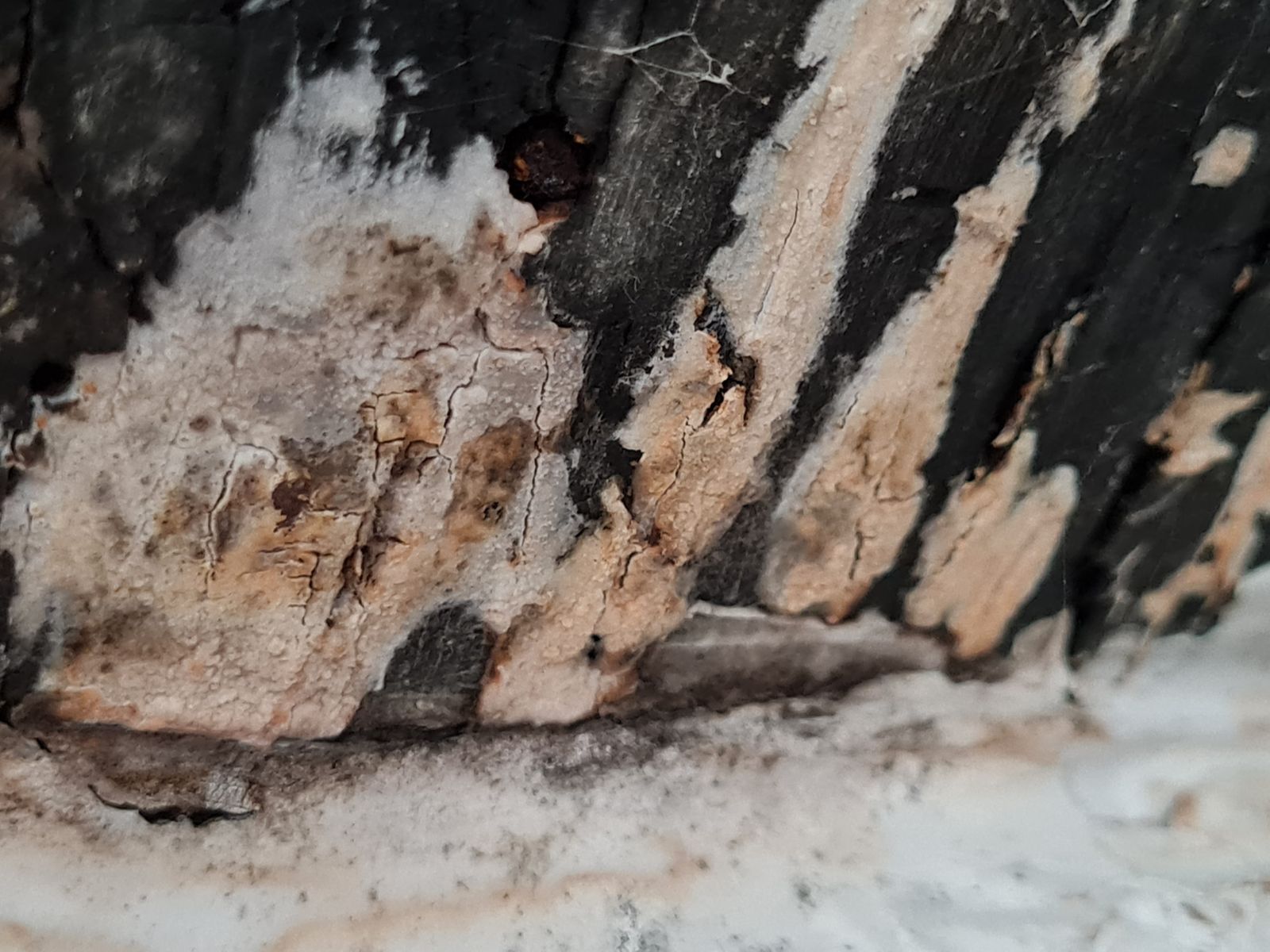 hier eine mir sehr wichtige Frage an die Expert:innen: Der auf dem folgenden Bild zu sehende Schimmelpilz sitzt auf einem sehr morschen Dachbalken eines 130 Jahre alten Bahnhofs. Ich wüsste gerne was das für einer ist und ob der irgendwie gesundheitsgefährdende Sporen bildet.