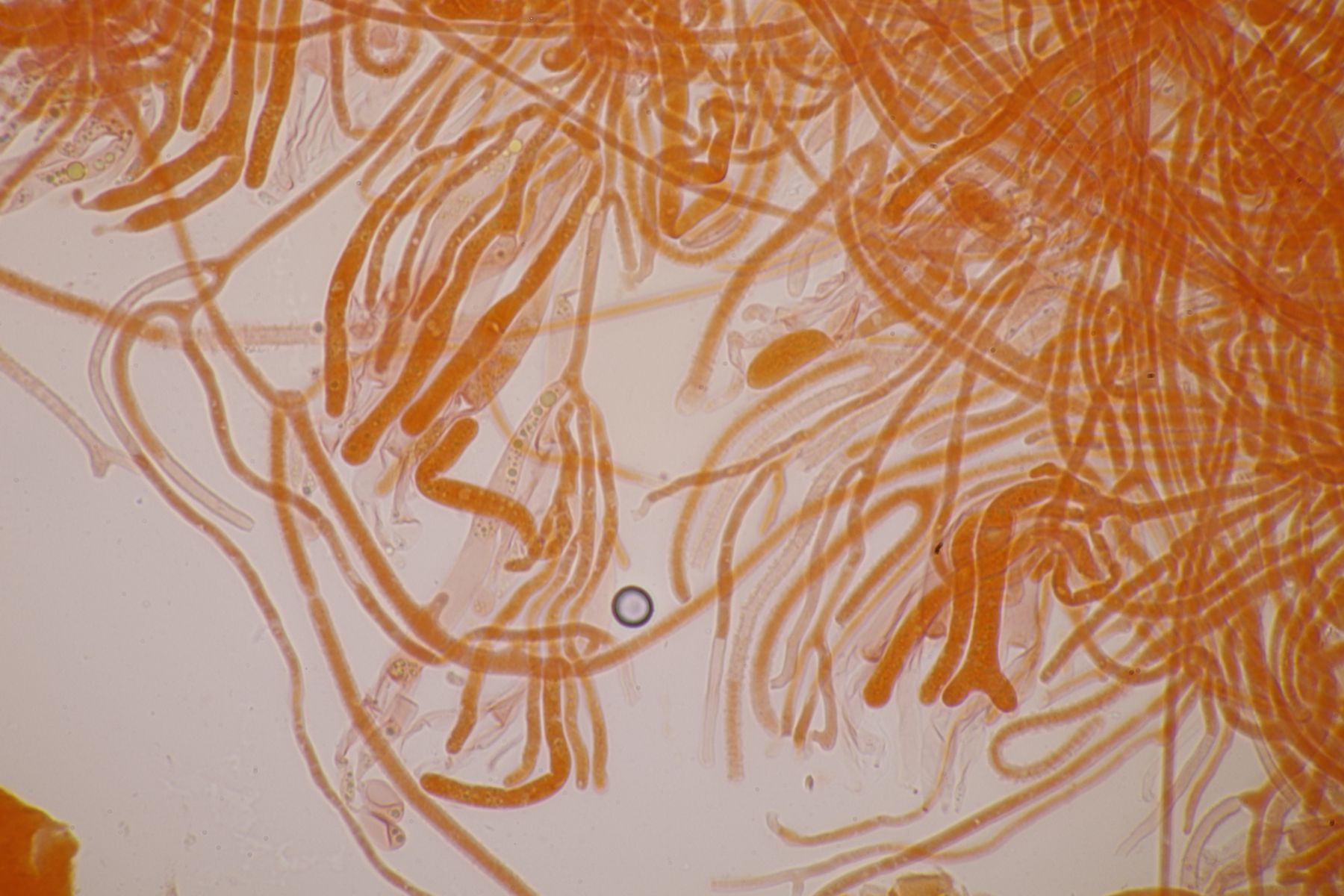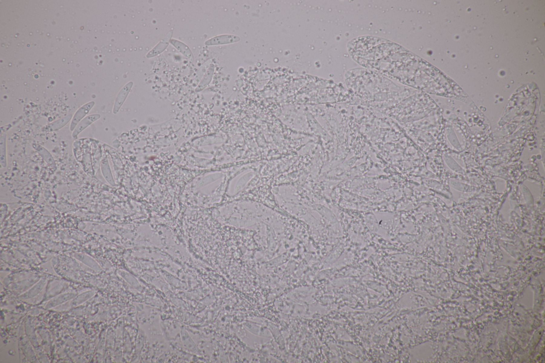die Sporen habe ich in KOH mikroskopiert, das Hymenium mit KOH/NH3 gefärbt und danach in KOH mikroskopiert.