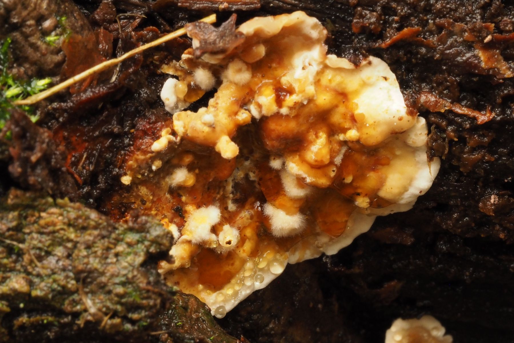 Ja, Badhamia utricularis hat Porlinge zum Fressen gern. Das ist eigentlich nicht so typisch für Schleimpilze, dass sie ein besonderes Substrat bevorzugen, da die meisten Schleimpilze auf dem Substrat zwar sitzen aber es nicht "fressen". Badhamia ist da fast eine Ausnahme.