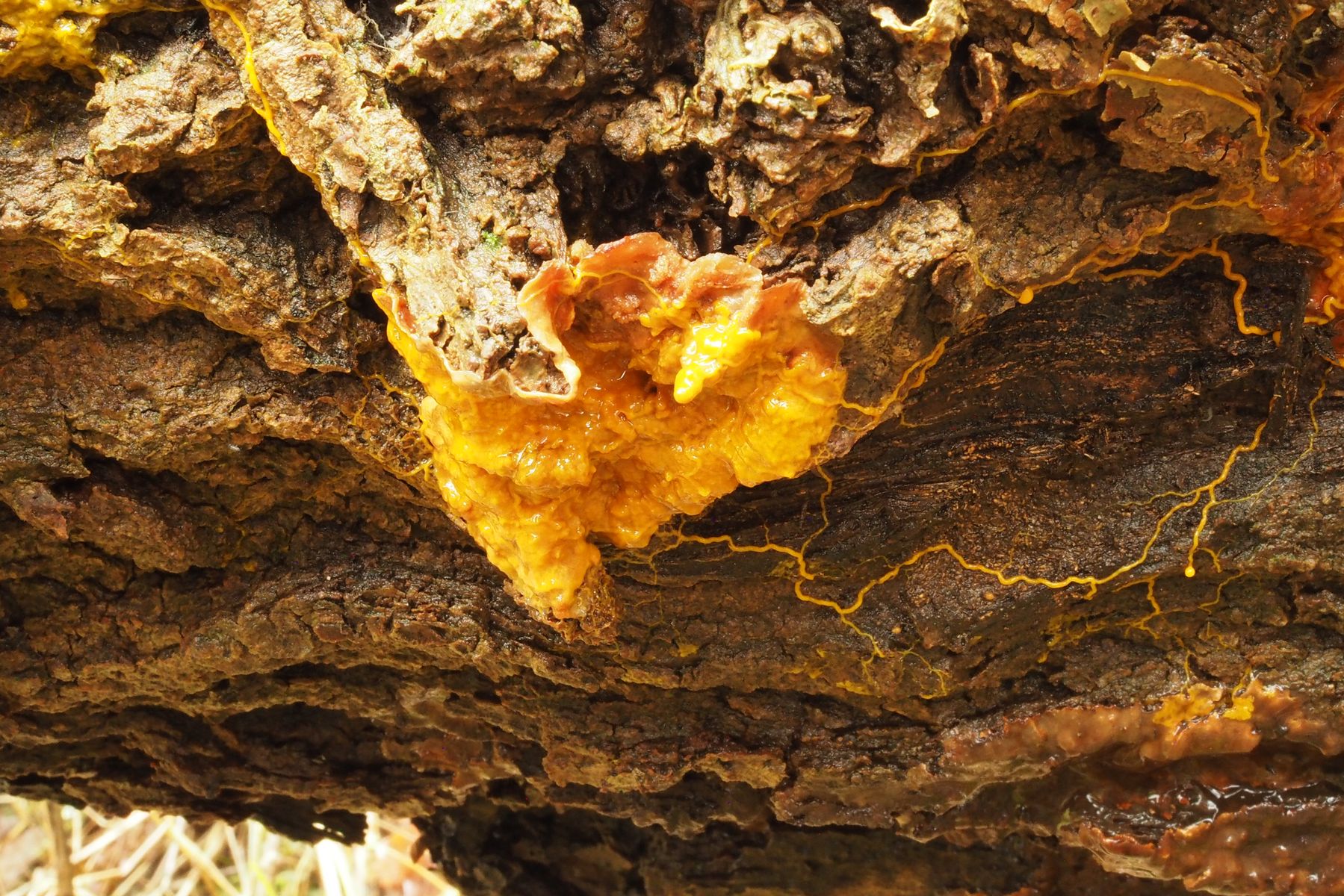 Bild 4 A: Plasmodium des Fadenfrucht-Schleimpilzes an Eiche