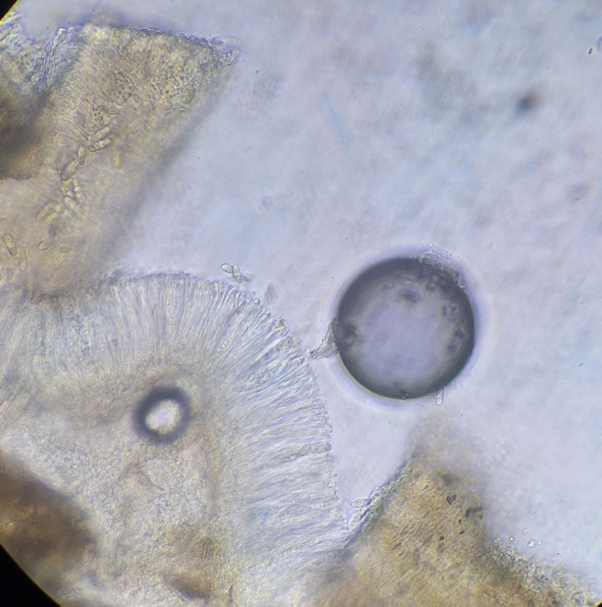 schöner Fund, das ist Cryptodiscus pallidus. Deine Maße von 12 x 4 µm wären etwas klein, aber ich denk, da werden größere Sporen dabei sein.