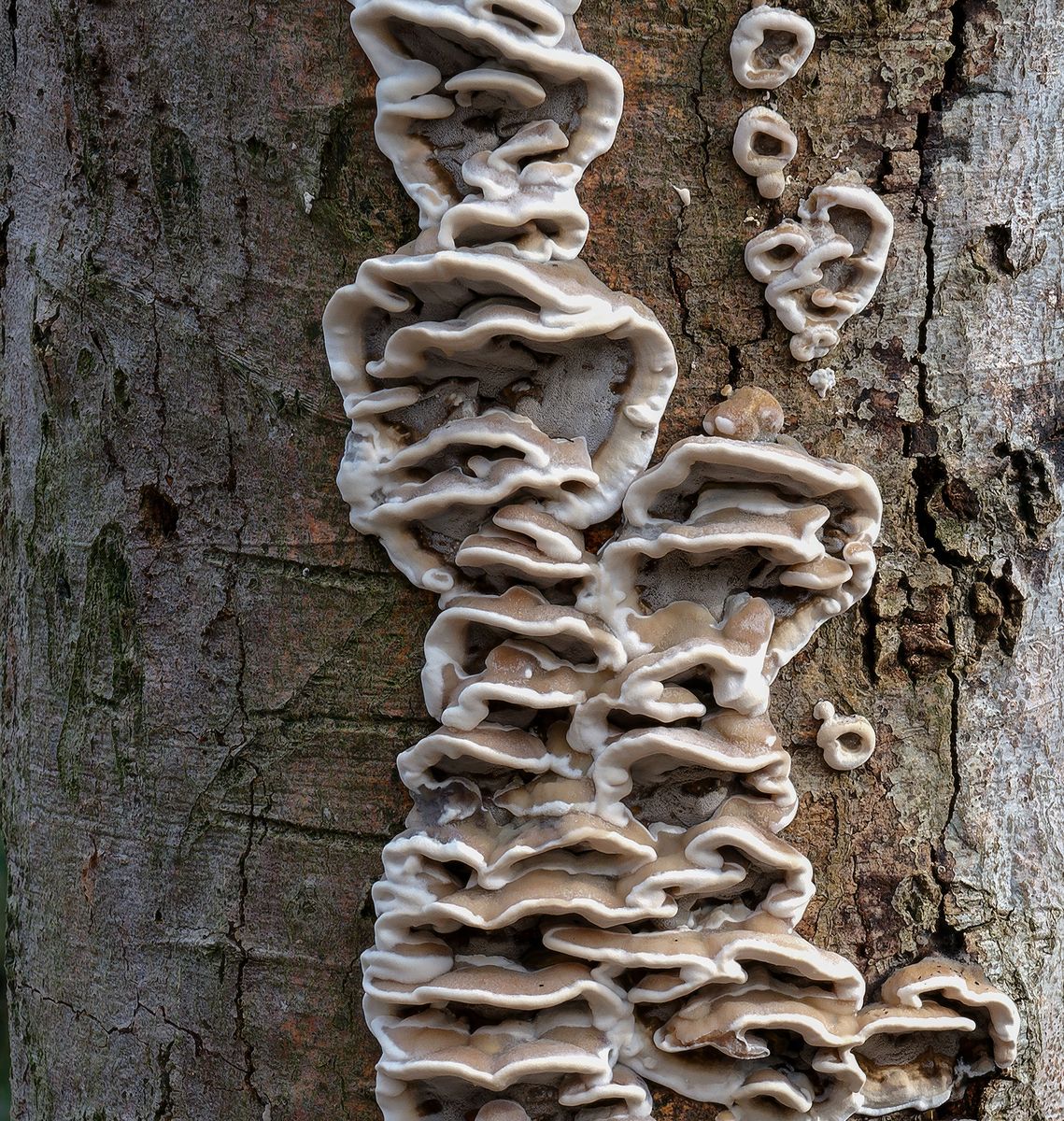 ich denke das ist der Angebrannte Rauchporling - Bjerkandera adusta. Aber warte lieber noch auf eine Bestätigung von den Profis.