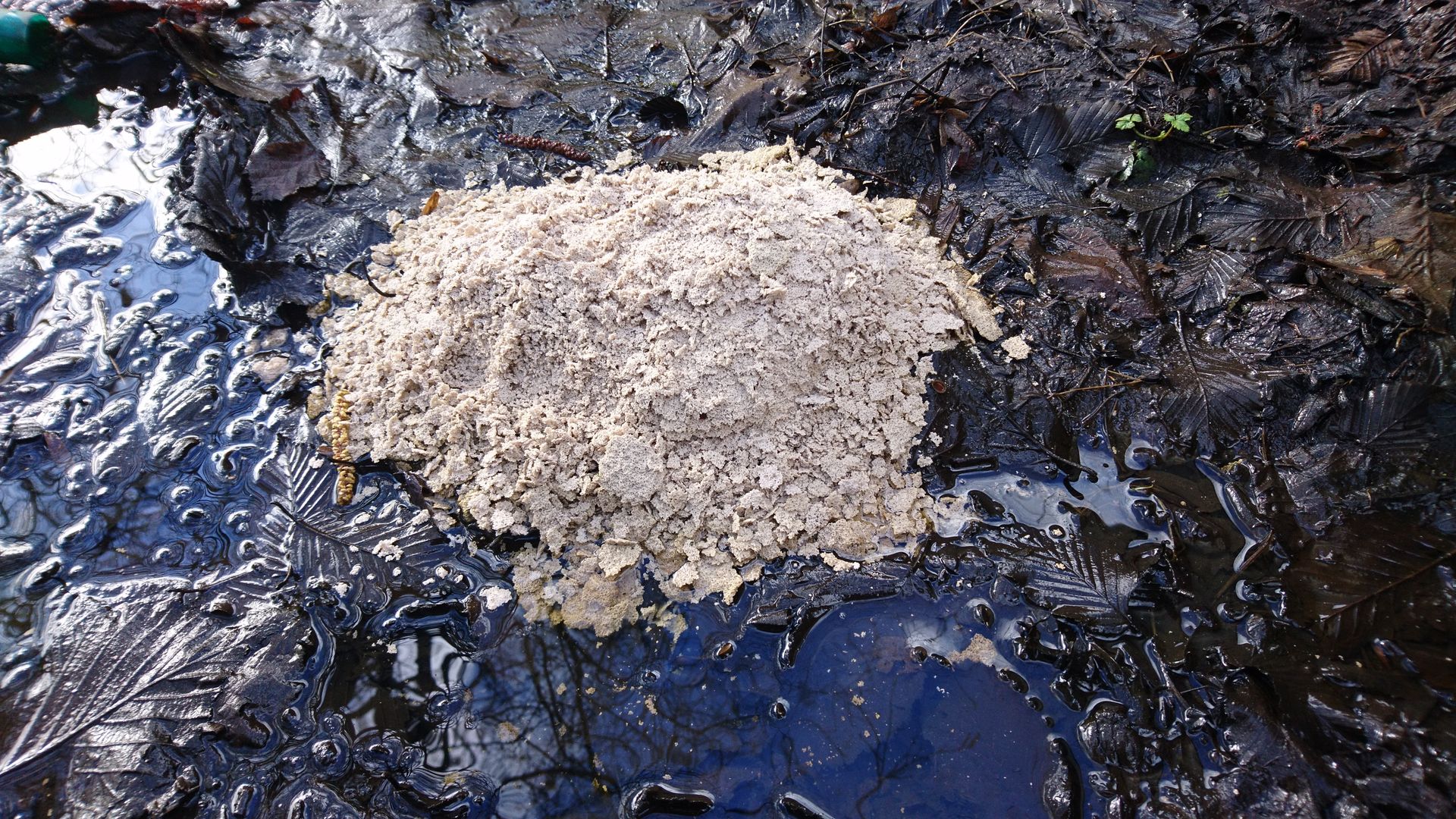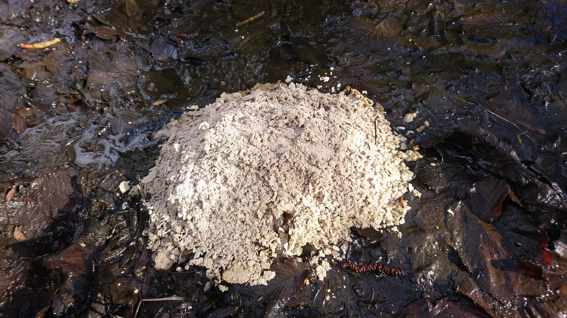 @Bernd:Mein erster Eindruck ist, da hat jemand einen Beutel abgekrazter Farbe/Putz ausgeschüttet. Oder Katzenklo. Ziervogelstreu ...