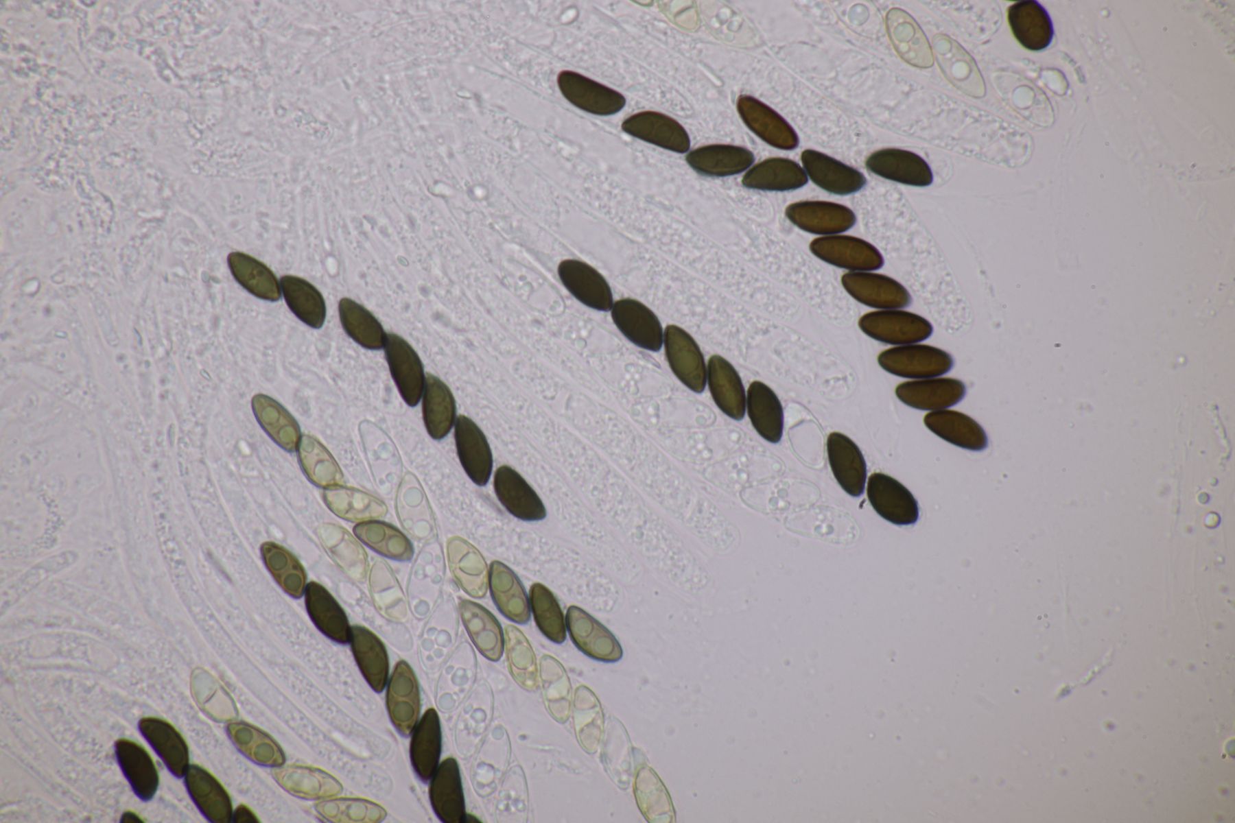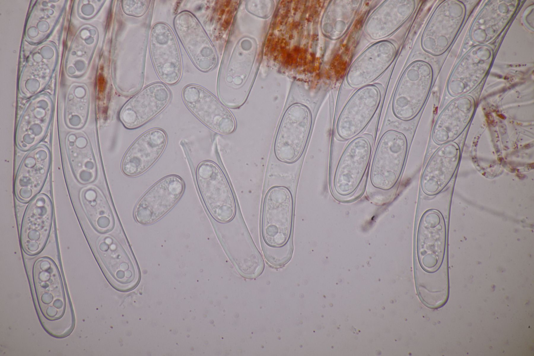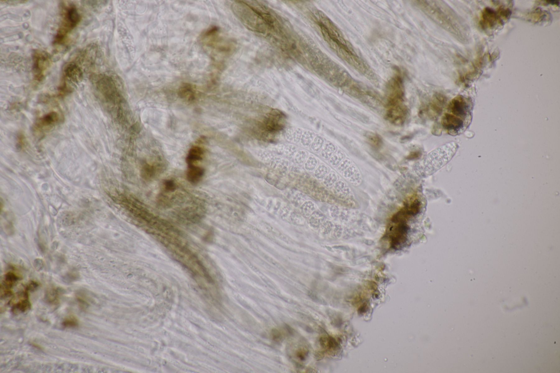 8. An einem Ast, den ich anfangs für Linde hielt, der sich dann aber bei genauerer Betrachtung als Ulme herausstellte: Eutypella dissepta. Ebenfalls an dem Ast war Orbilia comma, aber Orbilien schön zu mikroskopieren scheint ein Ding der Unmöglichkeit zu sein.