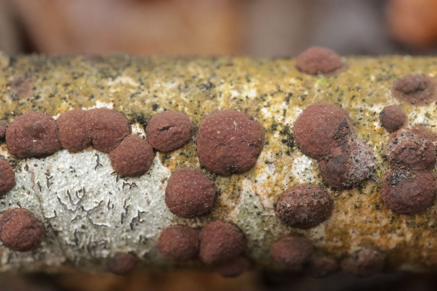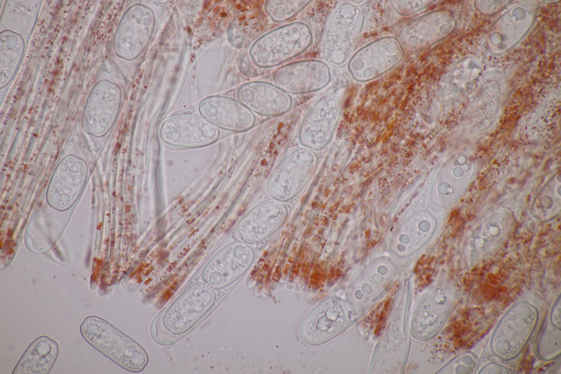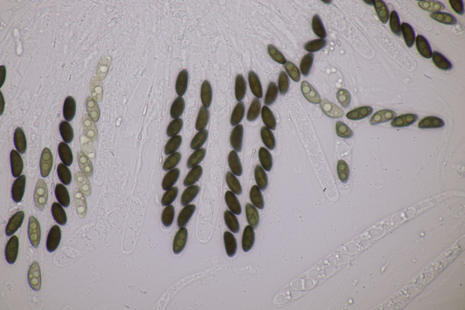 8. An einem Ast, den ich anfangs für Linde hielt, der sich dann aber bei genauerer Betrachtung als Ulme herausstellte: Eutypella dissepta. Ebenfalls an dem Ast war Orbilia comma, aber Orbilien schön zu mikroskopieren scheint ein Ding der Unmöglichkeit zu sein.
