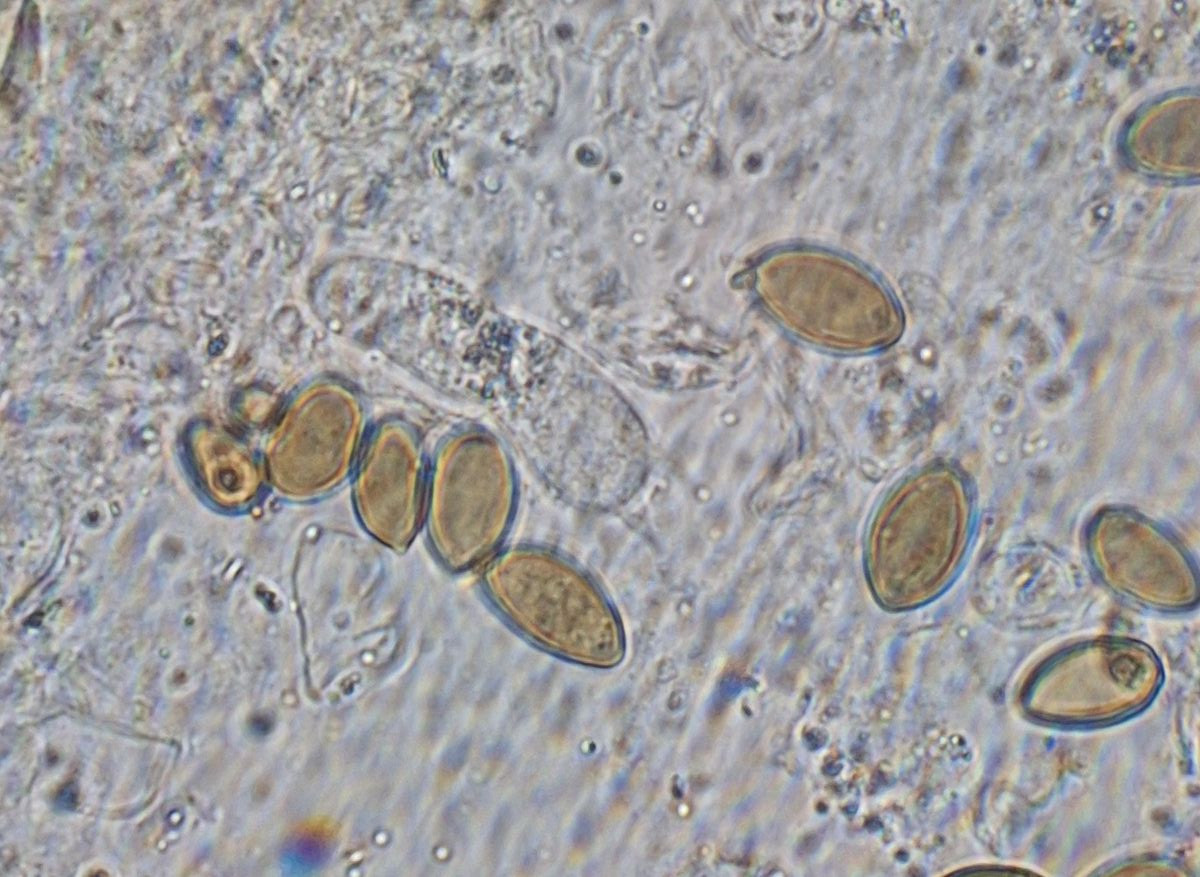 • Hallo Marco, danke für Deinen Hinweis. Ich hatte mir auch (u.a.) beim Hias (interhias.de) die Beschreibung und die Bilder angeguckt. Dessen Sporen sind farblich so wie meine (kann das an H2O vs. KOH liegen?), der Form nach aber dichter an den Deinigen https://www.interhias.de/schwa…/fotoseiten/foto-036.html