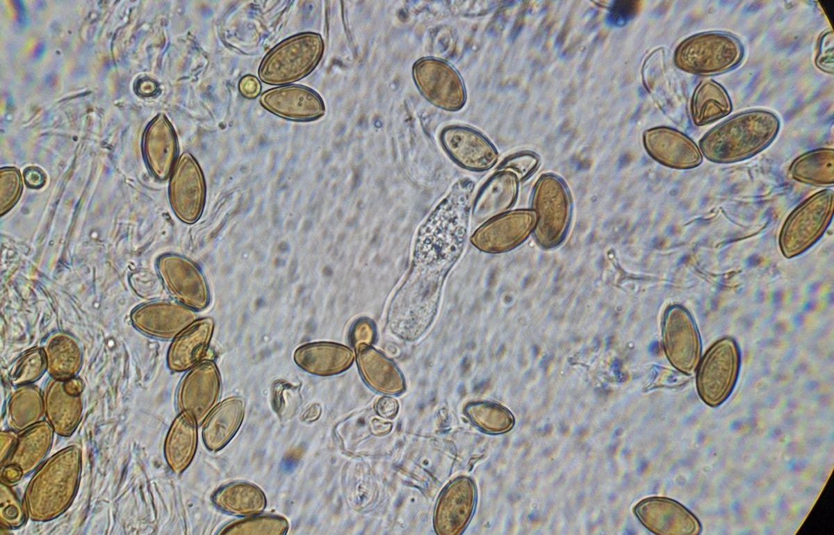 teilweise erkenne ich Basidien, die Sporen sind ziemlich variabel in der Größe 10-15 * 6-9 µm