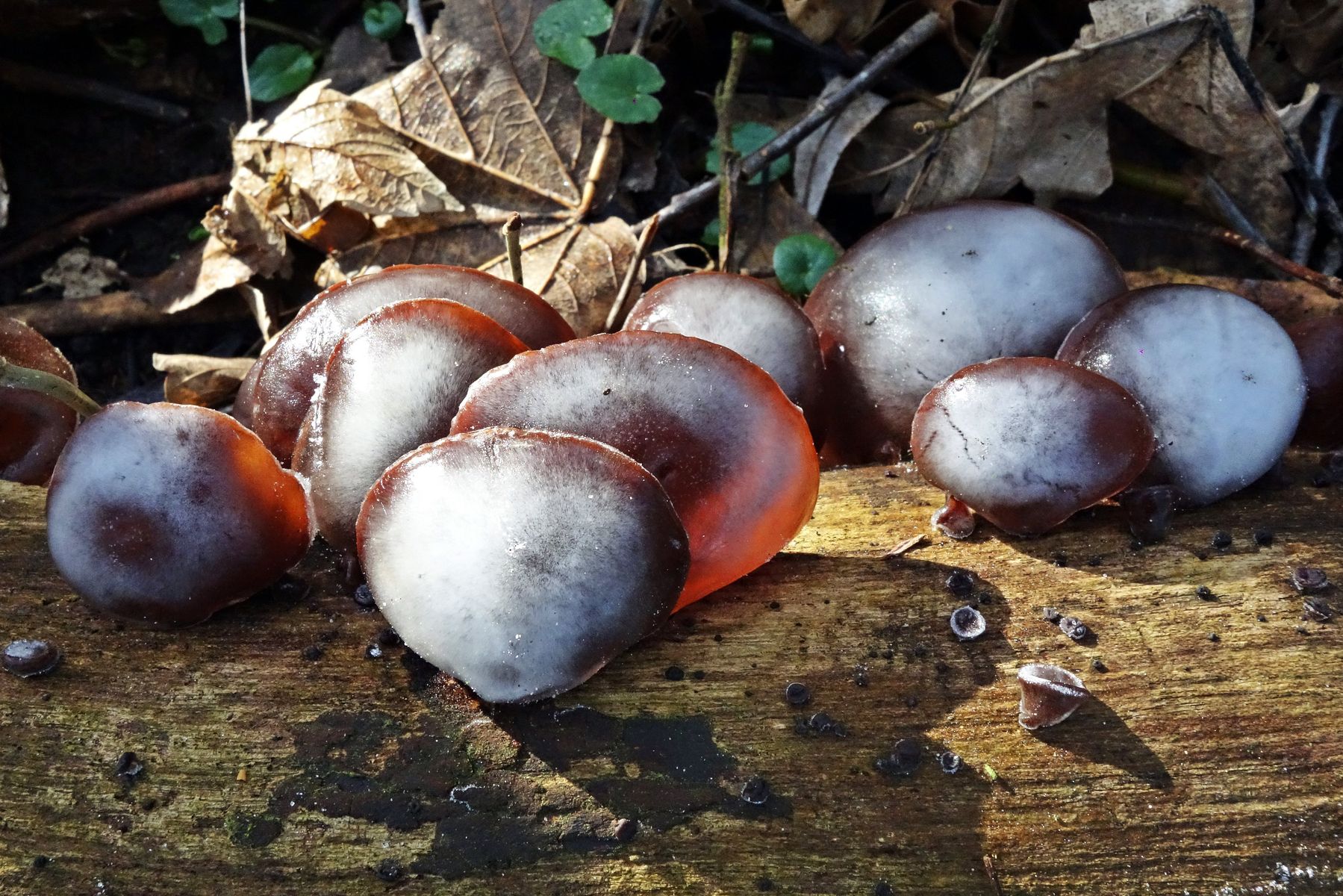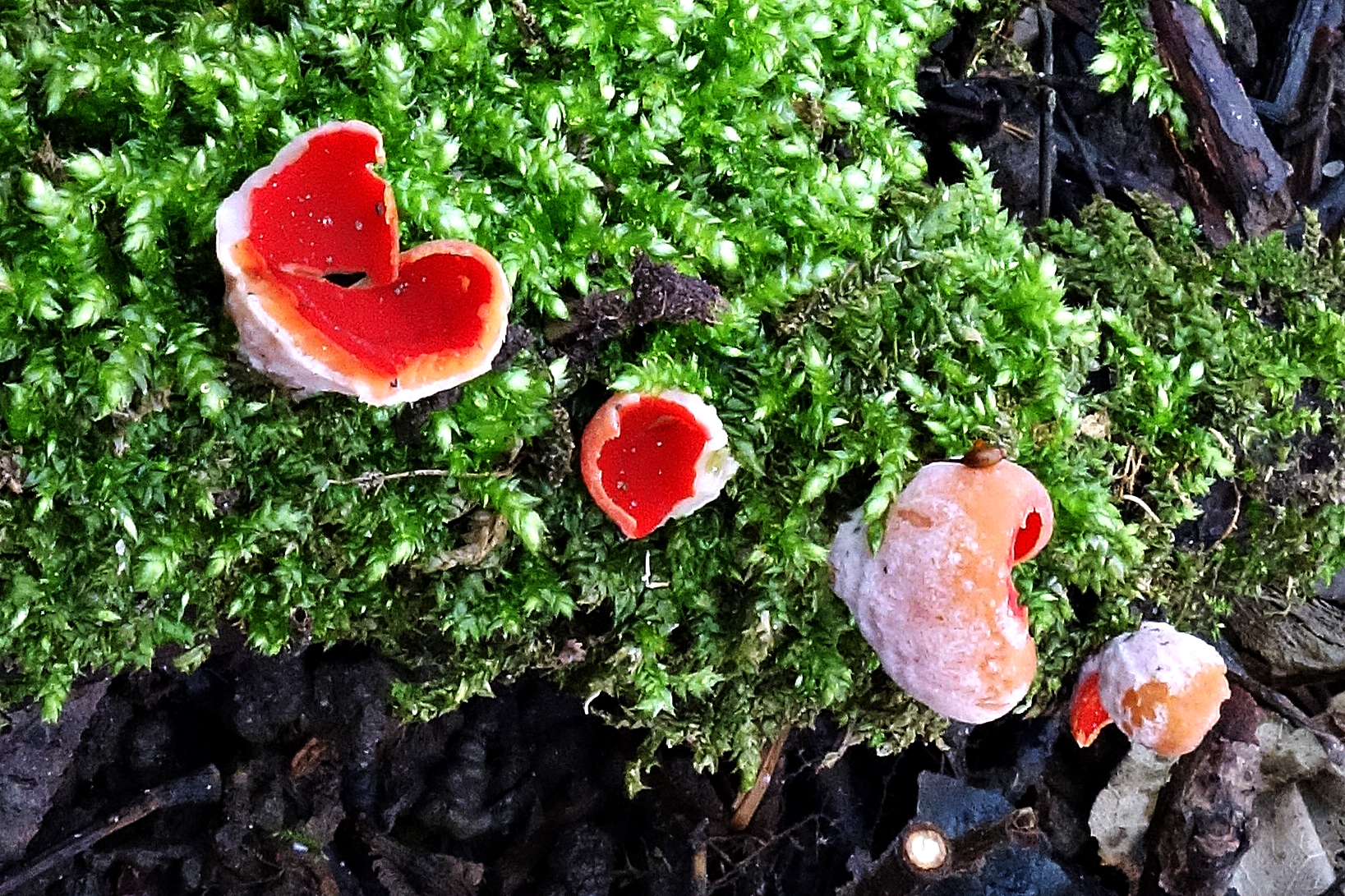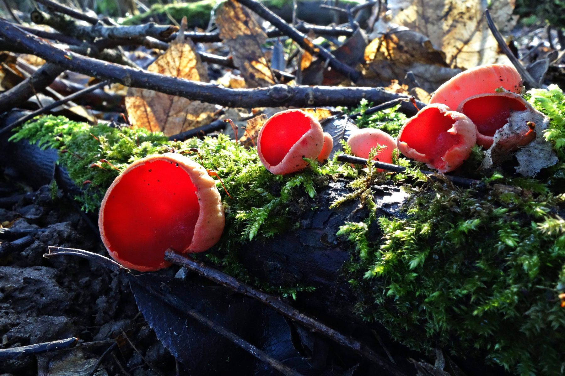 Die rote Sarcoscypha könnte man schon anhand des Substrates näher eingrenzen.