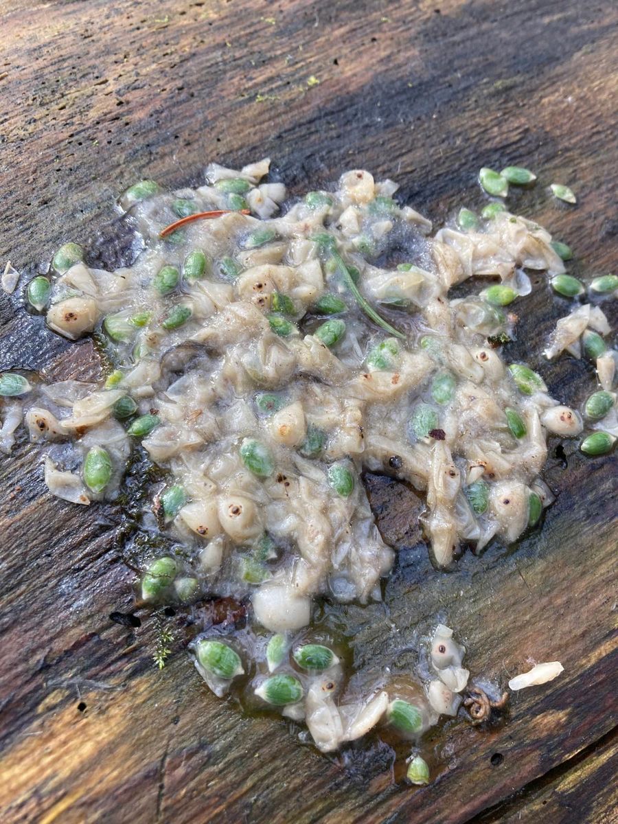 Ich denke da eher an Winterporling, Angebrannter Rauchporling und hier ist ein Erklärungsansatz für die Mistel-Überreste ("Alienkotze"): https://www.nhg-nuernberg.de/m…al&page=mistelfresser.php