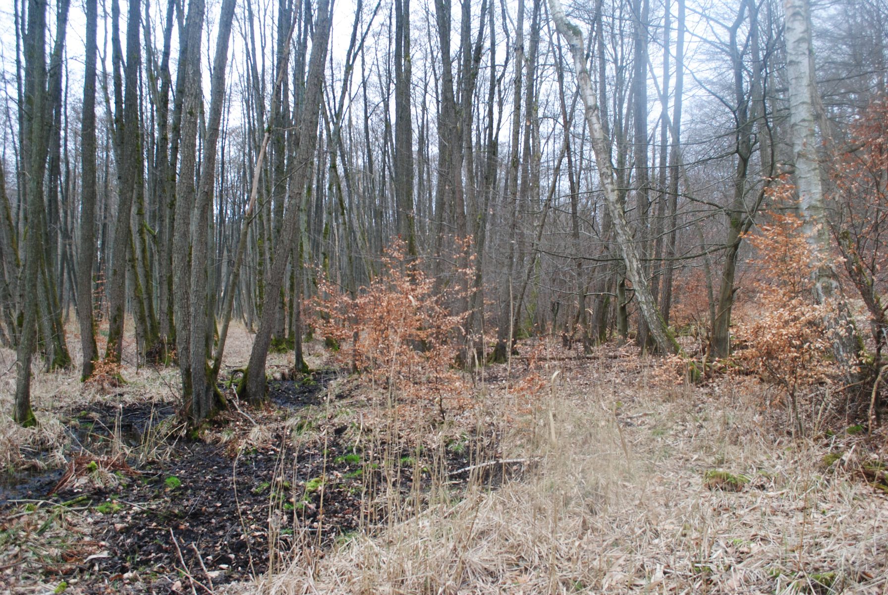 Hinter dem Weg folgt ein Mischwld aus Buchen und Kiefern, unterstezt mit Eichen.