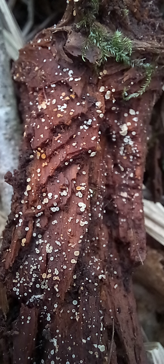 Das Substrat kann ich nicht genau bestimmen. Es könnte meines Erachtens nach, Erlenholz sein. Die Zersetzung des Holzes ist fortgeschritten und von der Verfärbung rötlich-dunkelbraun. Was aber auch Moderfäule sein kann, da das Holz teils vergraben war. Der Kern des Holzes ist, gelblich bis rötlich. Und hier hört es auch bei mir bereits auf.