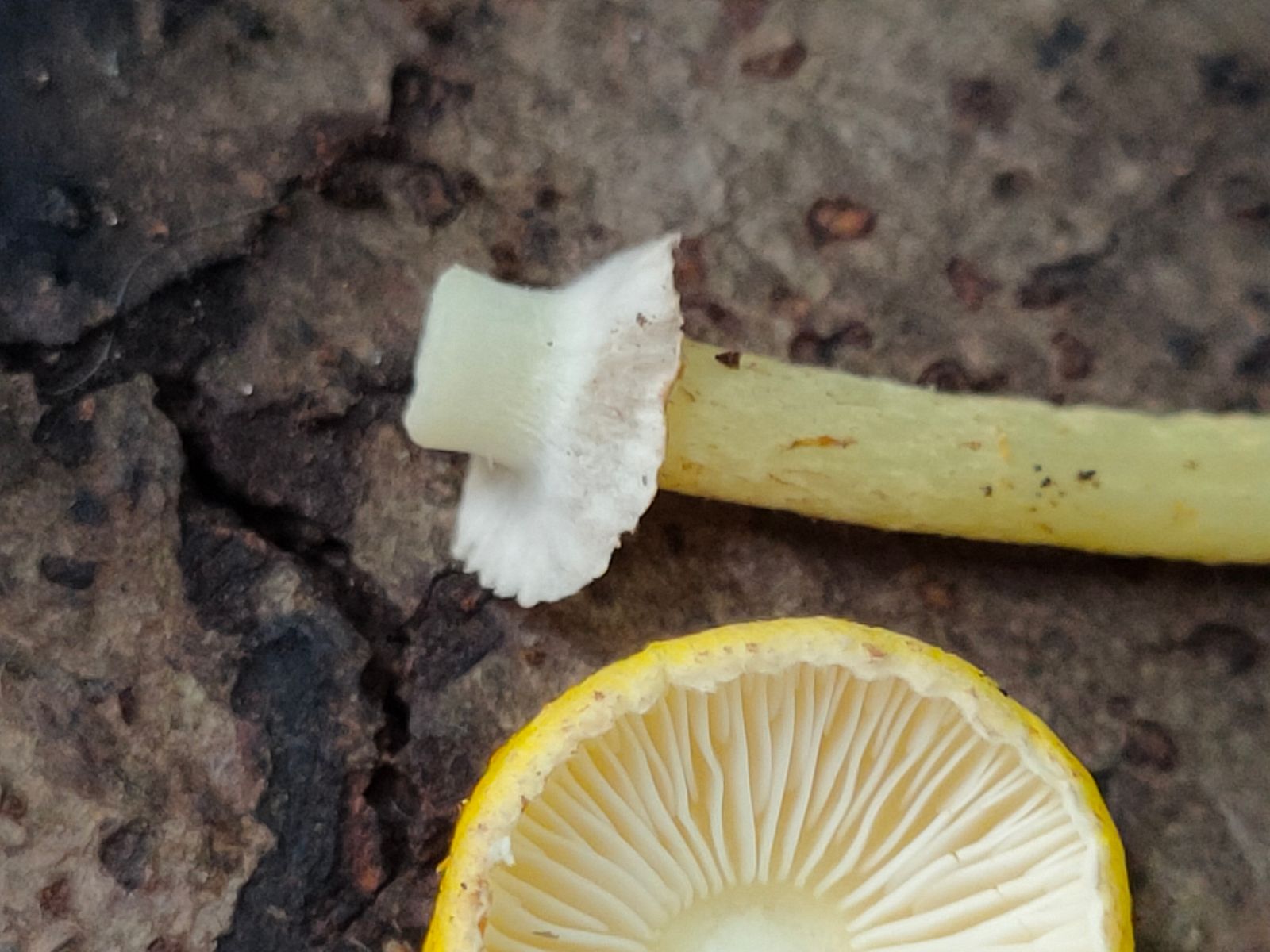 Ein paar dinge stören mich. L. birnbaumii hat eine ausgeprägte Hutschuppung und der Rand ist deutlich gerieft. Diese Merkmale kann ich bei meinem Fund nicht erkennen. Im ganzen sieht L. birnbaumii eher wie eine gelber Tintling aus. Mein Fund eher nicht. Der Ring ist doch recht ausgeprägt.
