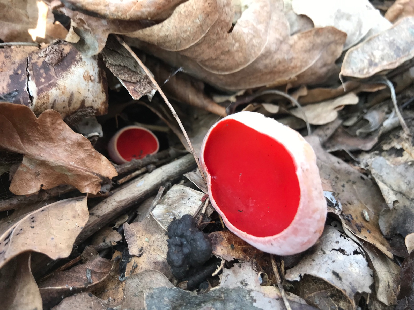 Ich bin dann nochmal einen kleinen Umweg nach Hause gefahren, um eventuelle Kelchbecherlinge und vielleicht auch Tulpen zu finden. Aus letzteren wurde leider nix, dafür waren die Kelche in herrlicher Pracht da. Jetzt wollte ich die natürlich wieder bissl mit Laub abdecken, aber jedesmal, wenn ich ein Blatt anhob, kamen neue Kelche zum Vorschein :grolleyes: