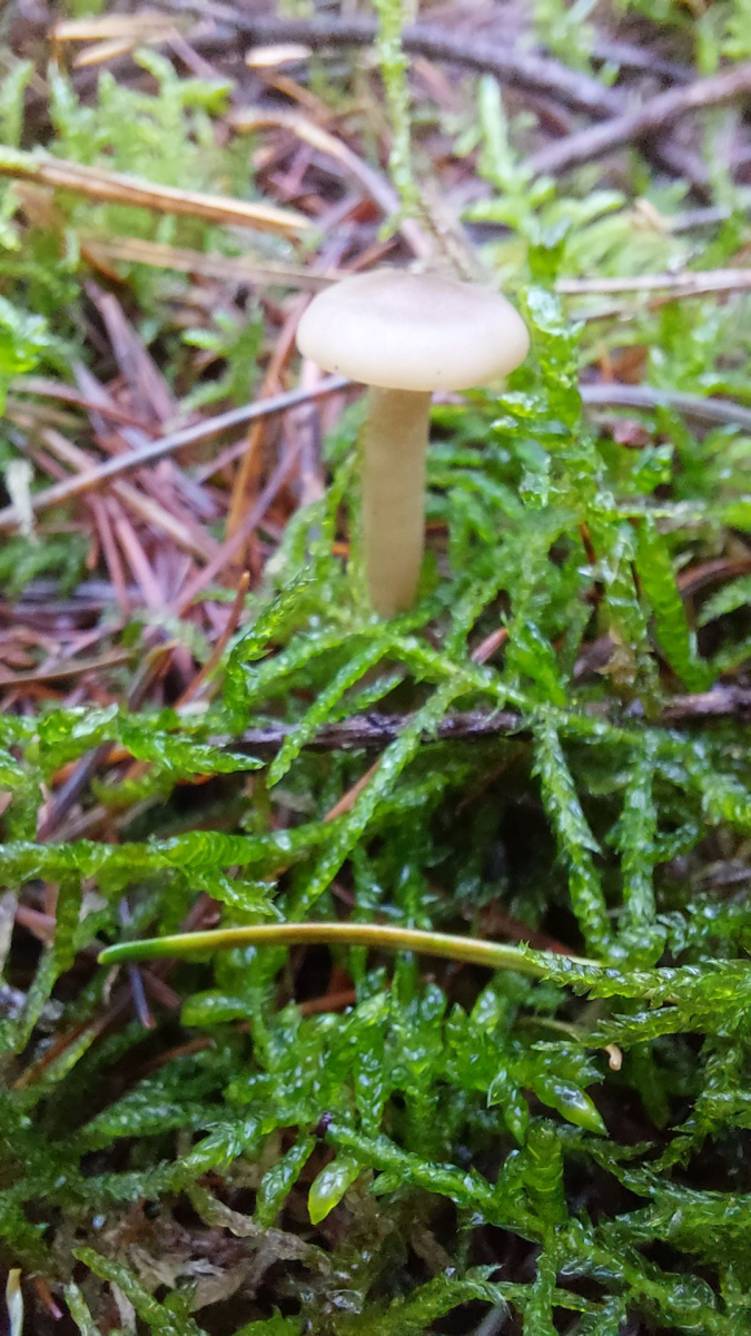 (8) Bei diesem Fund bin ich eigentlich beim Weißen Anistrichterling (Clitocybe fragrans) gelandet. Ein Anis- oder Fenchelgeruch war deutlich wahrnehmbar, der Wuchsort (im Moos in einem Laubwald) scheint auch zu passen. Zwei Dinge haben mich allerdings etwas verwirrt: erstens die Jahreszeit (Februar, nicht Herbst), und zweitens die Tatsache, dass der Fruchtkörper sehr stark asymmetrisch ist. Eher noch stärker, als man im Bild sehen kann, der Stiel setzt wirklich ziemlich weit entfernt vom Zentrum des Hutes an. Sprechen diese beiden Punkte eher für eine andere Art, oder passt C. fragrans trotzdem?