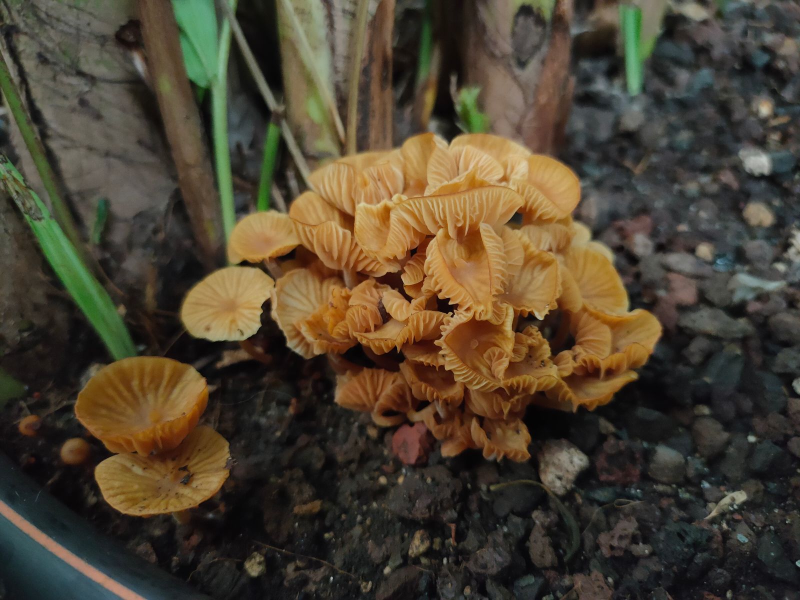 Edit: Der Habitus und die stark gegabelten Lamellen mit helleren Schneiden, der ausgesprochen buckelig gerifte Hut lassen mich an Gattung Arrhena / Adernmossling denken.