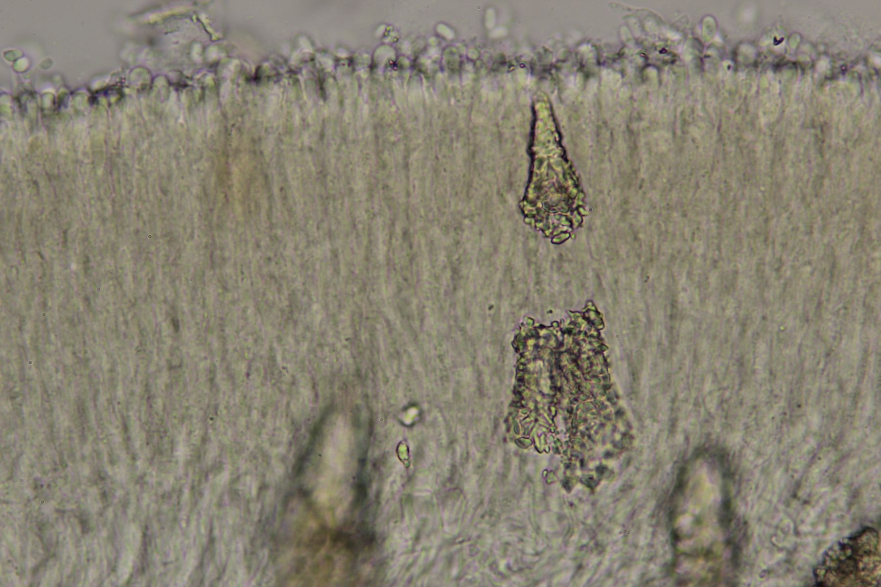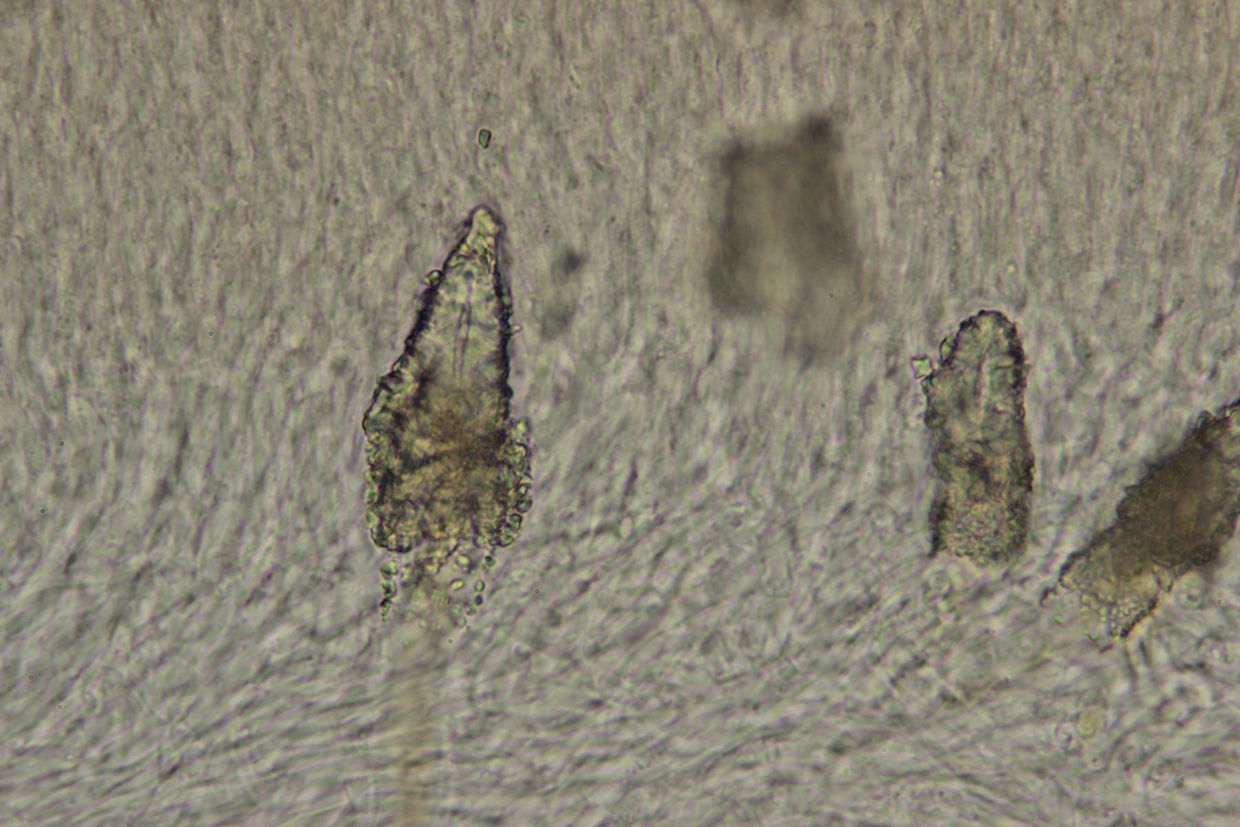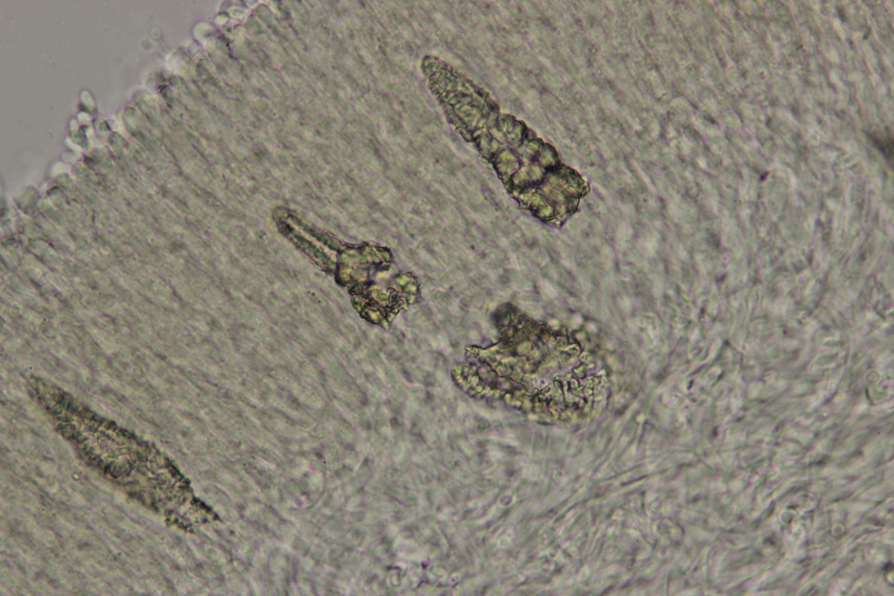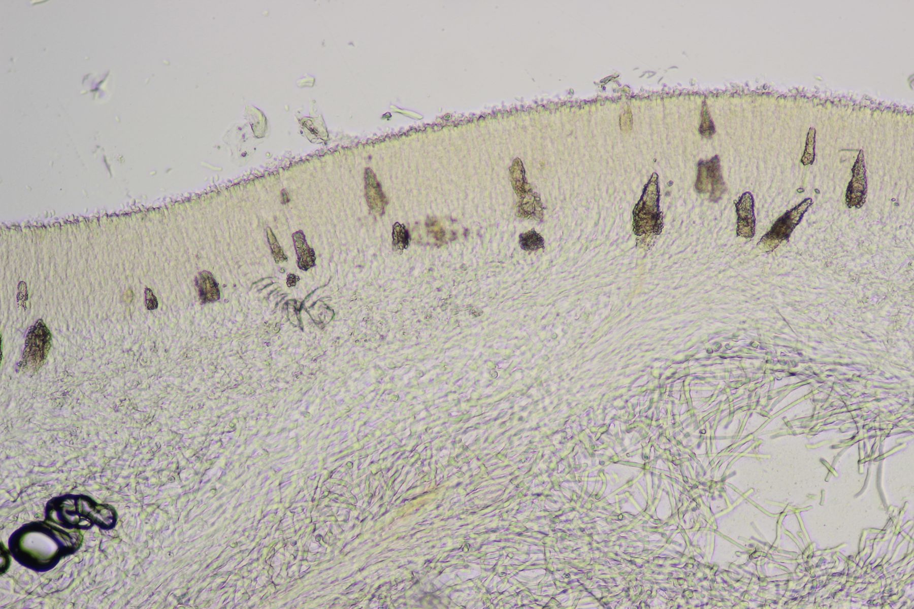 Lamprozystiden sind selten rausragend. Hier ein preparat der kaum gequetsch wurde.