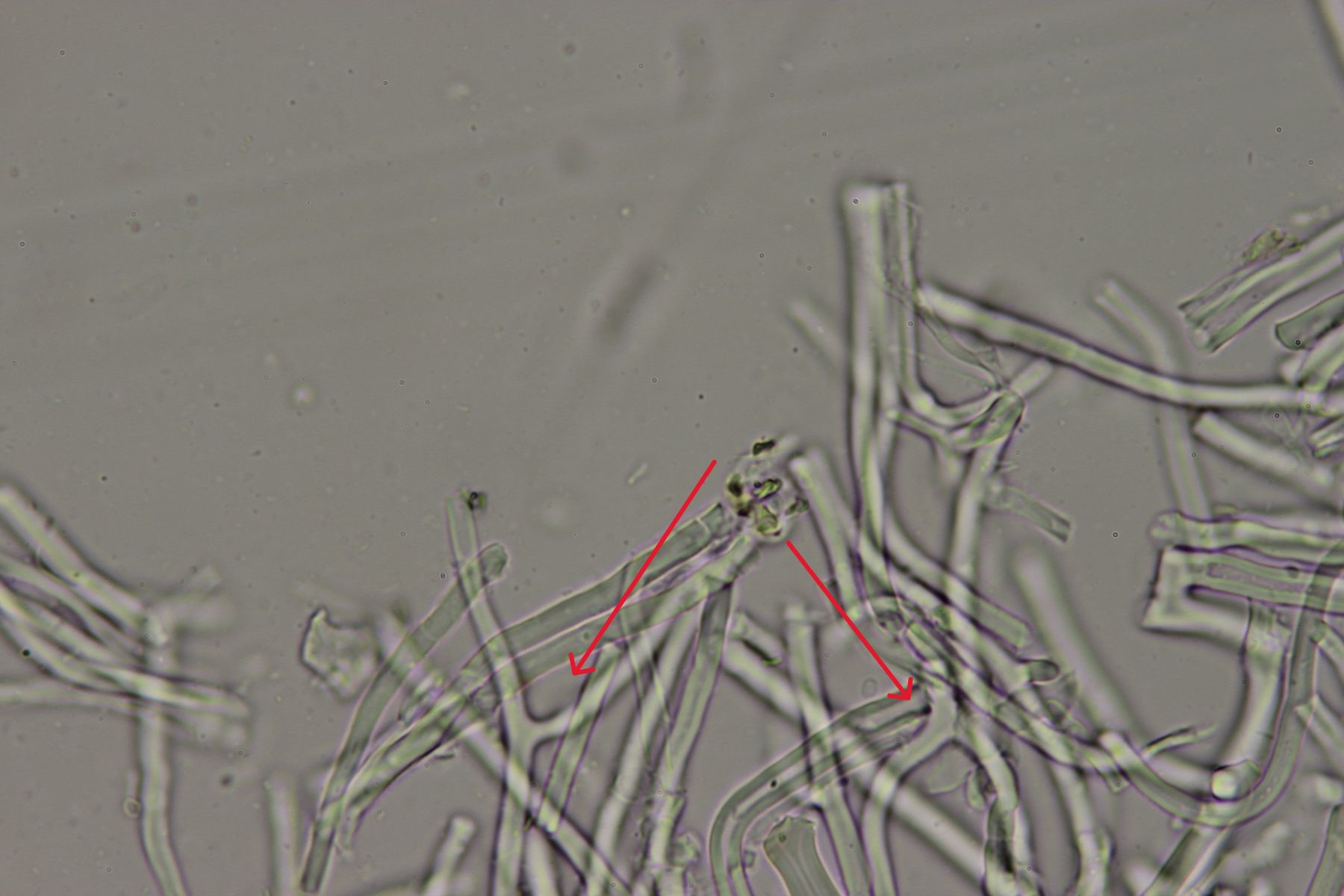 Subikular Hyphen dickwandig, Manchmal rechtwinklich verzeigt aber nicht sehr häufig.