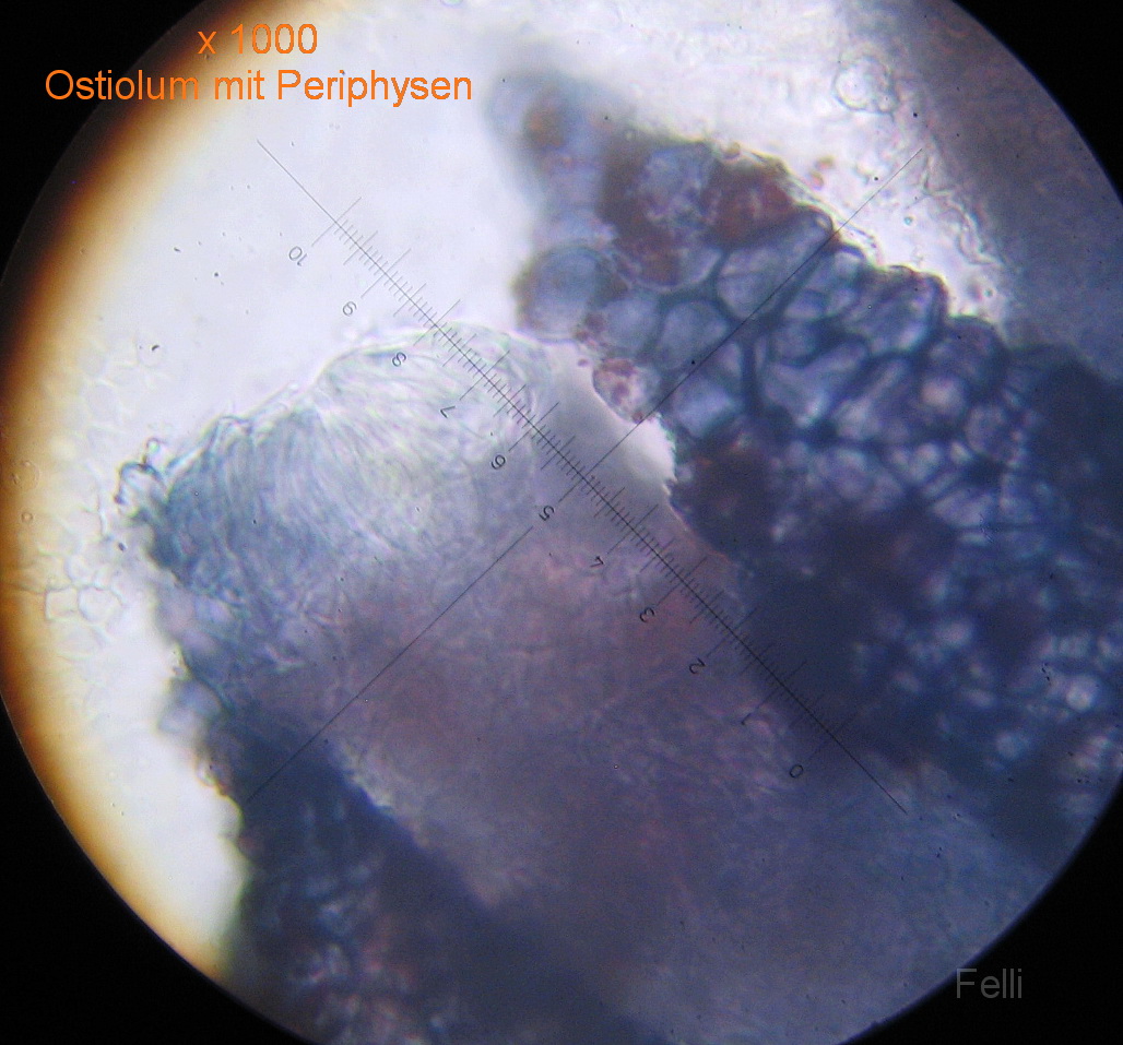Nun hab ich doch tatsächlich etwas reifere Perithecien entdeckt. Auf Grund der hyalinen,