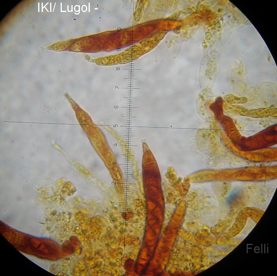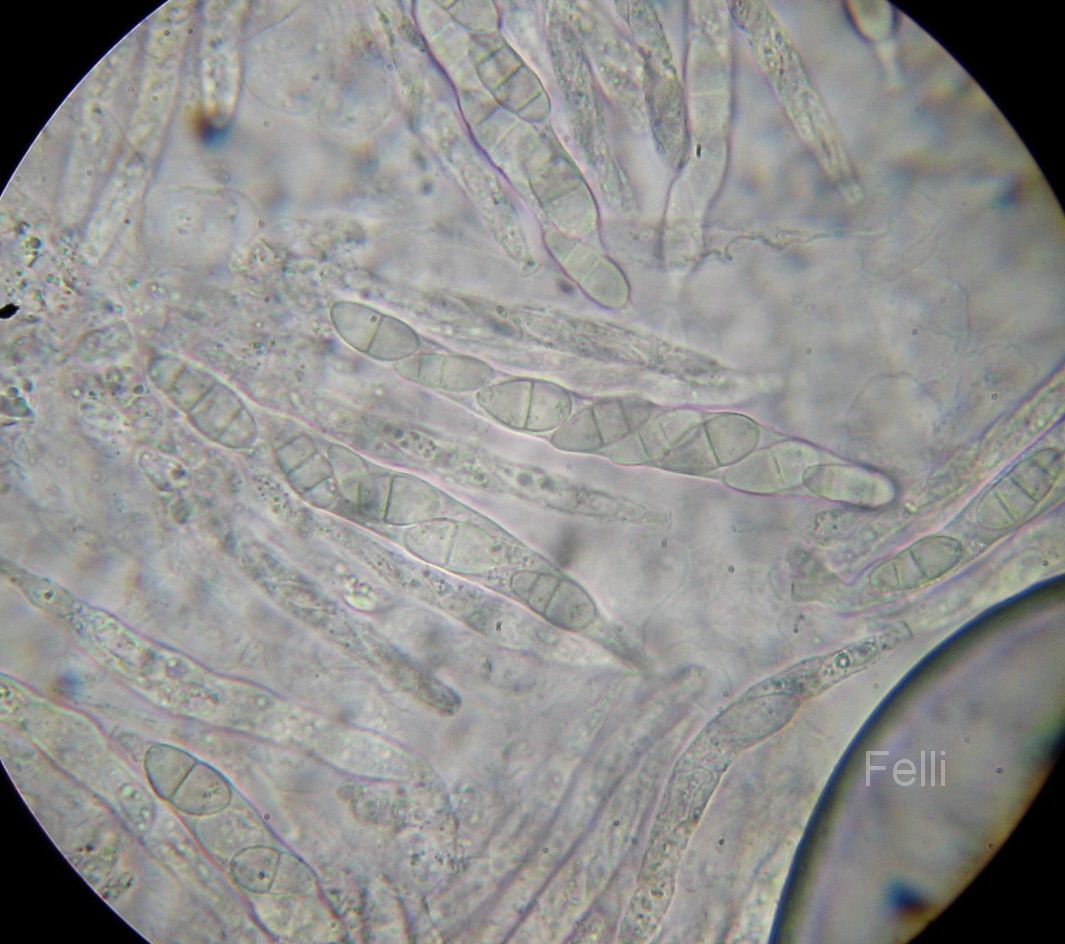 Sporen 15-18 x 6-8 leicht keulig bis zylindrisch-ellipsoid ( ein Ende leicht verjüngt bei unreifen Sporen)