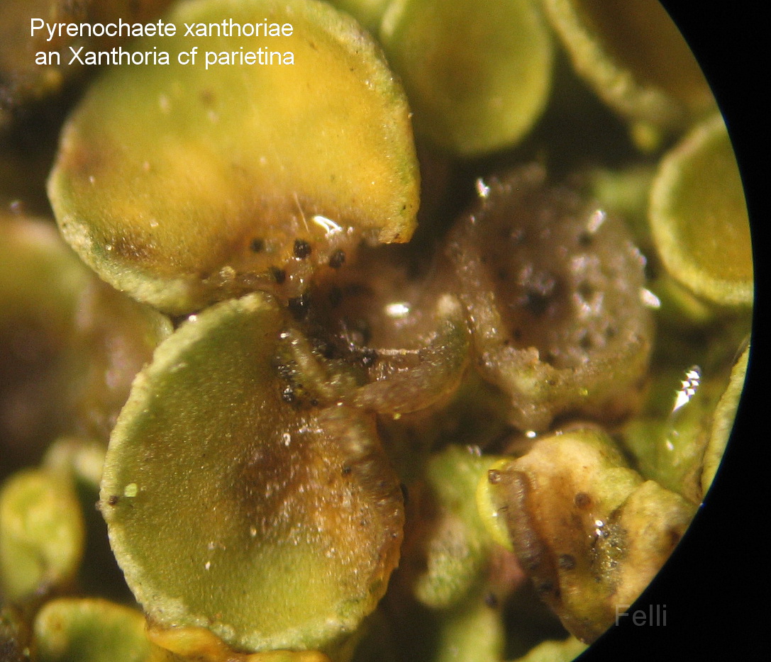 Zuerst schaute ich mir ein Ahornästchen an auf dem Xanthoria cf.parietina zu sehen war.